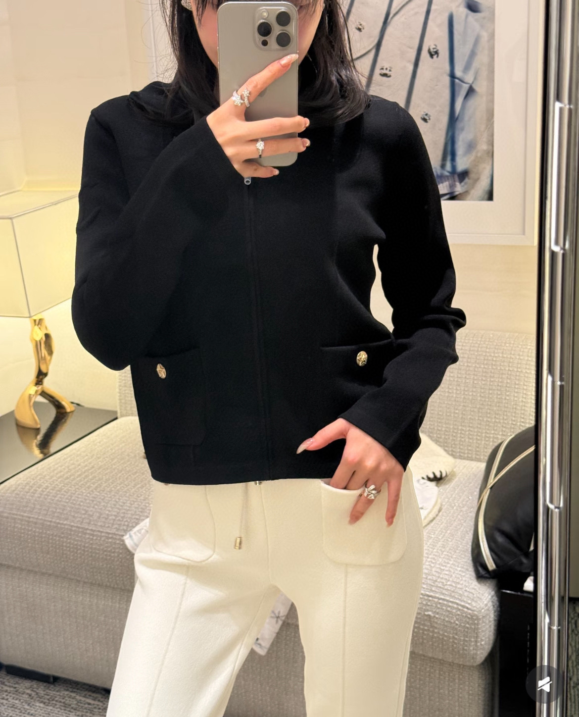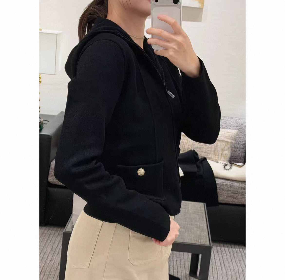 这款衣服是AAAAA 1:1 质量 (非常棒). 使用了和原版一模一样的材料. 商标部分也保持了和香奈儿/Chanel一样. 图片拍摄是实物衣服拍摄, 您所收到的实物保证和我们图片一模一样.