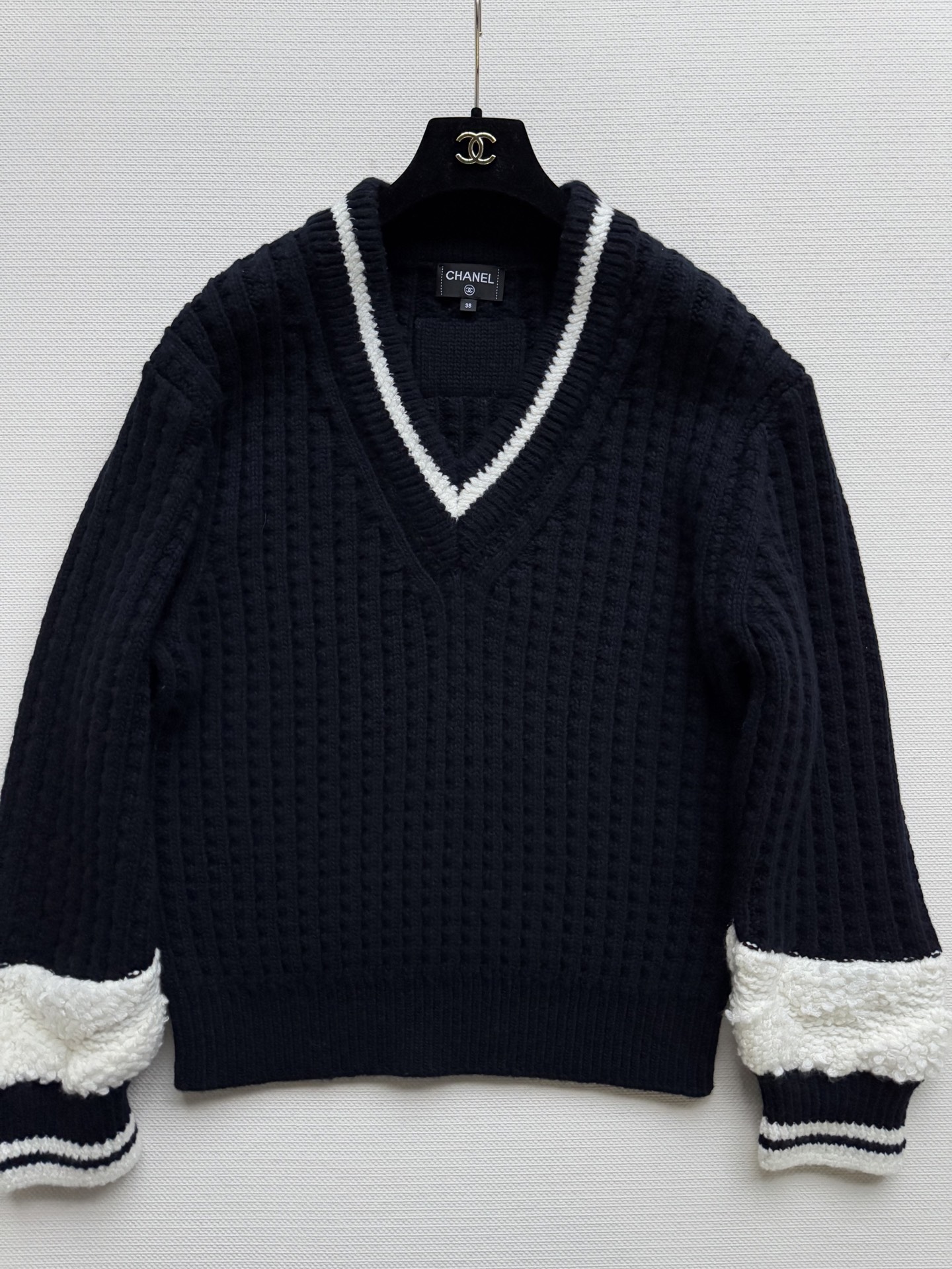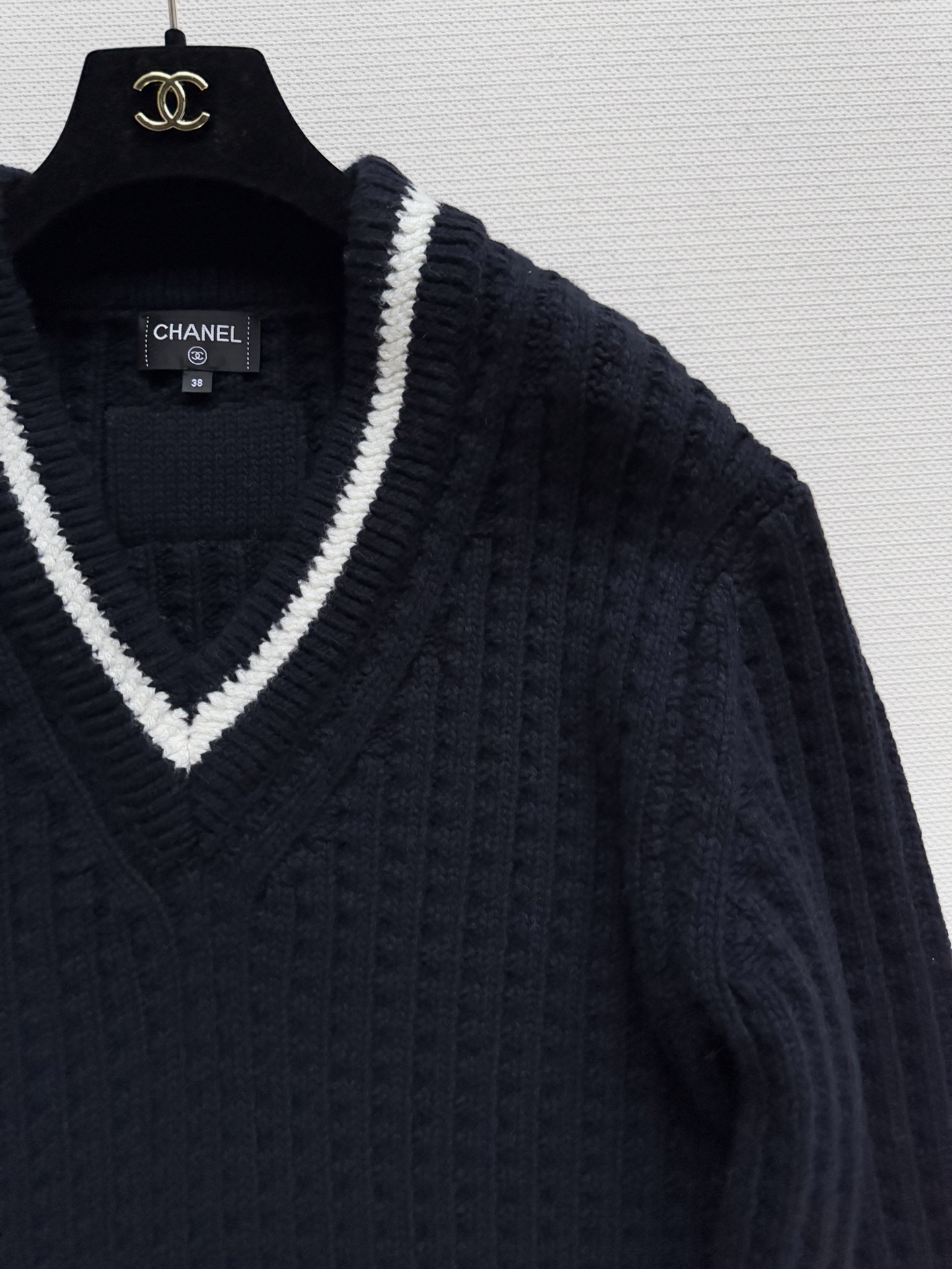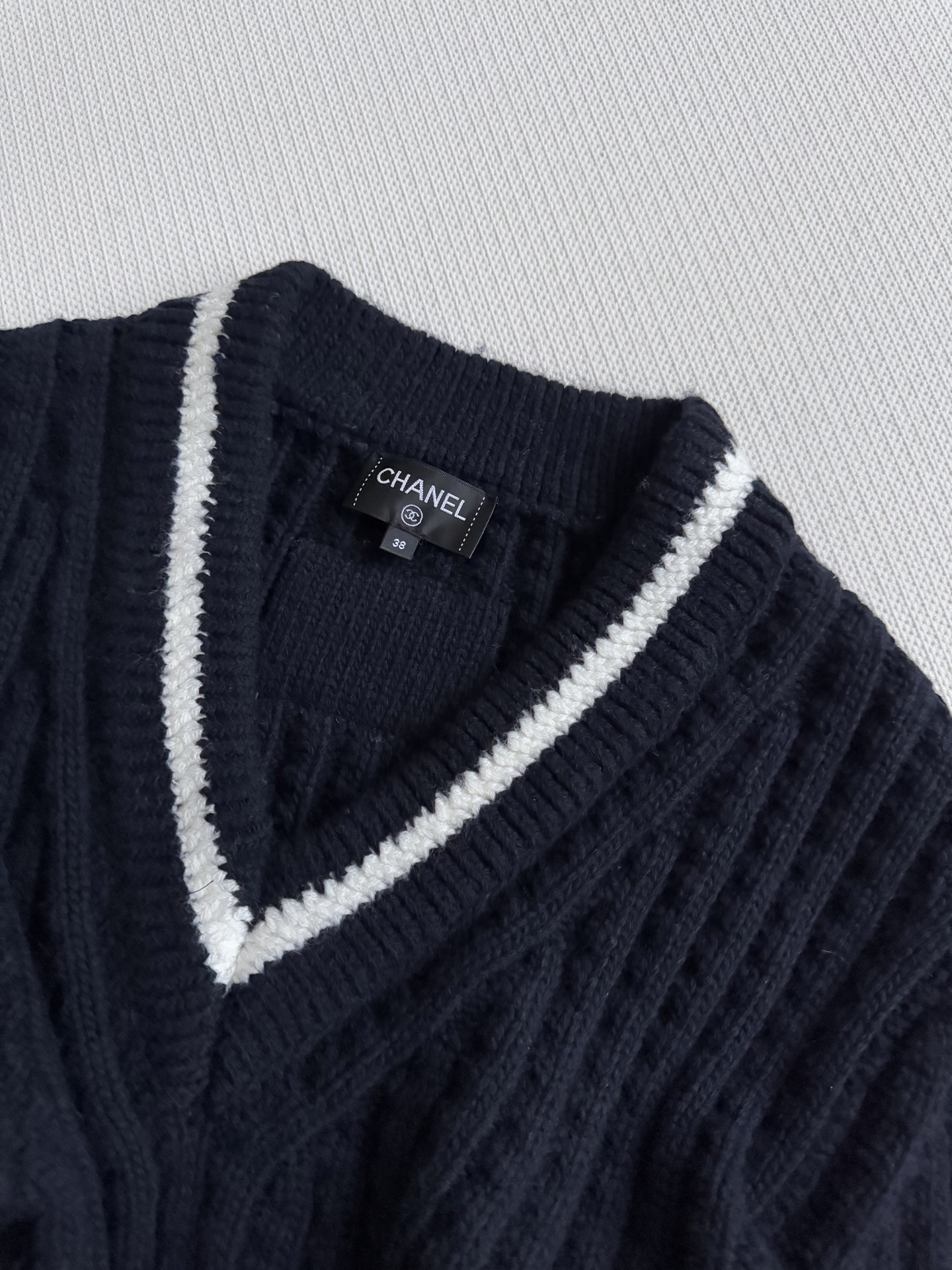 这款衣服是AAAAA 1:1 质量 (非常棒). 使用了和原版一模一样的材料. 商标部分也保持了和香奈儿/Chanel一样. 图片拍摄是实物衣服拍摄, 您所收到的实物保证和我们图片一模一样.