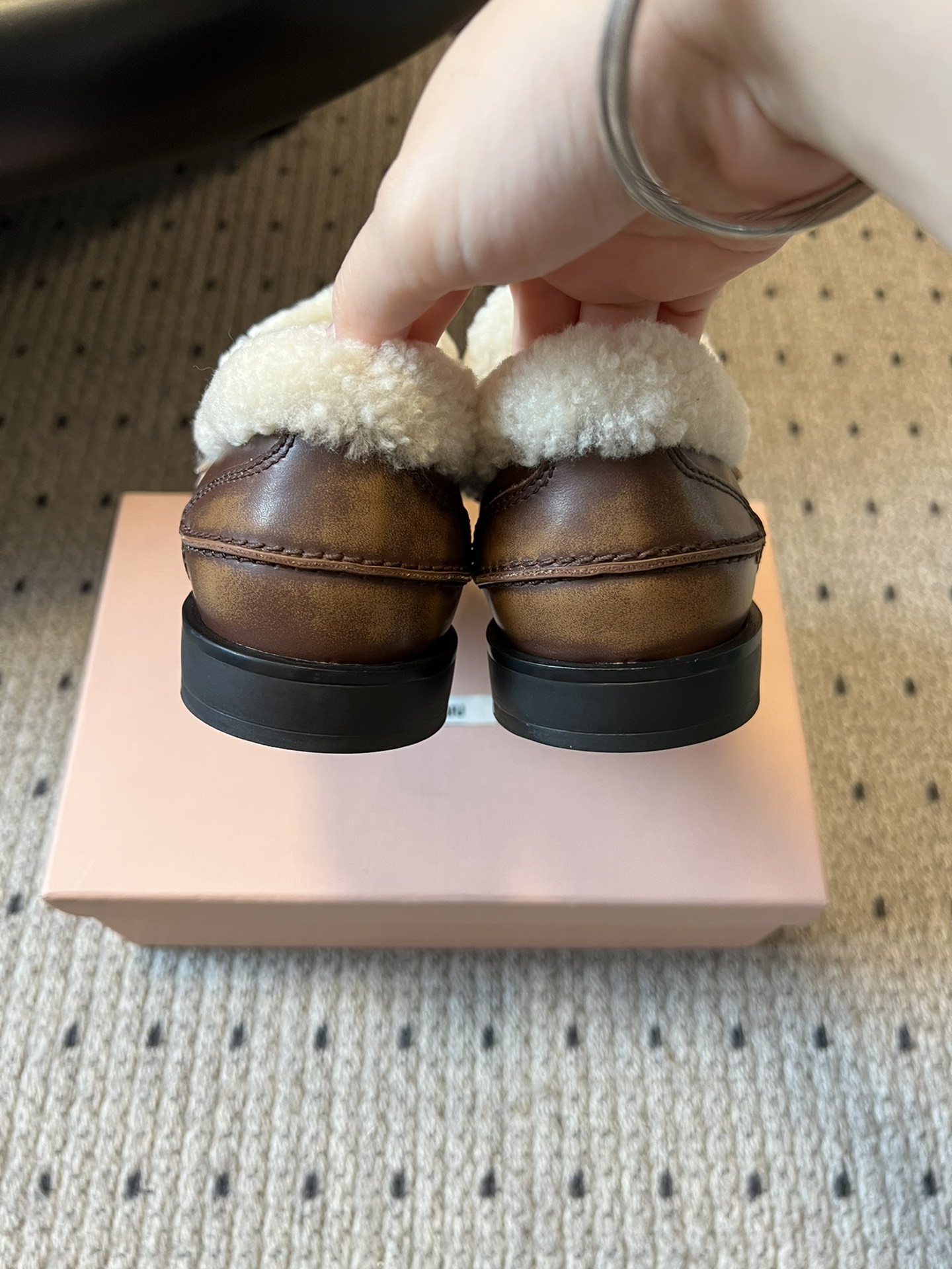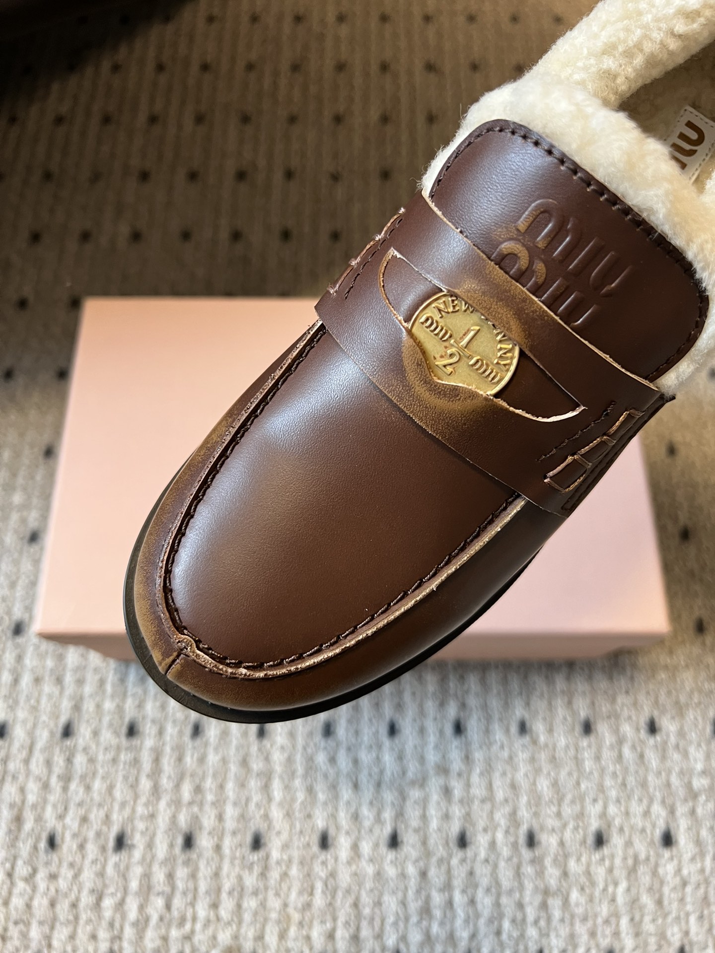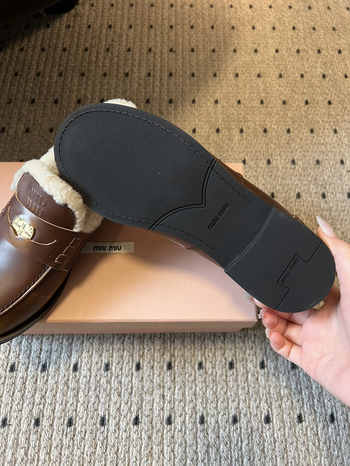 这款鞋子是AAAAA 1:1 质量 (非常棒). 使用了和原版一模一样的材料. 商标部分也保持了和缪缪/Miu Miu一样. 图片拍摄是实物鞋子拍摄, 您所收到的实物保证和我们图片一模一样.