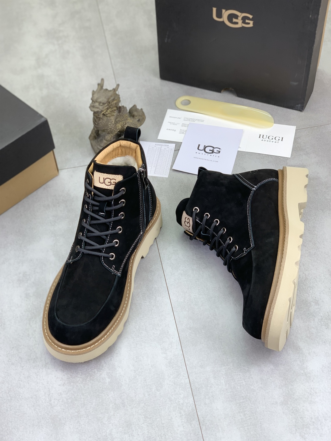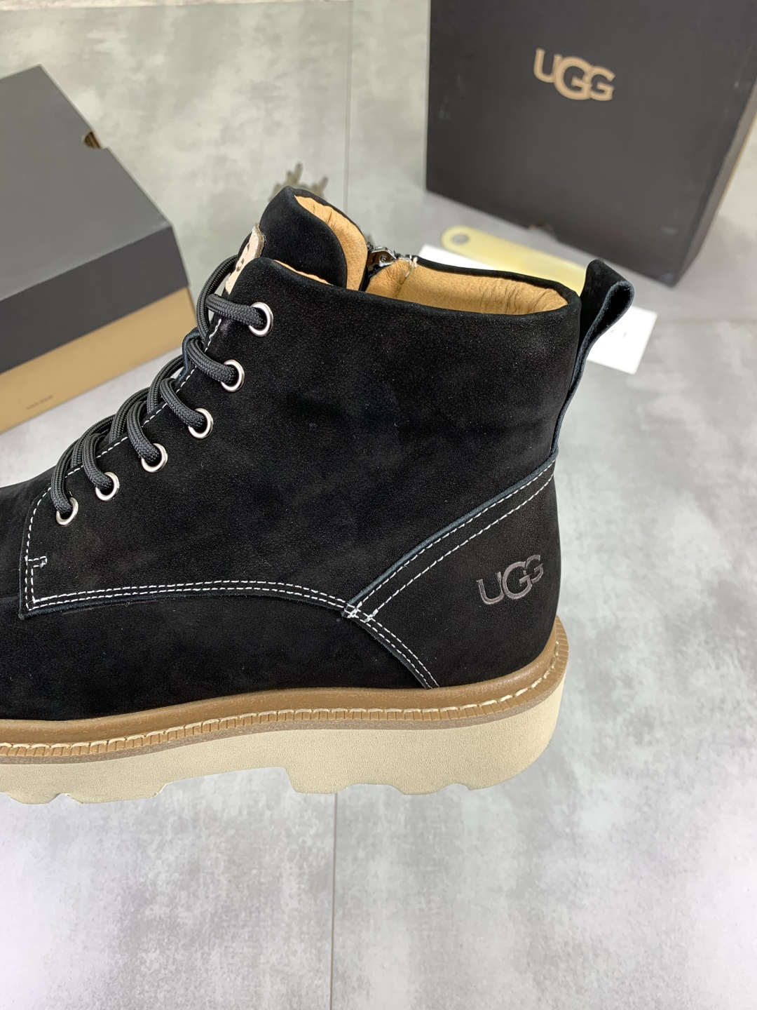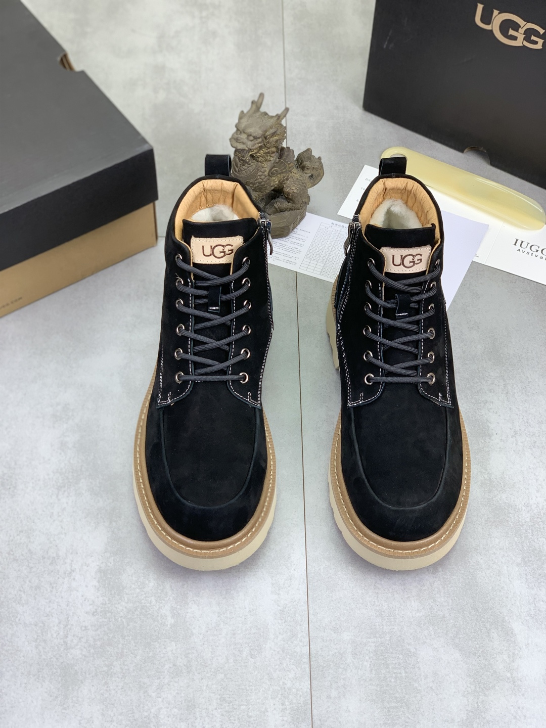 这款鞋子是AAAAA 1:1 质量 (非常棒). 使用了和原版一模一样的材料. 商标部分也保持了和UGG雪地靴一样. 图片拍摄是实物鞋子拍摄, 您所收到的实物保证和我们图片一模一样.