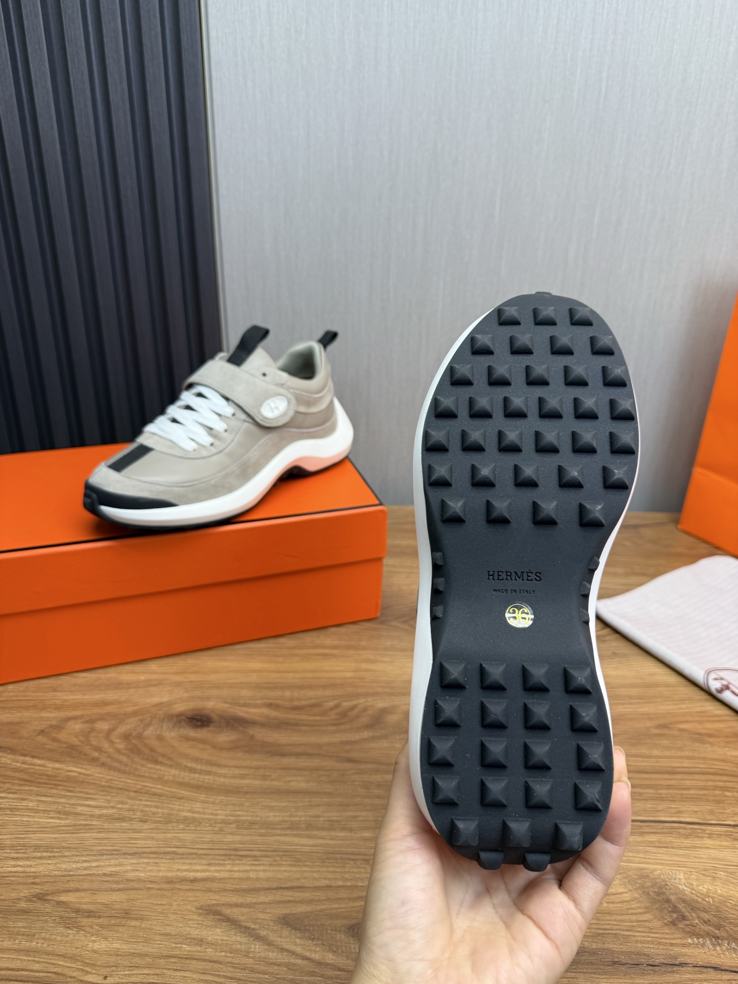 这款鞋子是AAAAA 1:1 质量 (非常棒). 使用了和原版一模一样的材料. 商标部分也保持了和爱马仕/Hermes一样. 图片拍摄是实物鞋子拍摄, 您所收到的实物保证和我们图片一模一样.