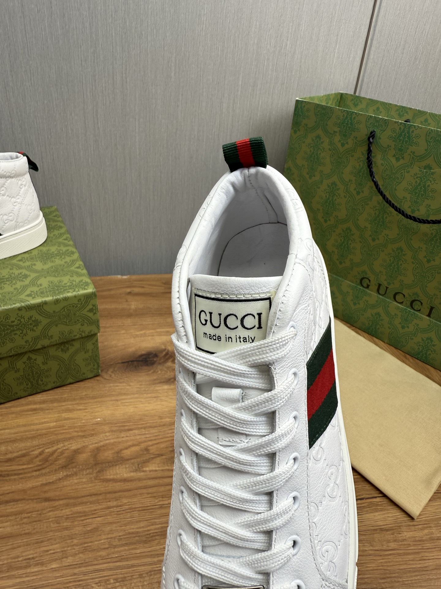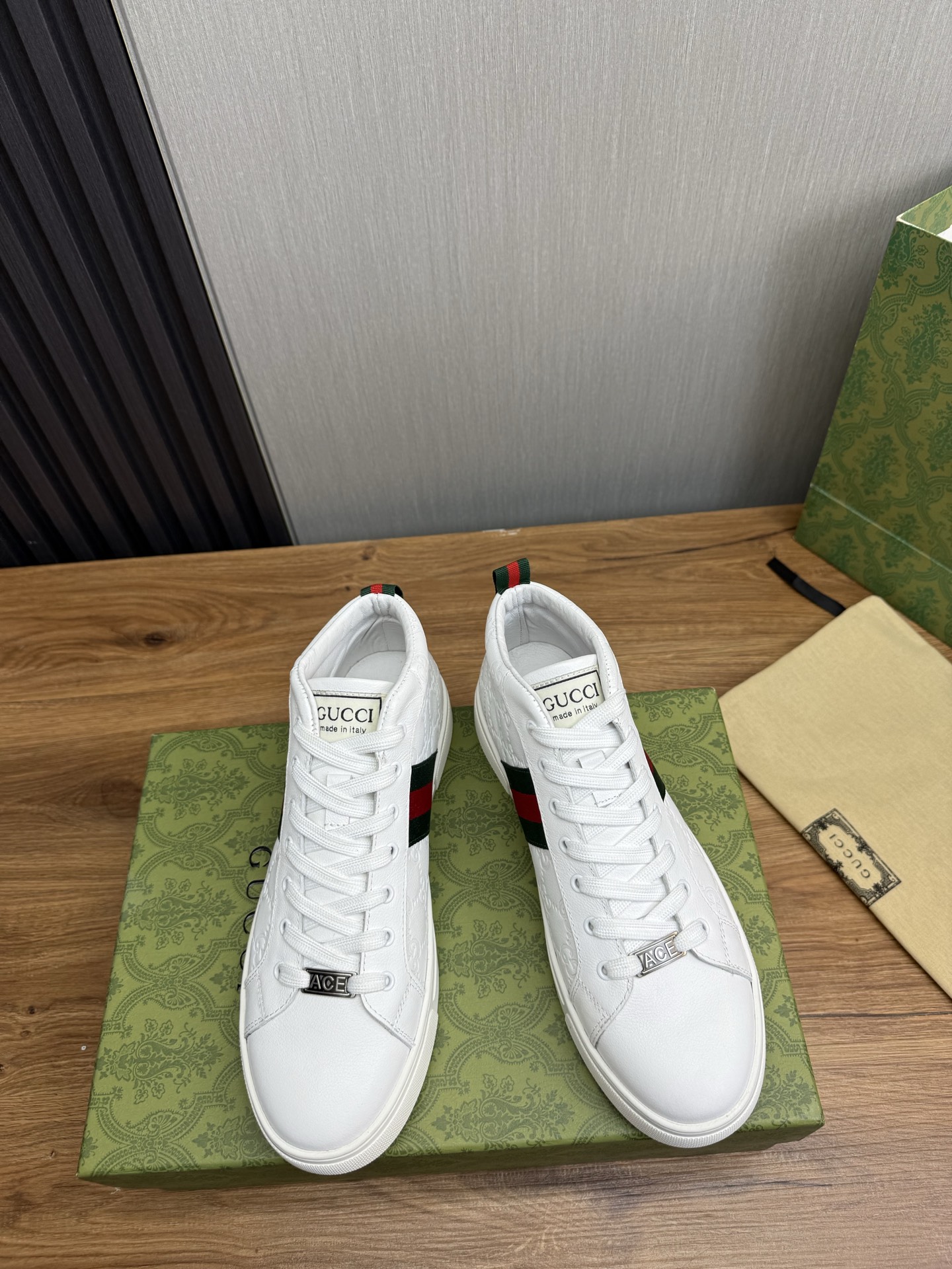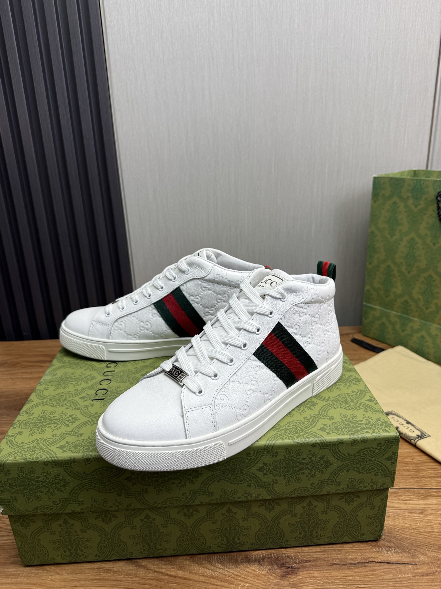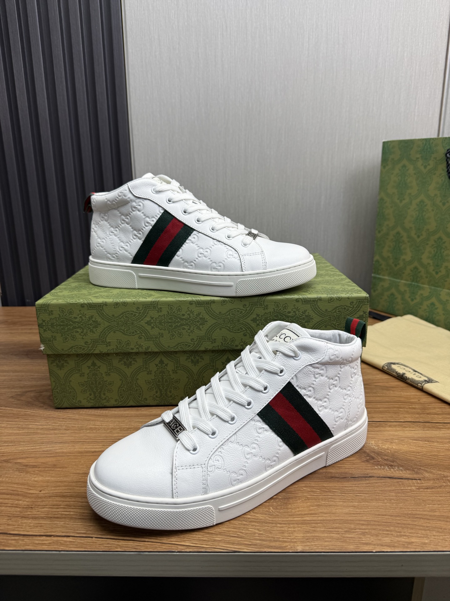 这款鞋子是AAAAA 1:1 质量 (非常棒). 使用了和原版一模一样的材料. 商标部分也保持了和古奇/Gucci一样. 图片拍摄是实物鞋子拍摄, 您所收到的实物保证和我们图片一模一样.