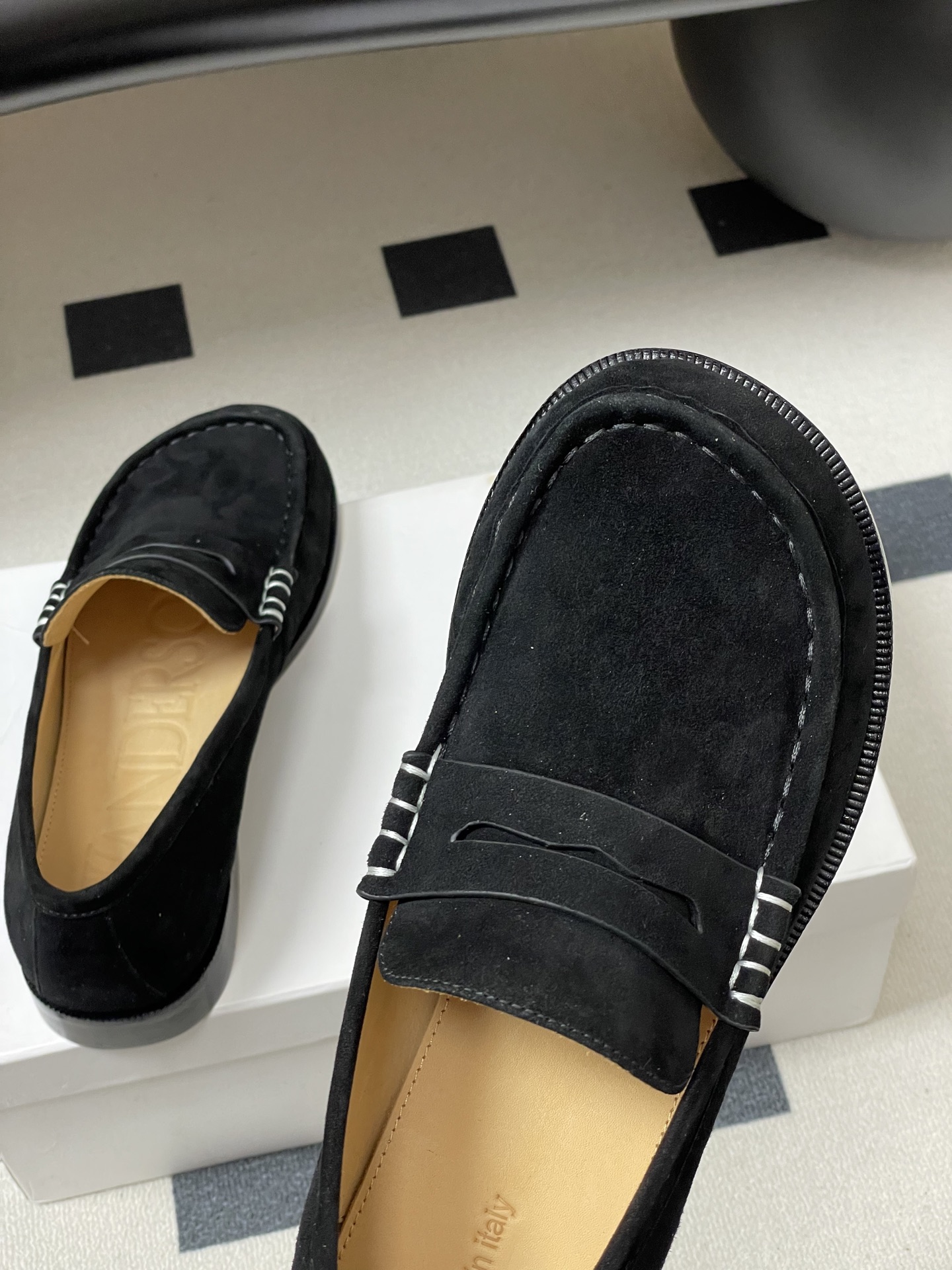 这款鞋子是AAAAA 1:1 质量 (非常棒). 使用了和原版一模一样的材料. 商标部分也保持了和安德森/J.W.Anderson一样. 图片拍摄是实物鞋子拍摄, 您所收到的实物保证和我们图片一模一样.