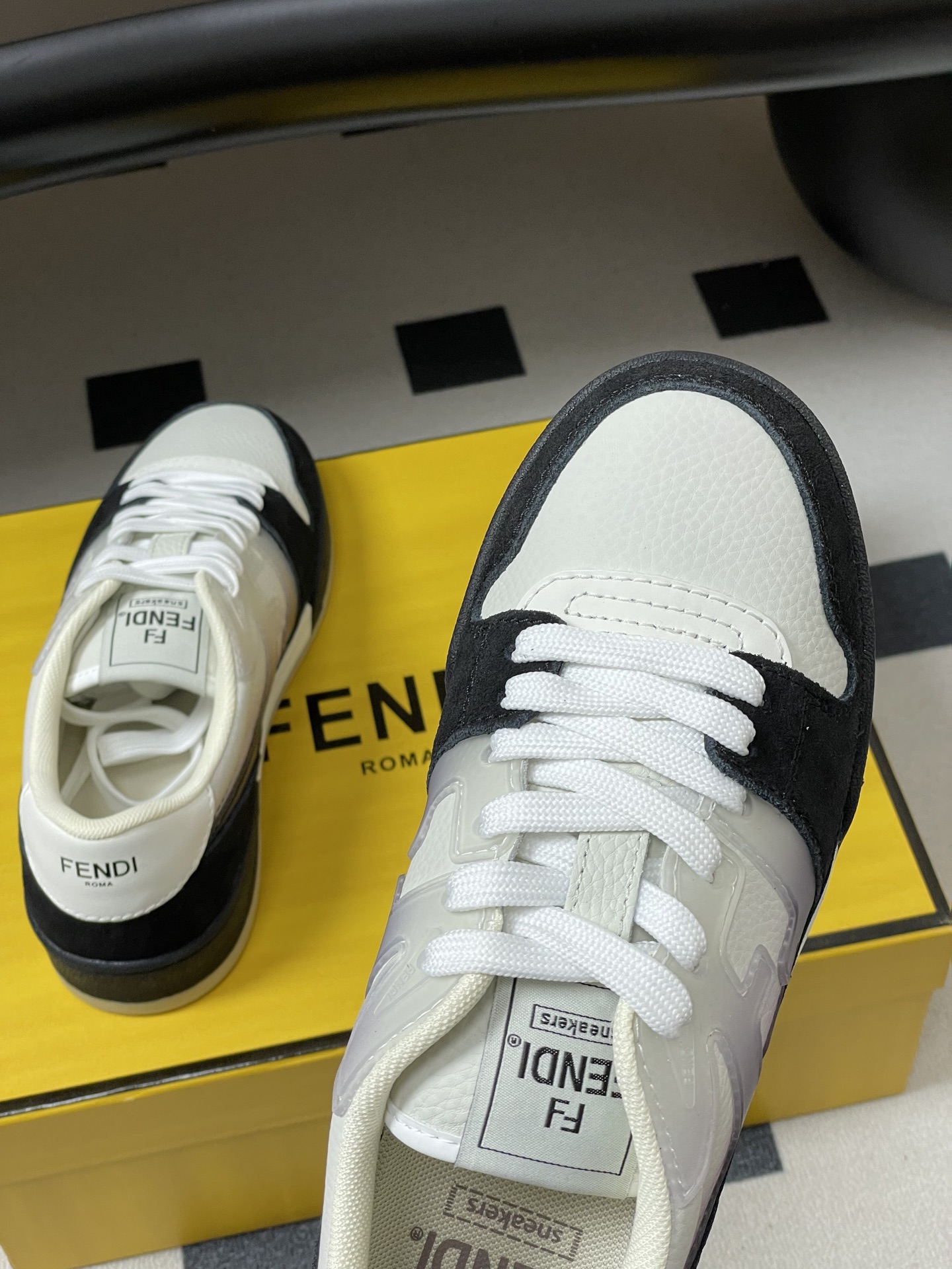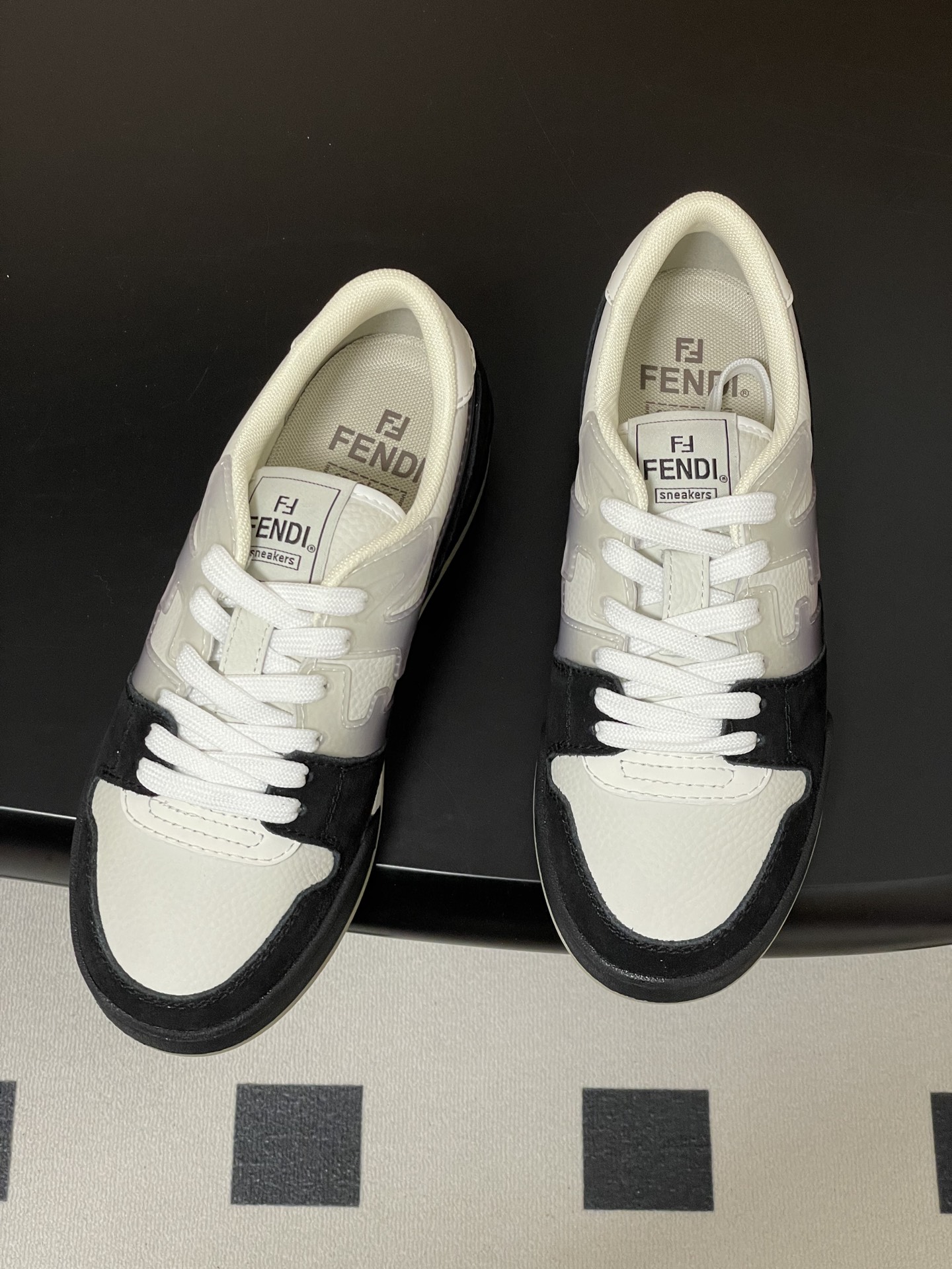 这款鞋子是AAAAA 1:1 质量 (非常棒). 使用了和原版一模一样的材料. 商标部分也保持了和芬迪/Fendi一样. 图片拍摄是实物鞋子拍摄, 您所收到的实物保证和我们图片一模一样.
