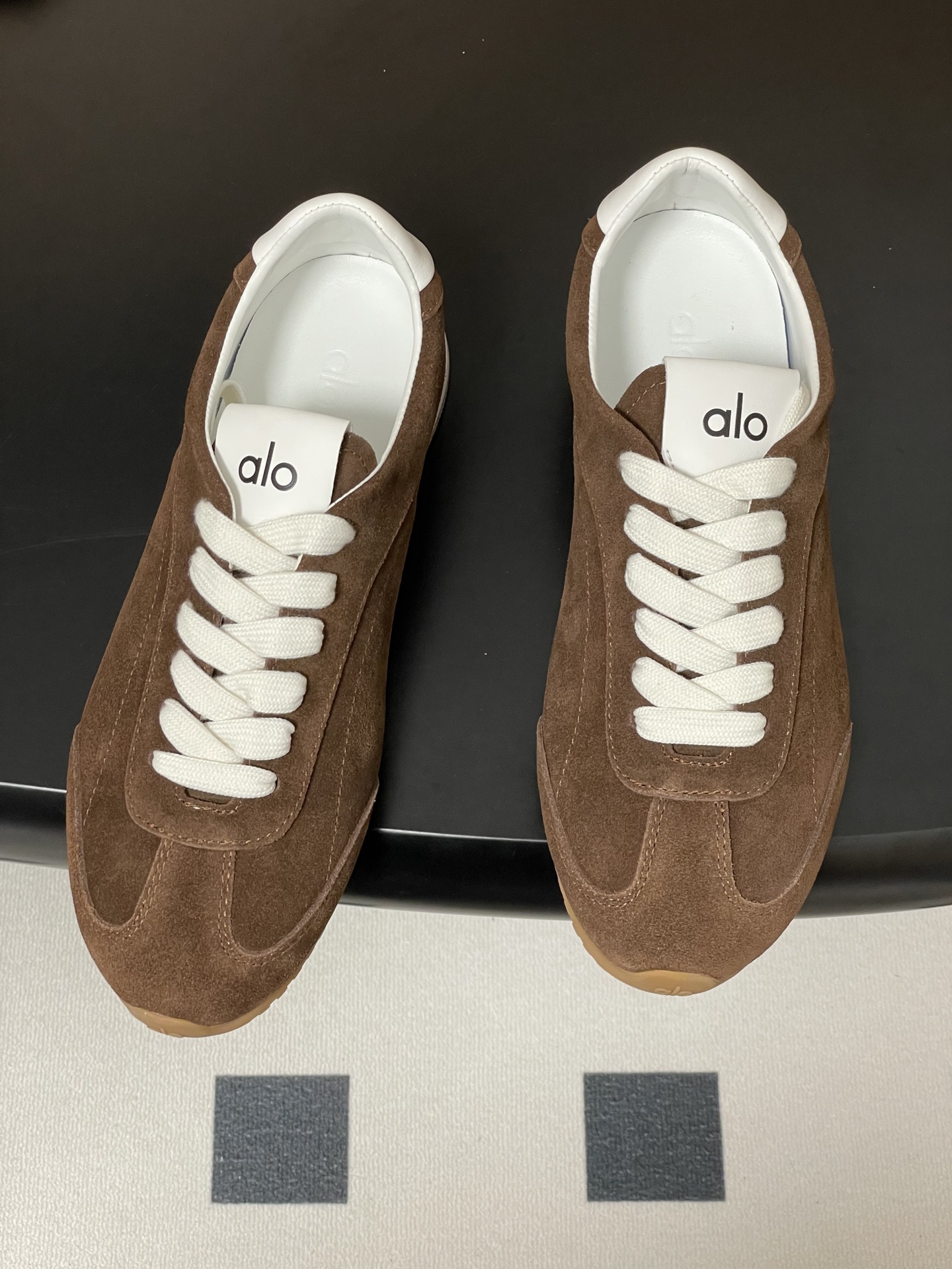 这款鞋子是AAAAA 1:1 质量 (非常棒). 使用了和原版一模一样的材料. 商标部分也保持了和Alo Yoga一样. 图片拍摄是实物鞋子拍摄, 您所收到的实物保证和我们图片一模一样.