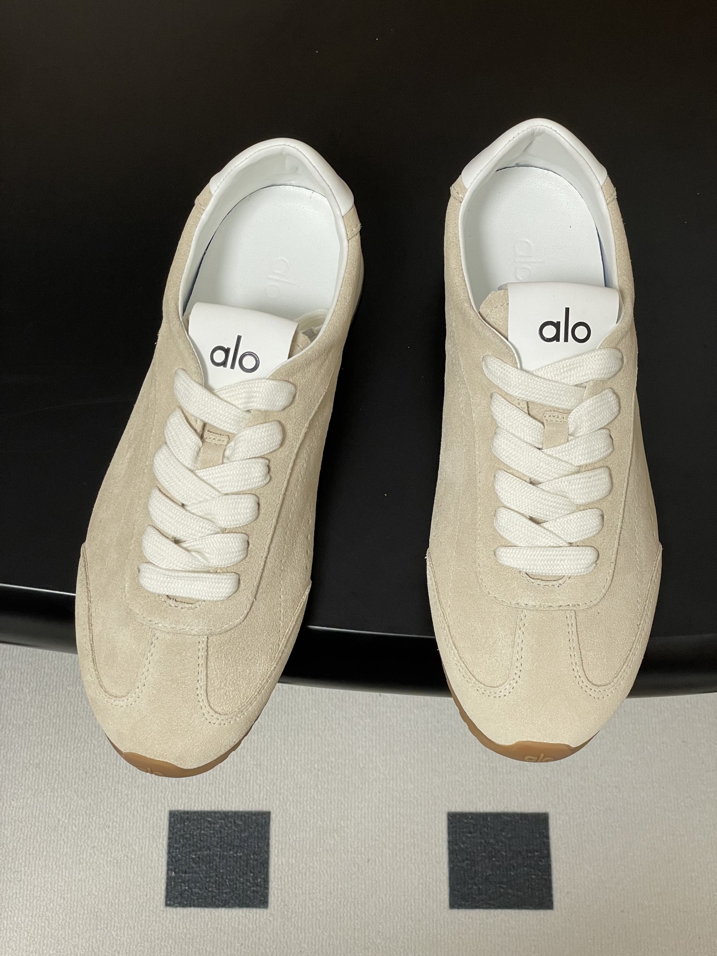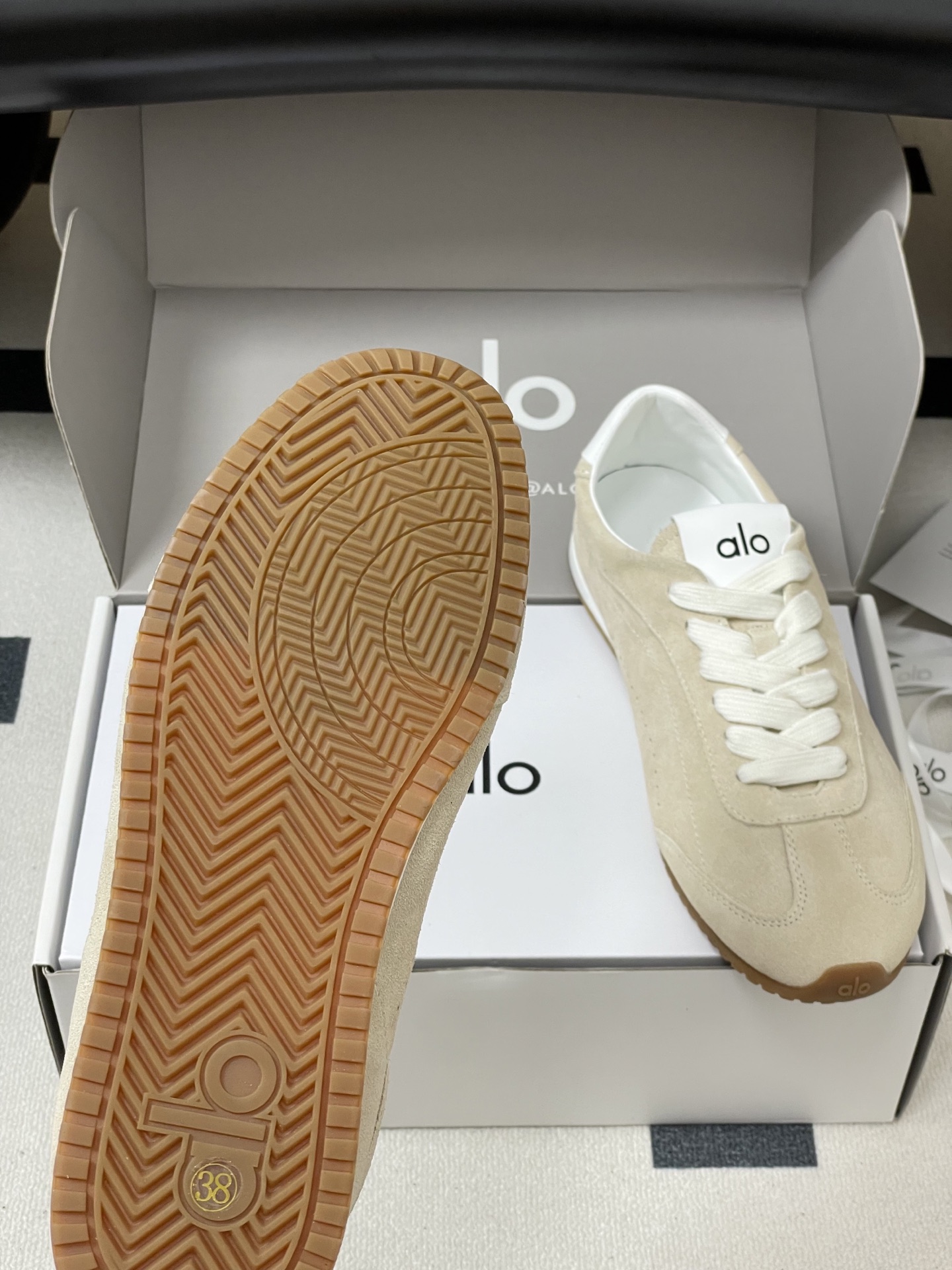 这款鞋子是AAAAA 1:1 质量 (非常棒). 使用了和原版一模一样的材料. 商标部分也保持了和Alo Yoga一样. 图片拍摄是实物鞋子拍摄, 您所收到的实物保证和我们图片一模一样.