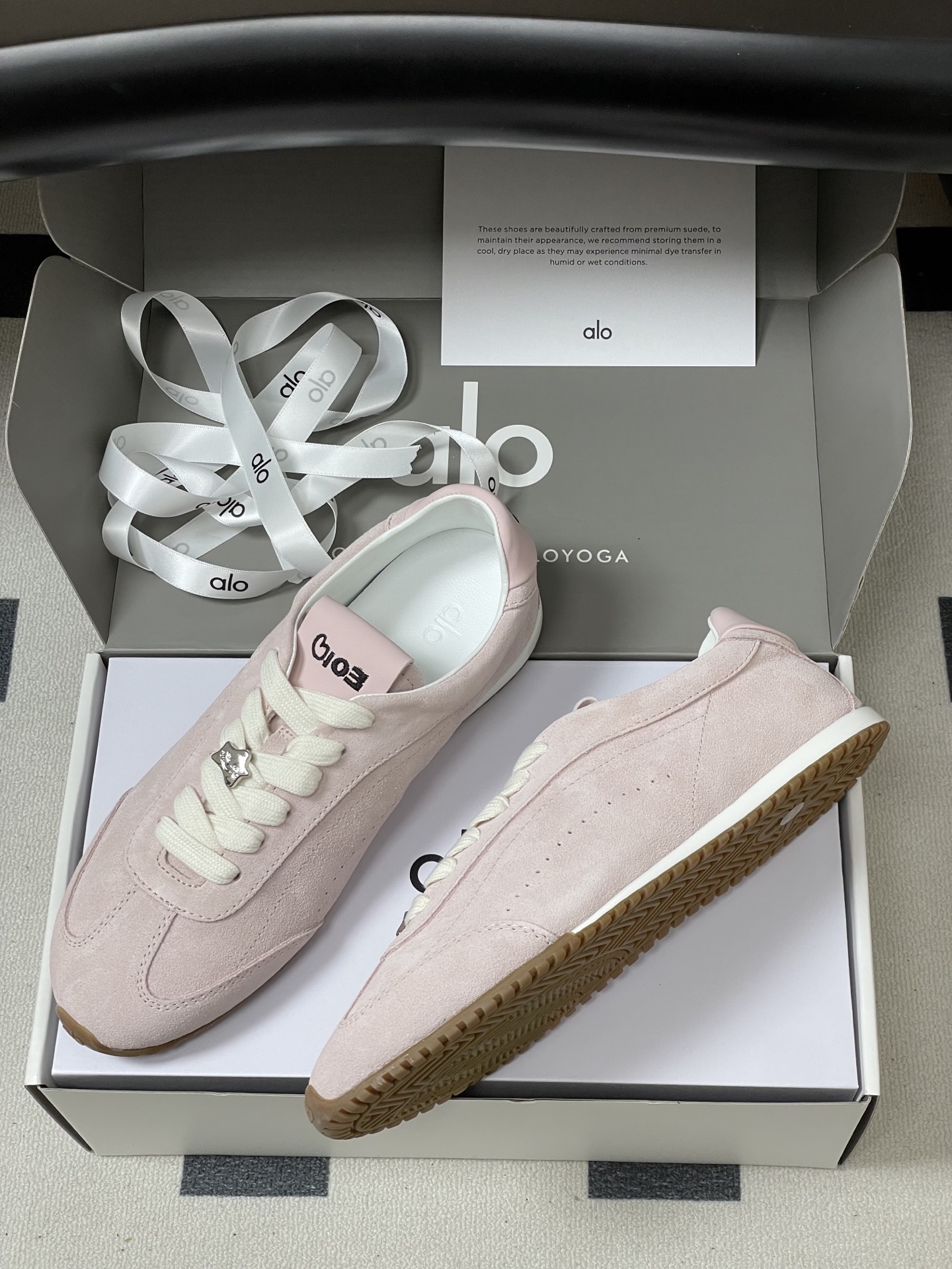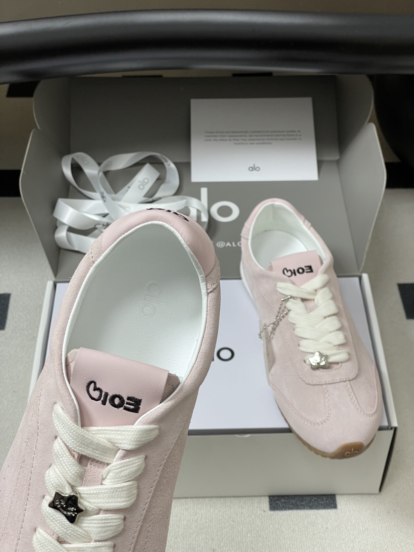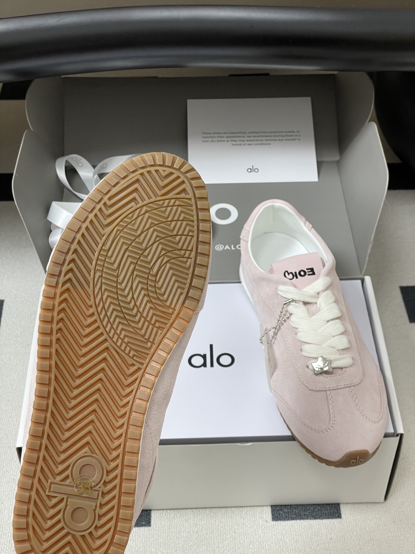 这款鞋子是AAAAA 1:1 质量 (非常棒). 使用了和原版一模一样的材料. 商标部分也保持了和Alo Yoga一样. 图片拍摄是实物鞋子拍摄, 您所收到的实物保证和我们图片一模一样.