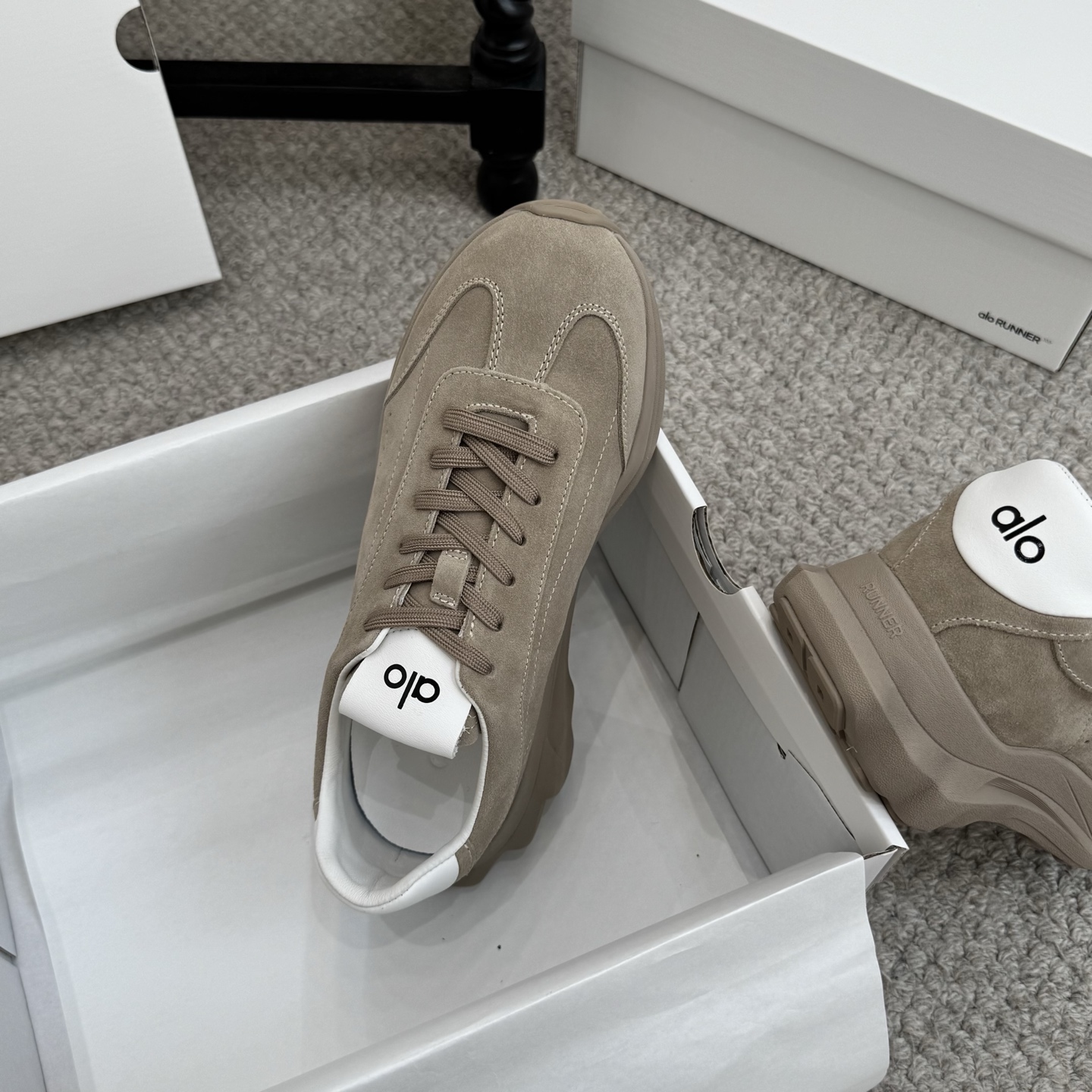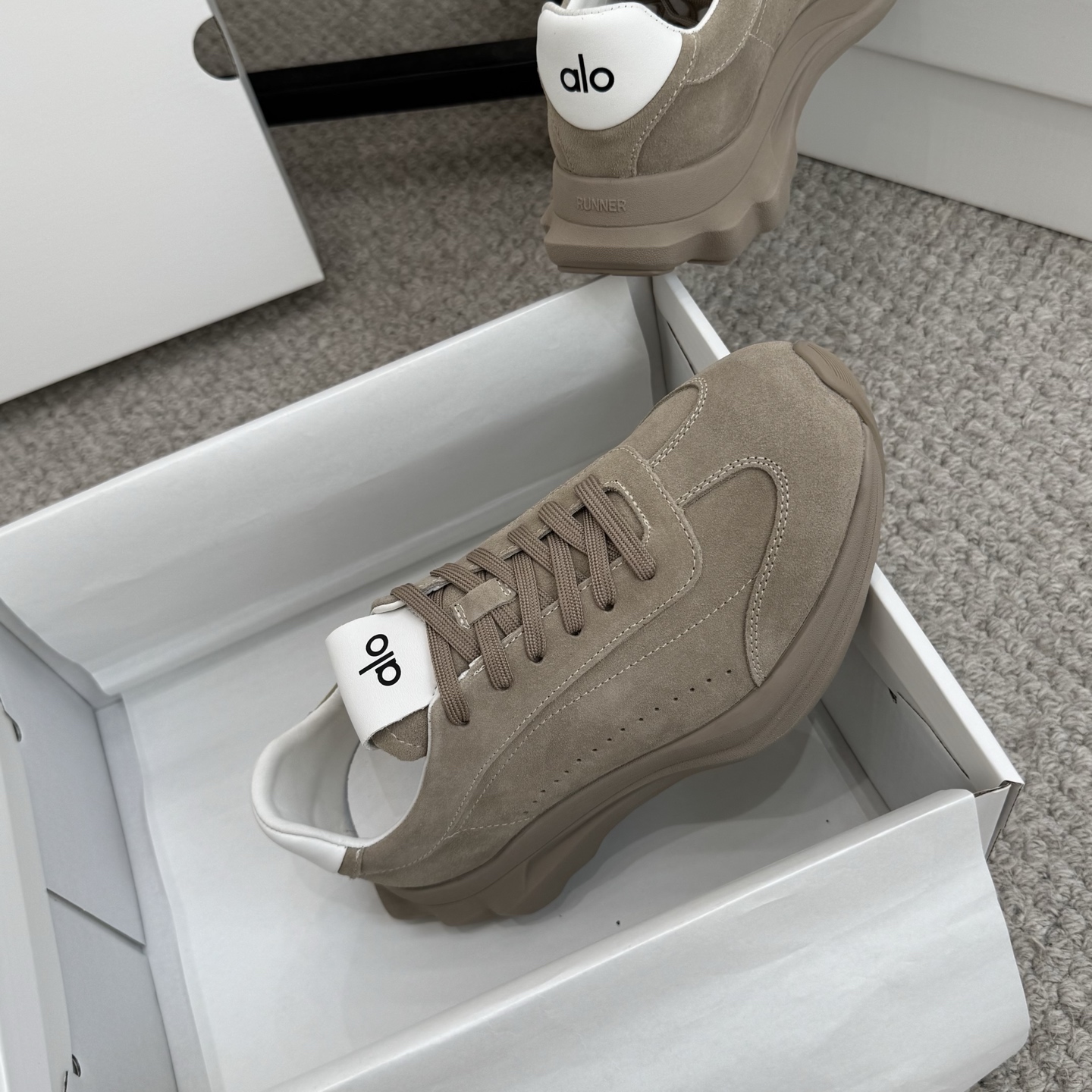 这款鞋子是AAAAA 1:1 质量 (非常棒). 使用了和原版一模一样的材料. 商标部分也保持了和Alo Yoga一样. 图片拍摄是实物鞋子拍摄, 您所收到的实物保证和我们图片一模一样.