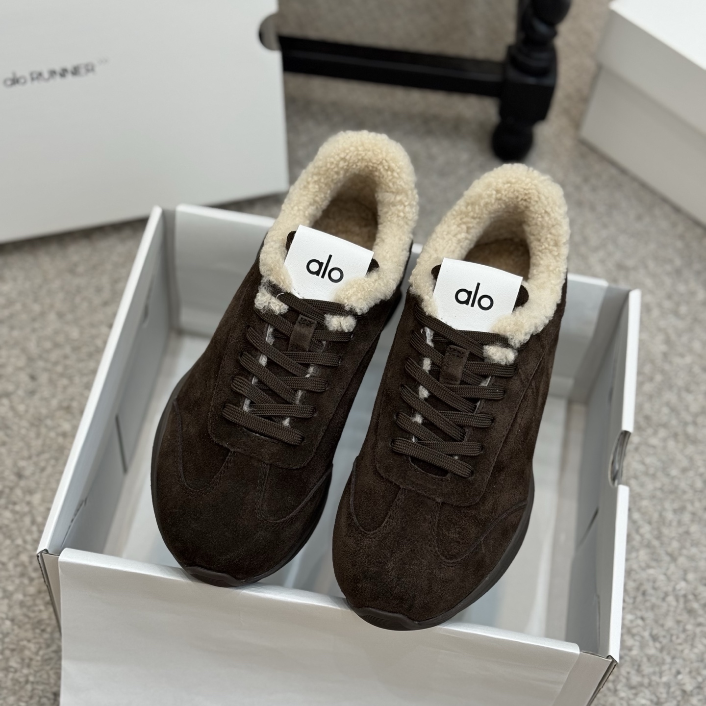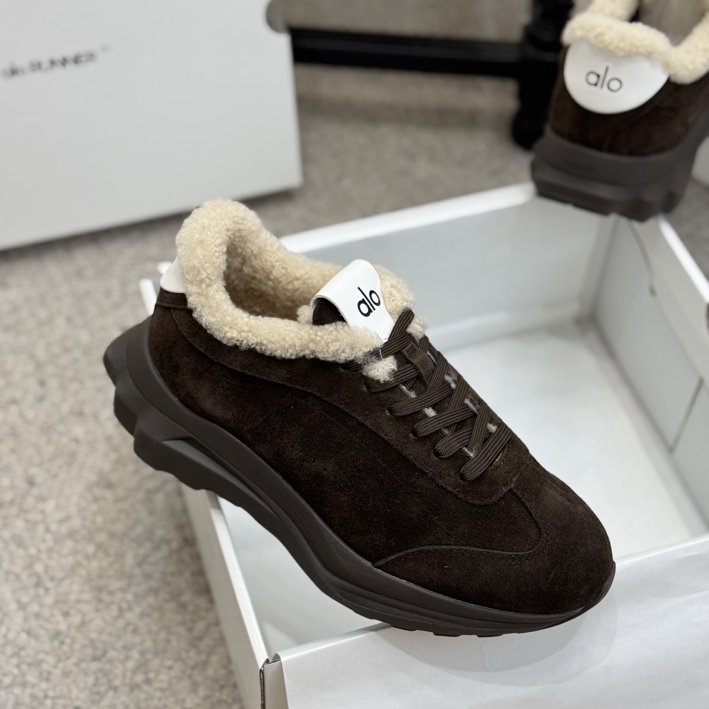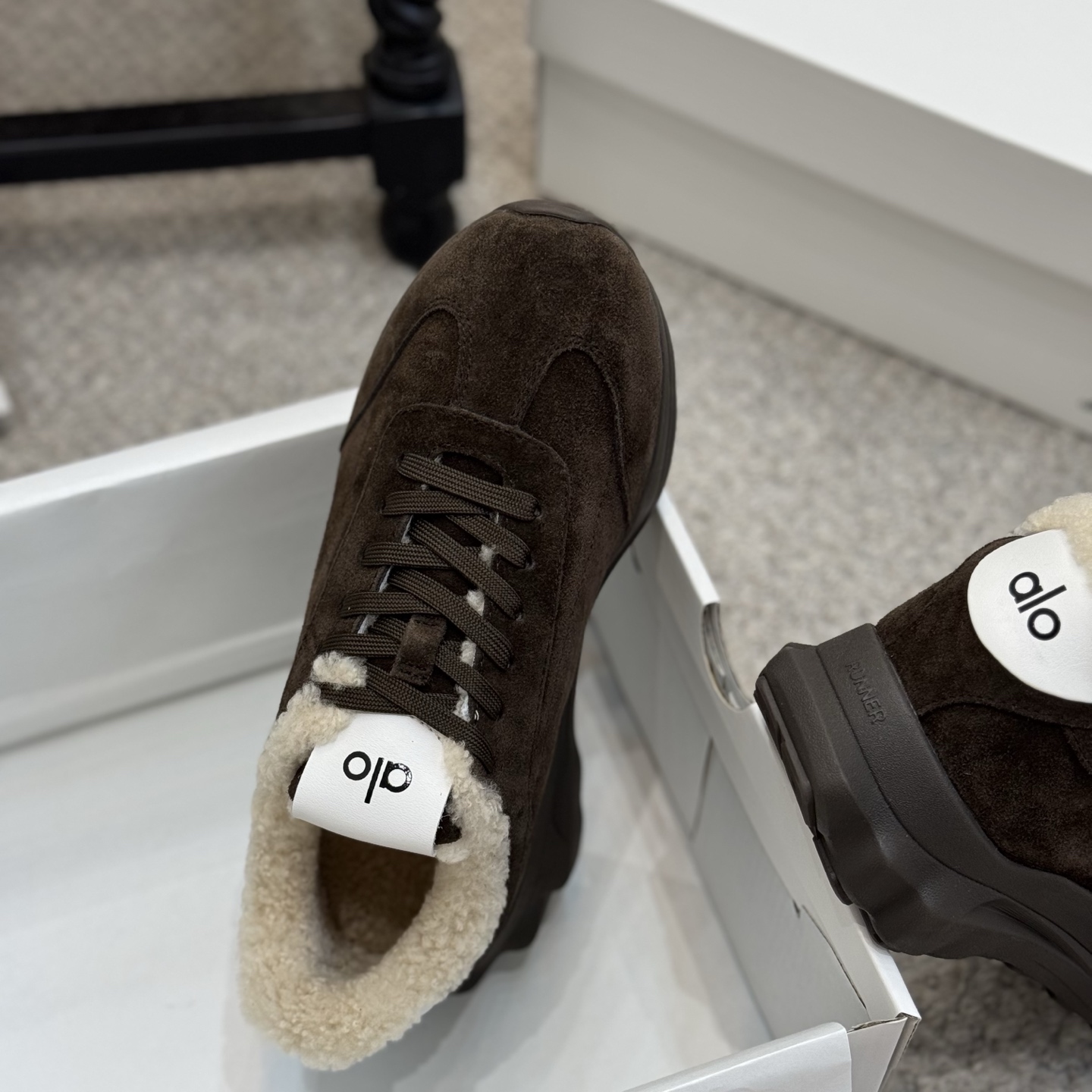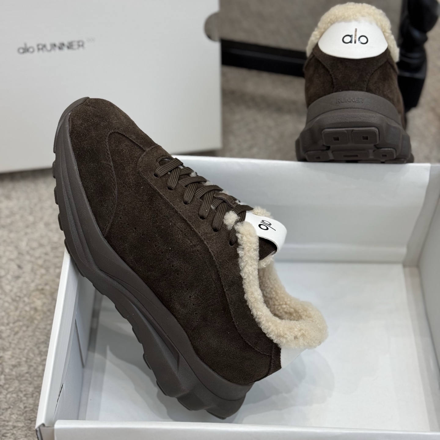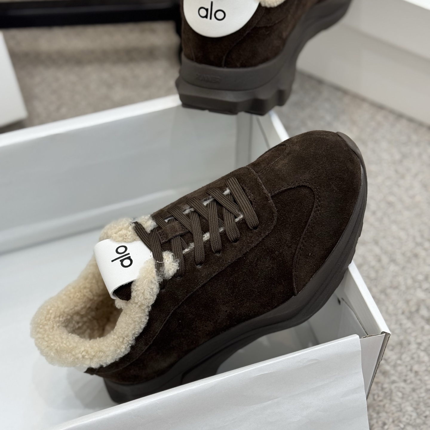 这款鞋子是AAAAA 1:1 质量 (非常棒). 使用了和原版一模一样的材料. 商标部分也保持了和Alo Yoga一样. 图片拍摄是实物鞋子拍摄, 您所收到的实物保证和我们图片一模一样.