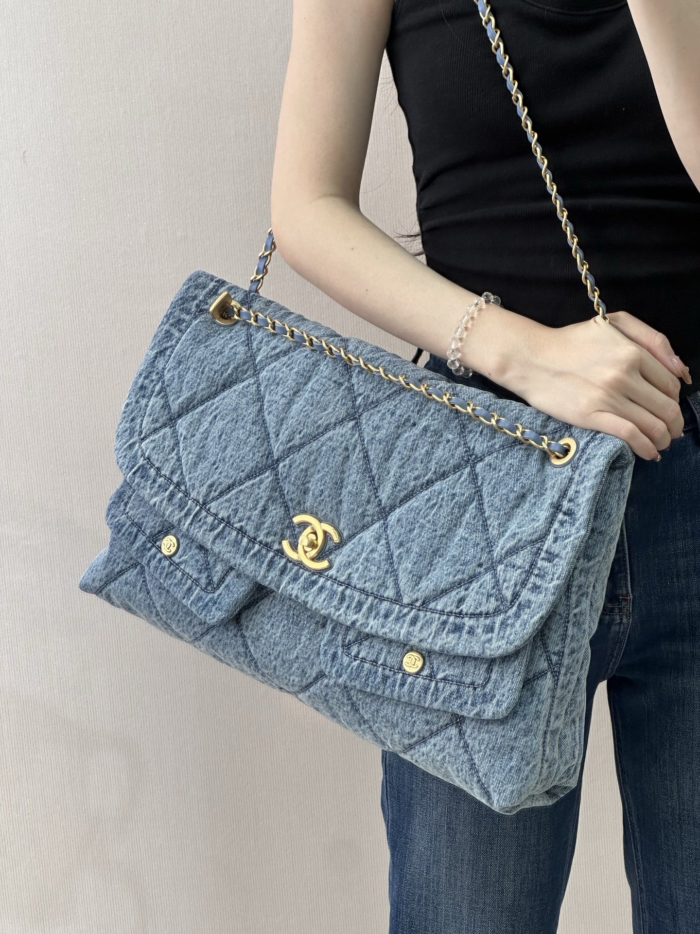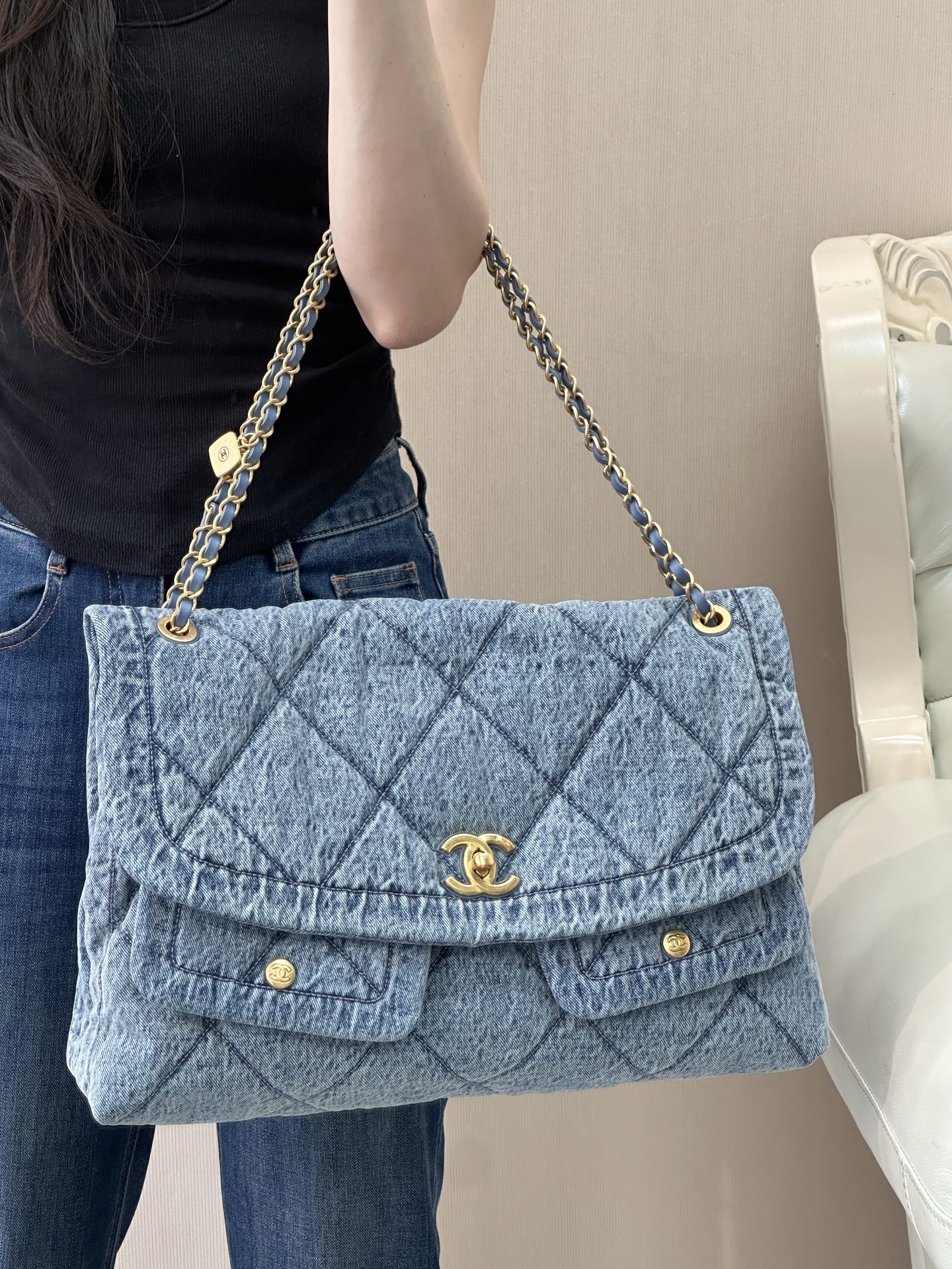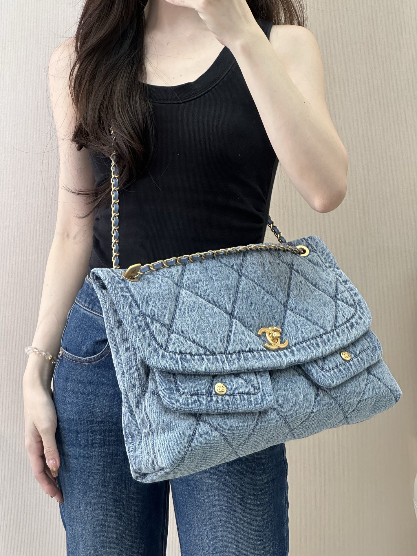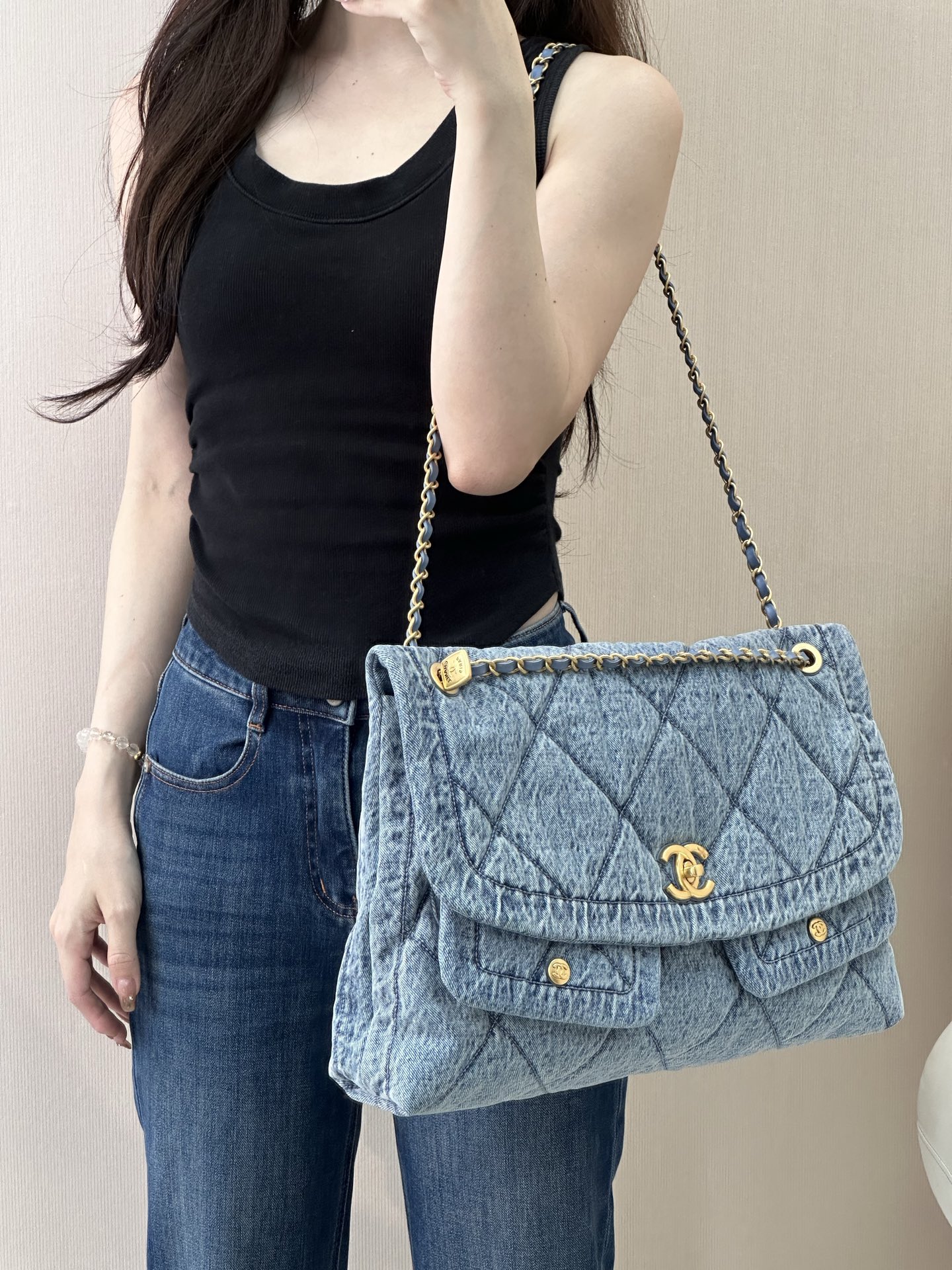 这款包包是AAAAA 1:1 质量 (非常棒). 使用了和原版一模一样的材料. 商标部分也保持了和香奈儿/Chanel一样. 图片拍摄是实物包包拍摄, 您所收到的实物保证和我们图片一模一样.
