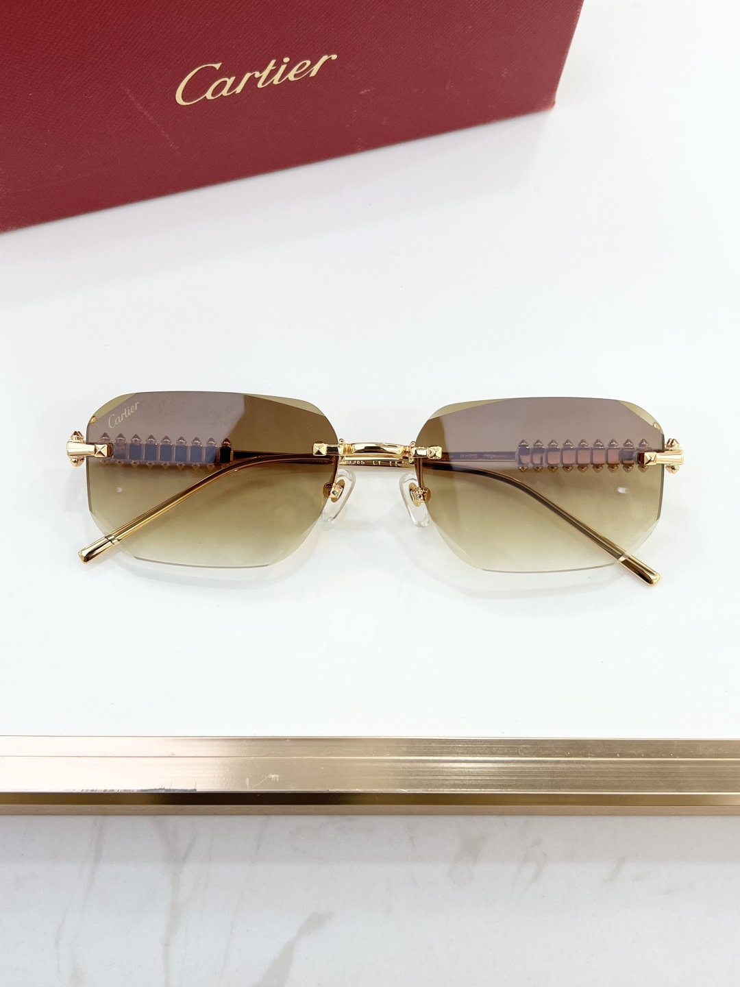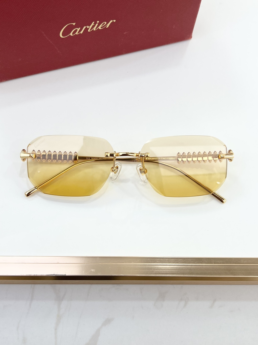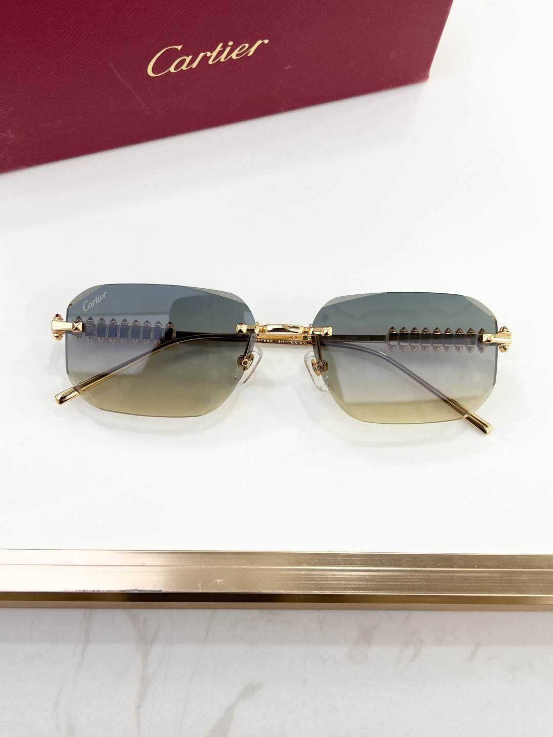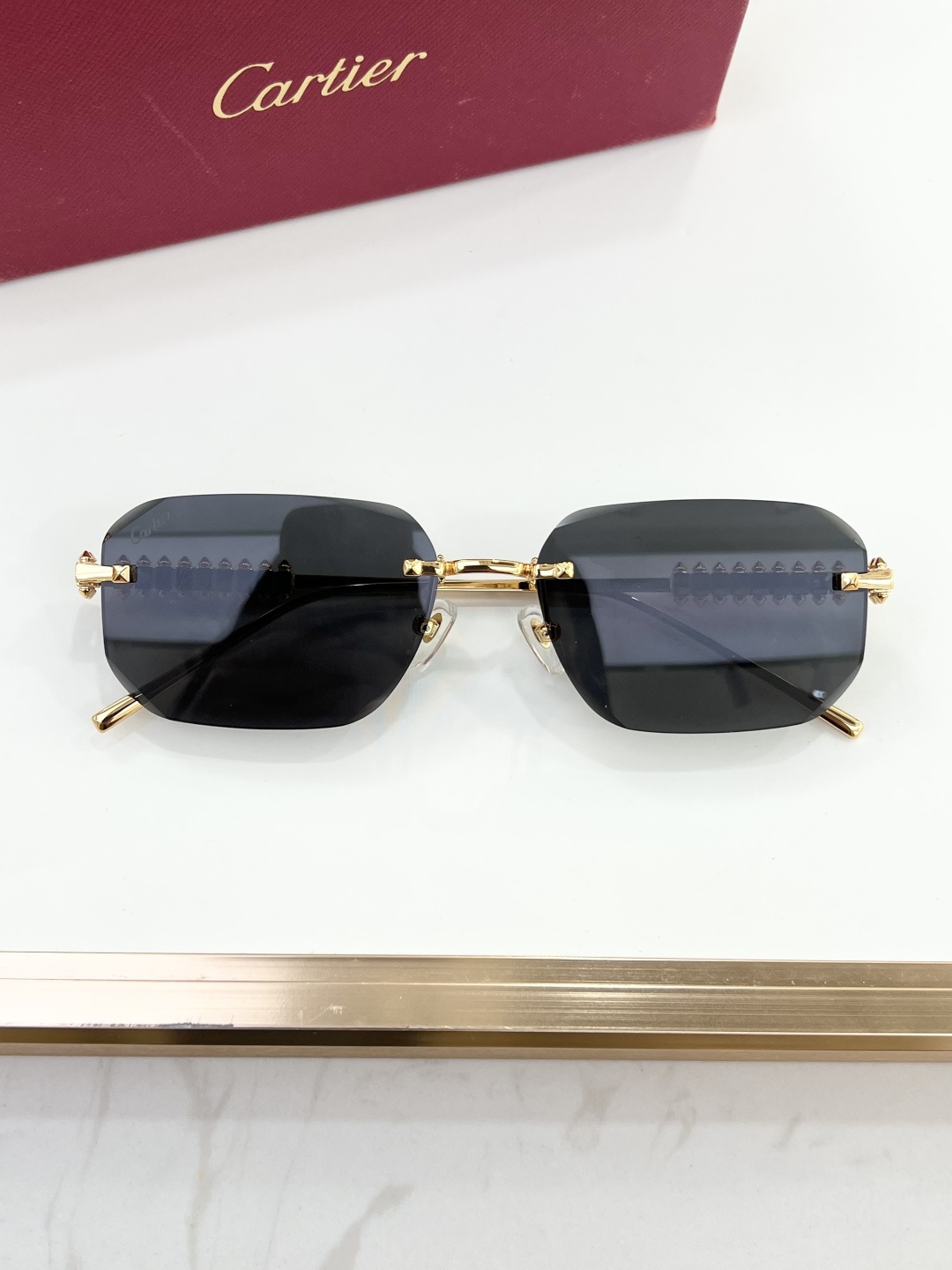 这款太阳眼镜是AAAAA 1:1 质量 (非常棒). 使用了和原版一模一样的材料. 商标部分也保持了和卡地亚/Cartier一样. 图片拍摄是实物太阳眼镜拍摄, 您所收到的实物保证和我们图片一模一样.