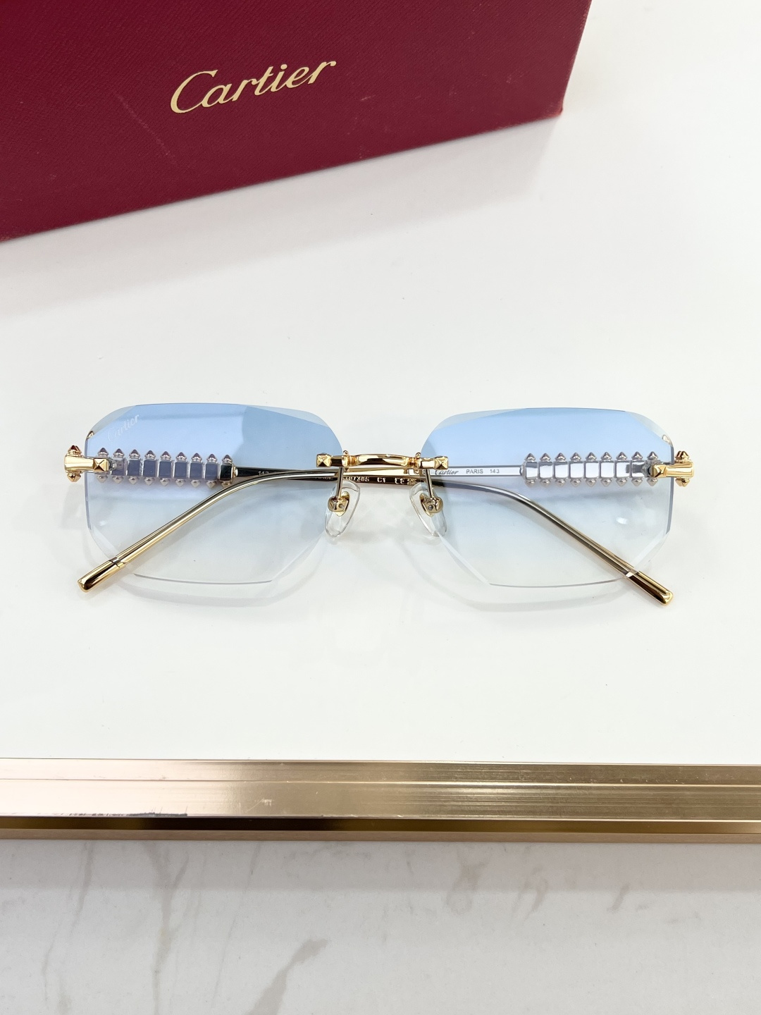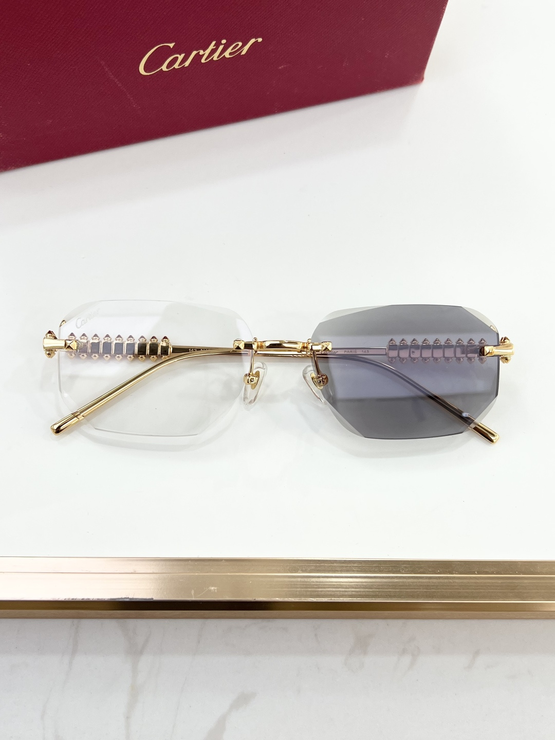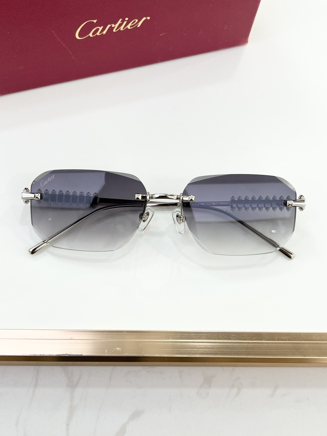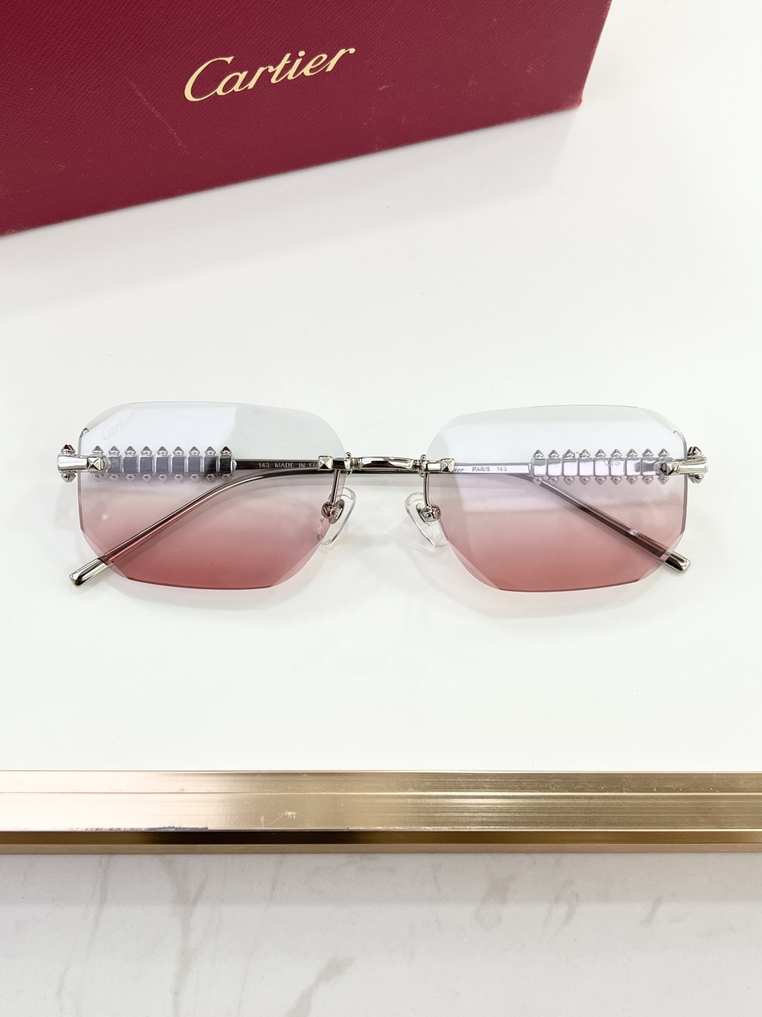 这款太阳眼镜是AAAAA 1:1 质量 (非常棒). 使用了和原版一模一样的材料. 商标部分也保持了和卡地亚/Cartier一样. 图片拍摄是实物太阳眼镜拍摄, 您所收到的实物保证和我们图片一模一样.