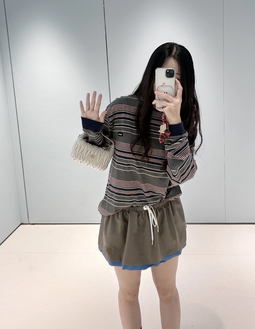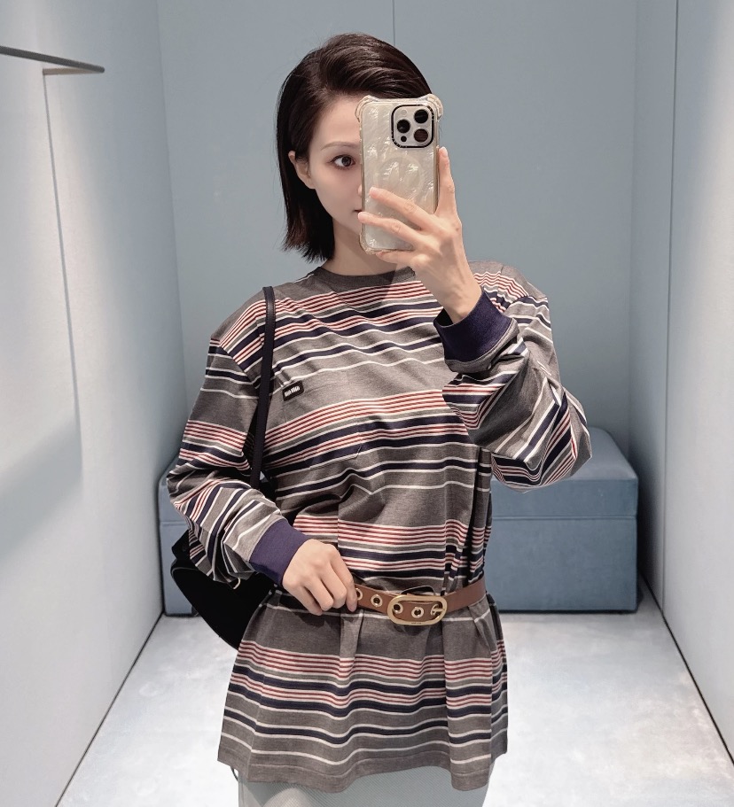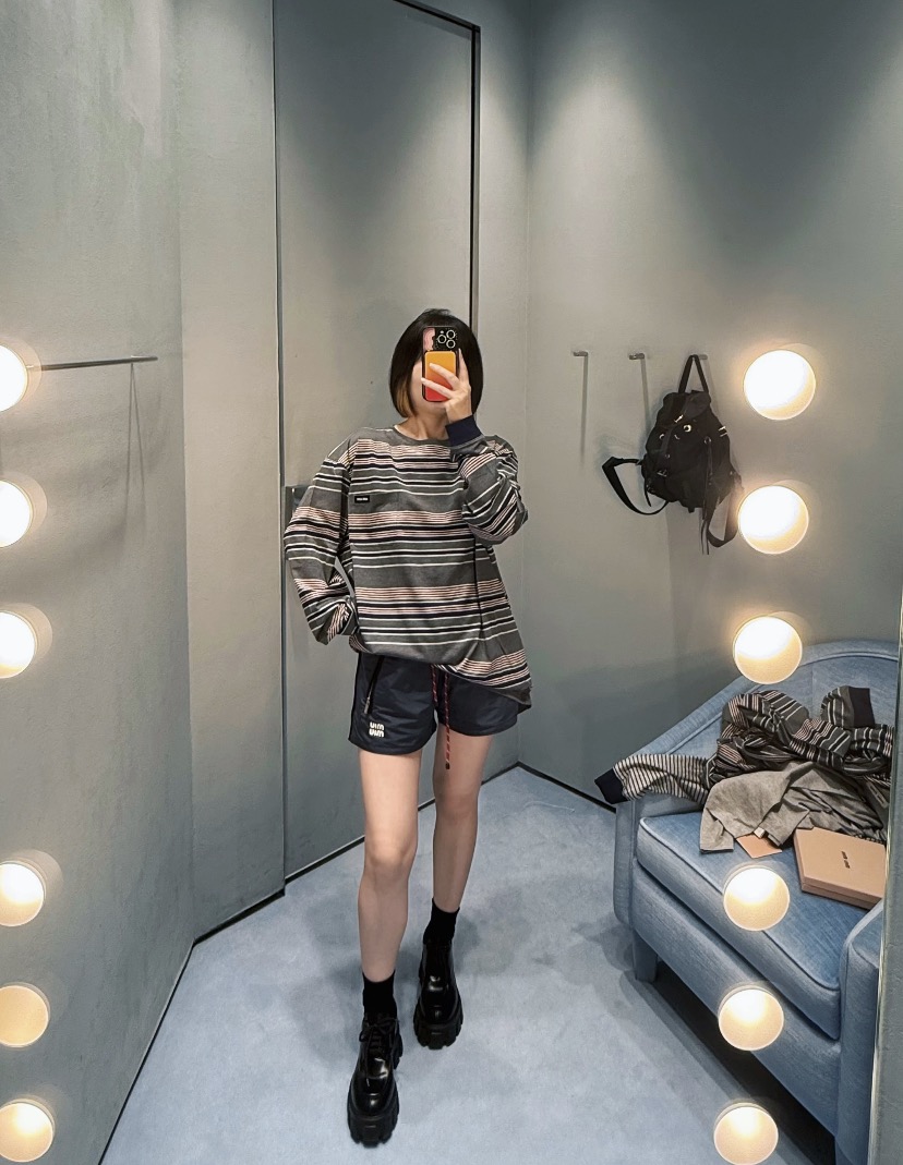 这款衣服是AAAAA 1:1 质量 (非常棒). 使用了和原版一模一样的材料. 商标部分也保持了和缪缪/Miu Miu一样. 图片拍摄是实物衣服拍摄, 您所收到的实物保证和我们图片一模一样.