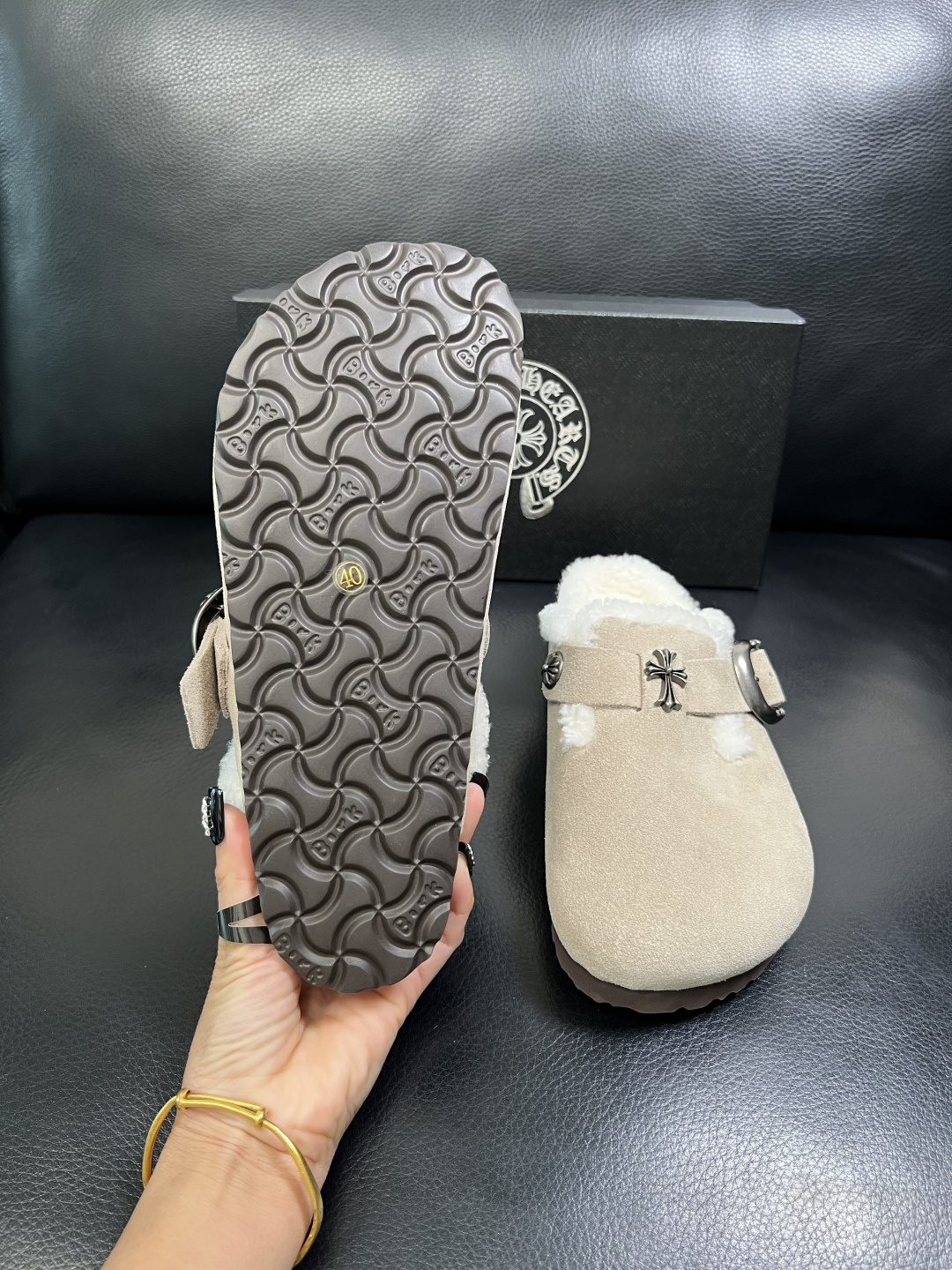 这款鞋子是AAAAA 1:1 质量 (非常棒). 使用了和原版一模一样的材料. 商标部分也保持了和克罗心/Chrome Hearts一样. 图片拍摄是实物鞋子拍摄, 您所收到的实物保证和我们图片一模一样.