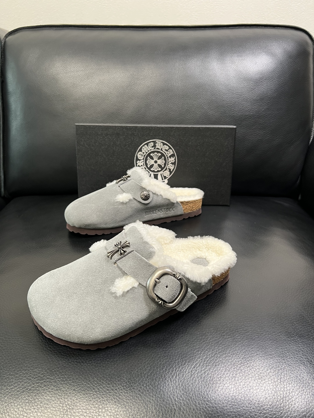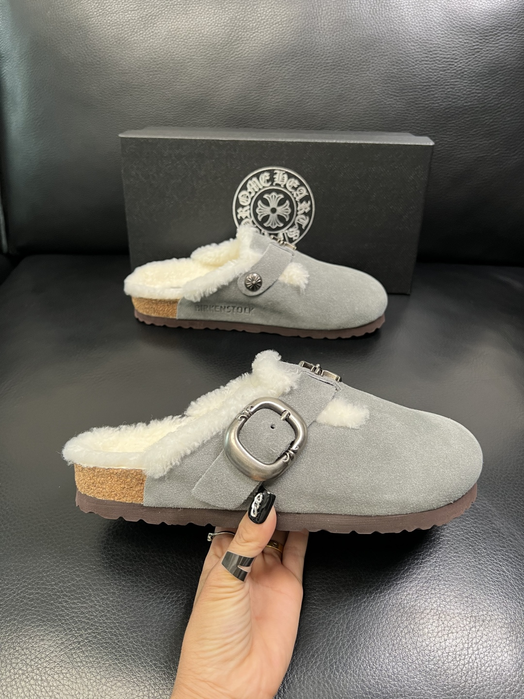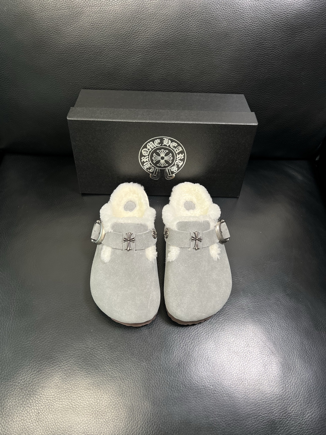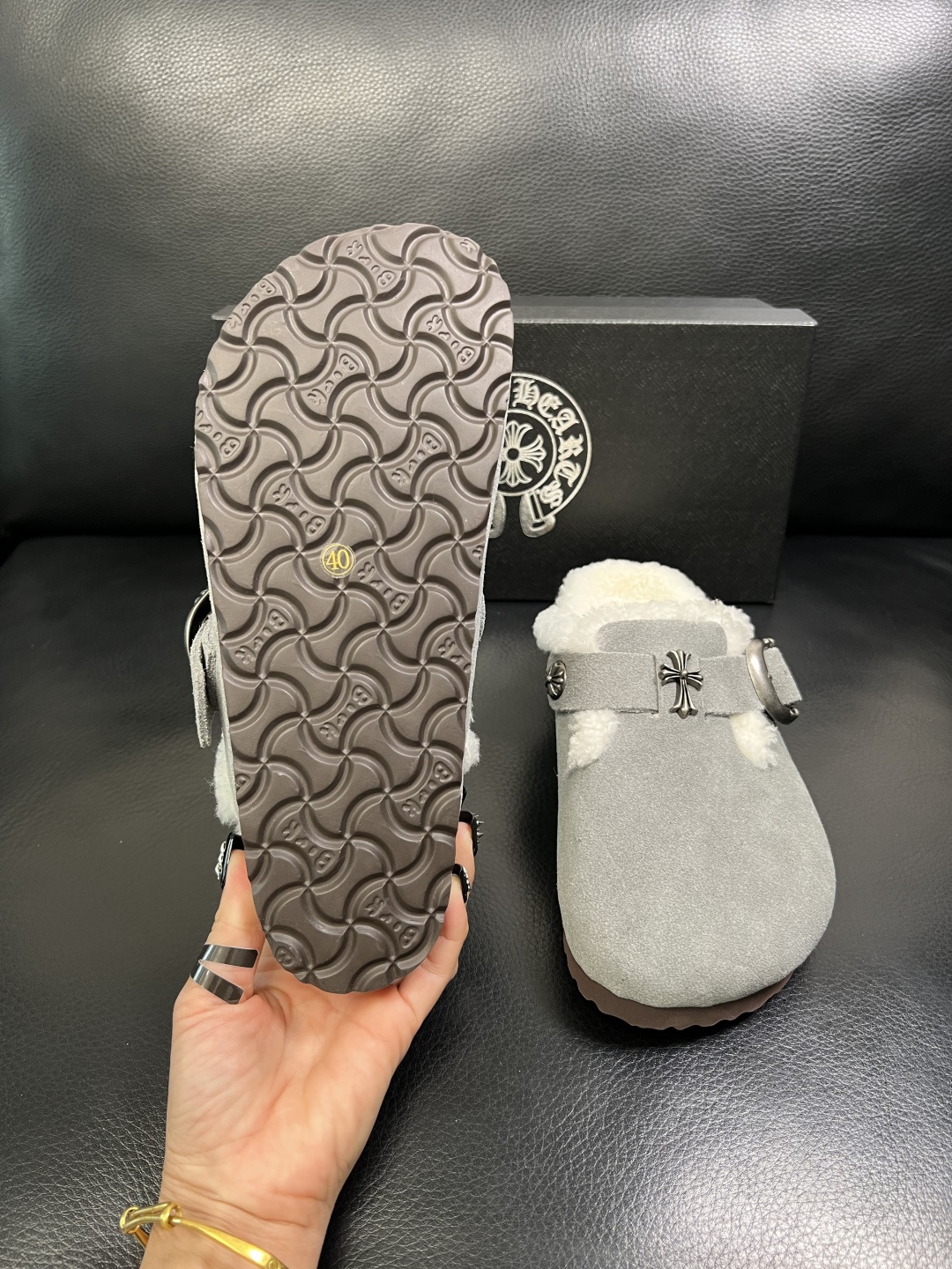 这款鞋子是AAAAA 1:1 质量 (非常棒). 使用了和原版一模一样的材料. 商标部分也保持了和克罗心/Chrome Hearts一样. 图片拍摄是实物鞋子拍摄, 您所收到的实物保证和我们图片一模一样.