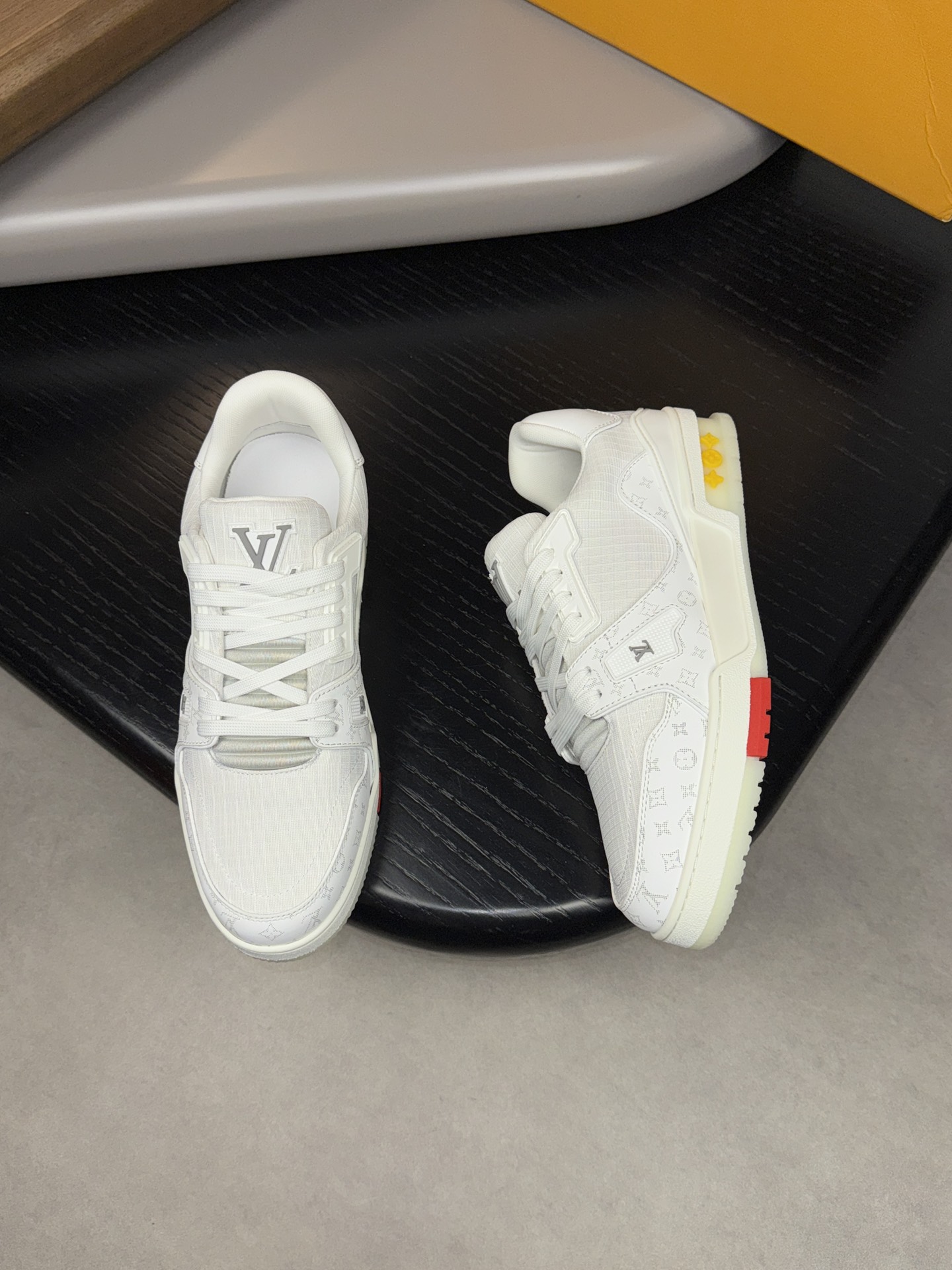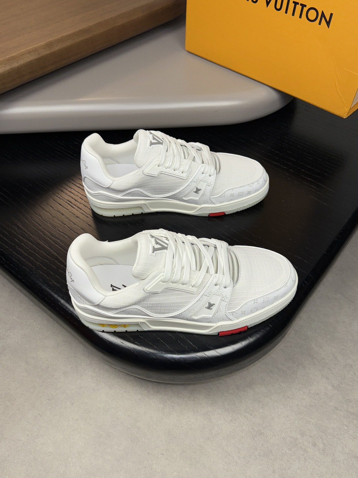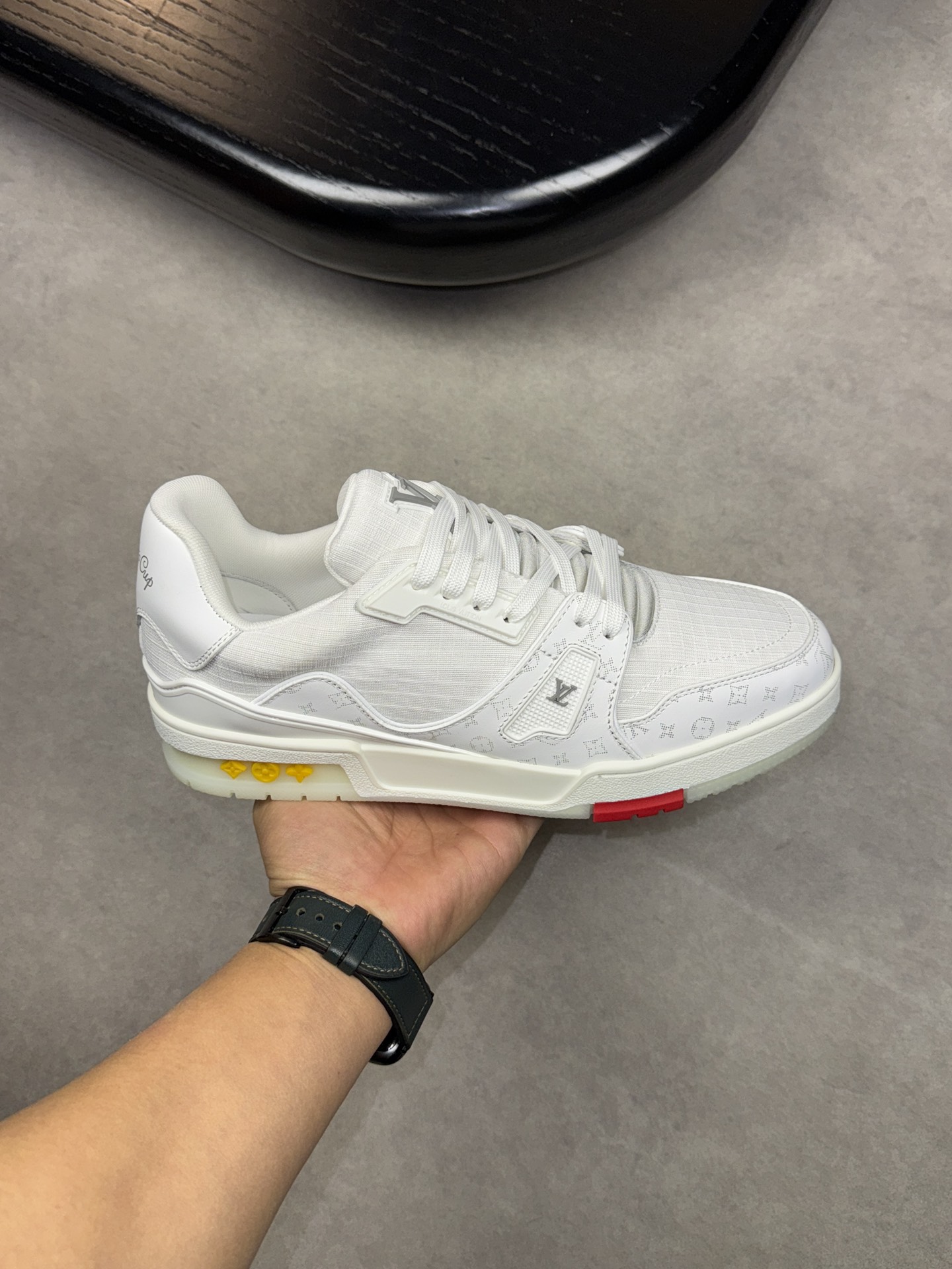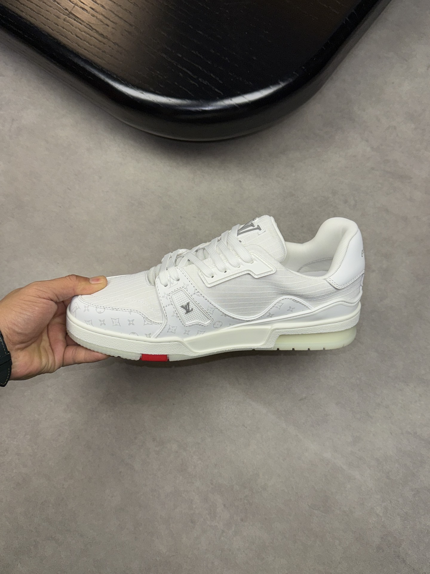这款鞋子是AAAAA 1:1 质量 (非常棒). 使用了和原版一模一样的材料. 商标部分也保持了和路易威登/Louis Vuitton一样. 图片拍摄是实物鞋子拍摄, 您所收到的实物保证和我们图片一模一样.