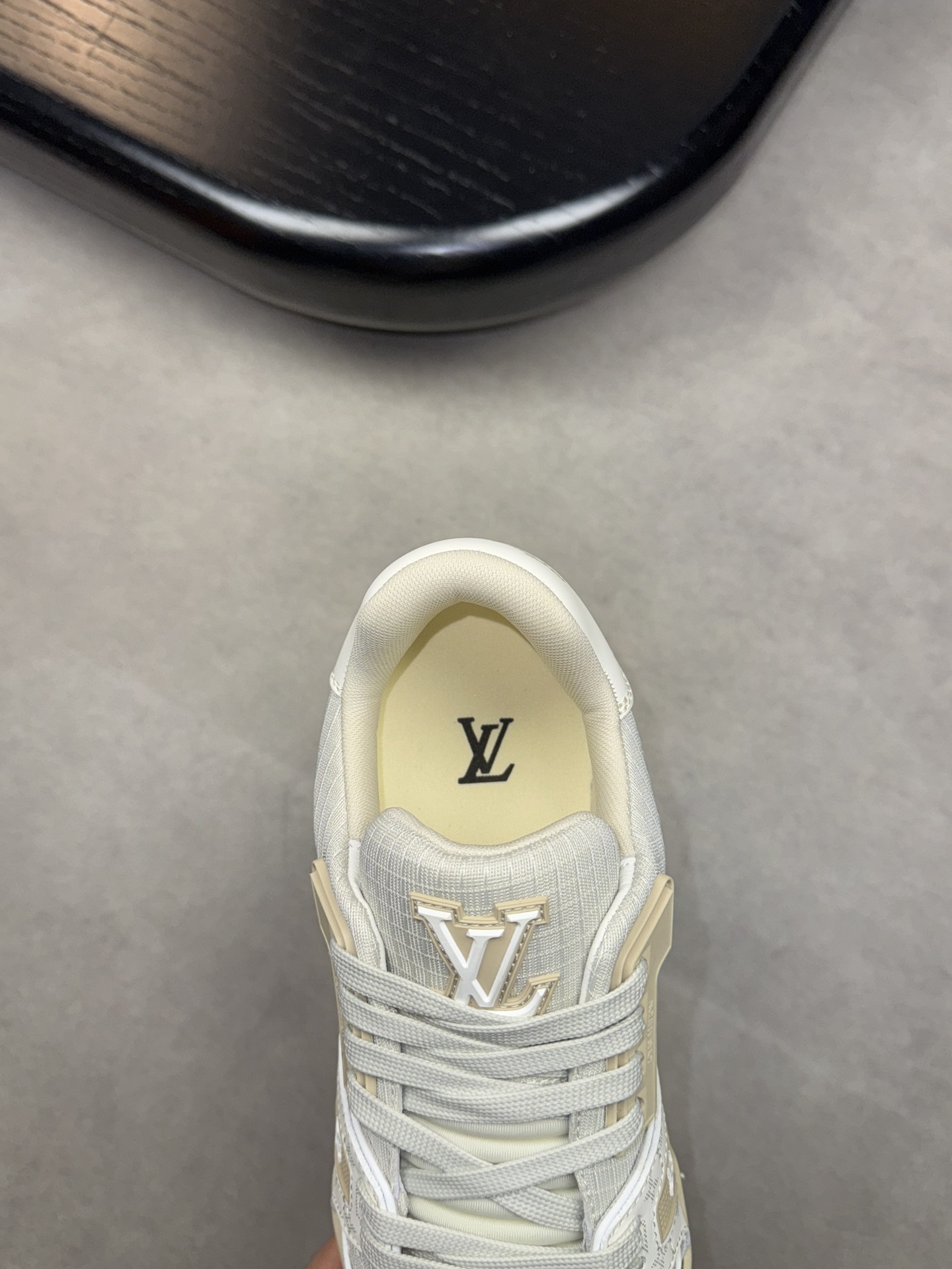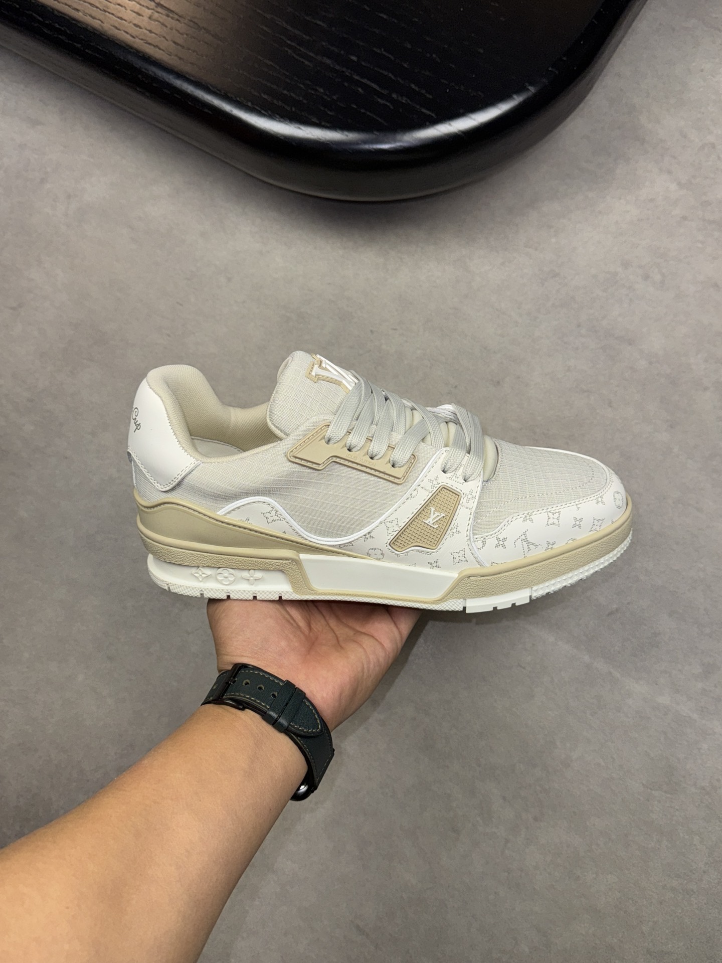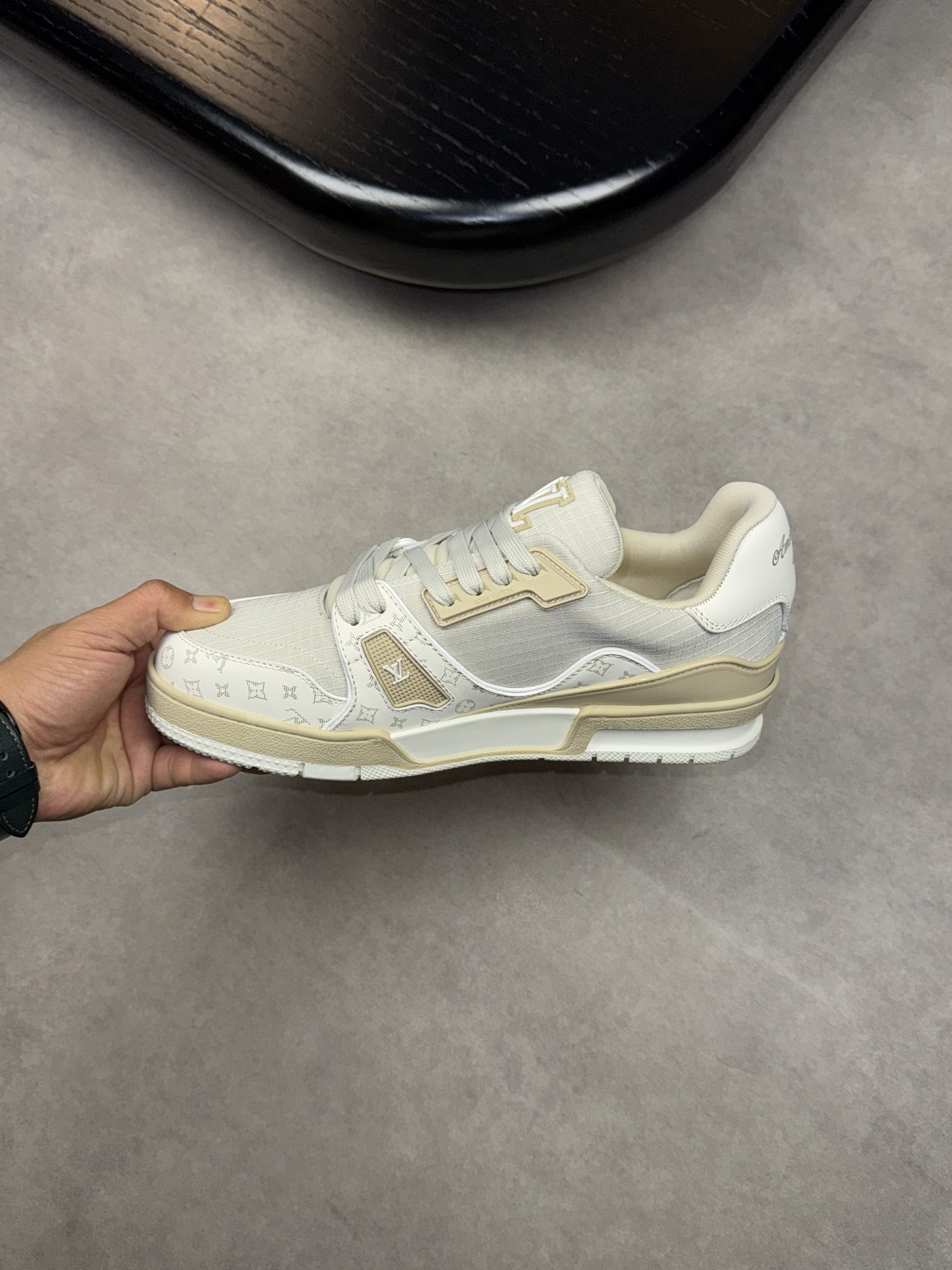 这款鞋子是AAAAA 1:1 质量 (非常棒). 使用了和原版一模一样的材料. 商标部分也保持了和路易威登/Louis Vuitton一样. 图片拍摄是实物鞋子拍摄, 您所收到的实物保证和我们图片一模一样.