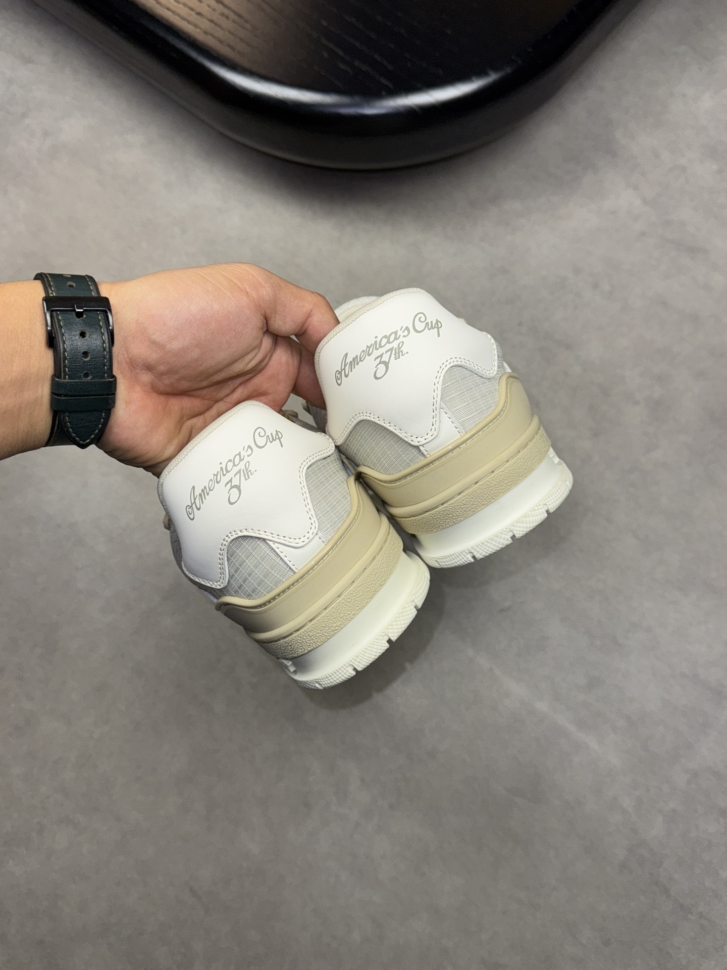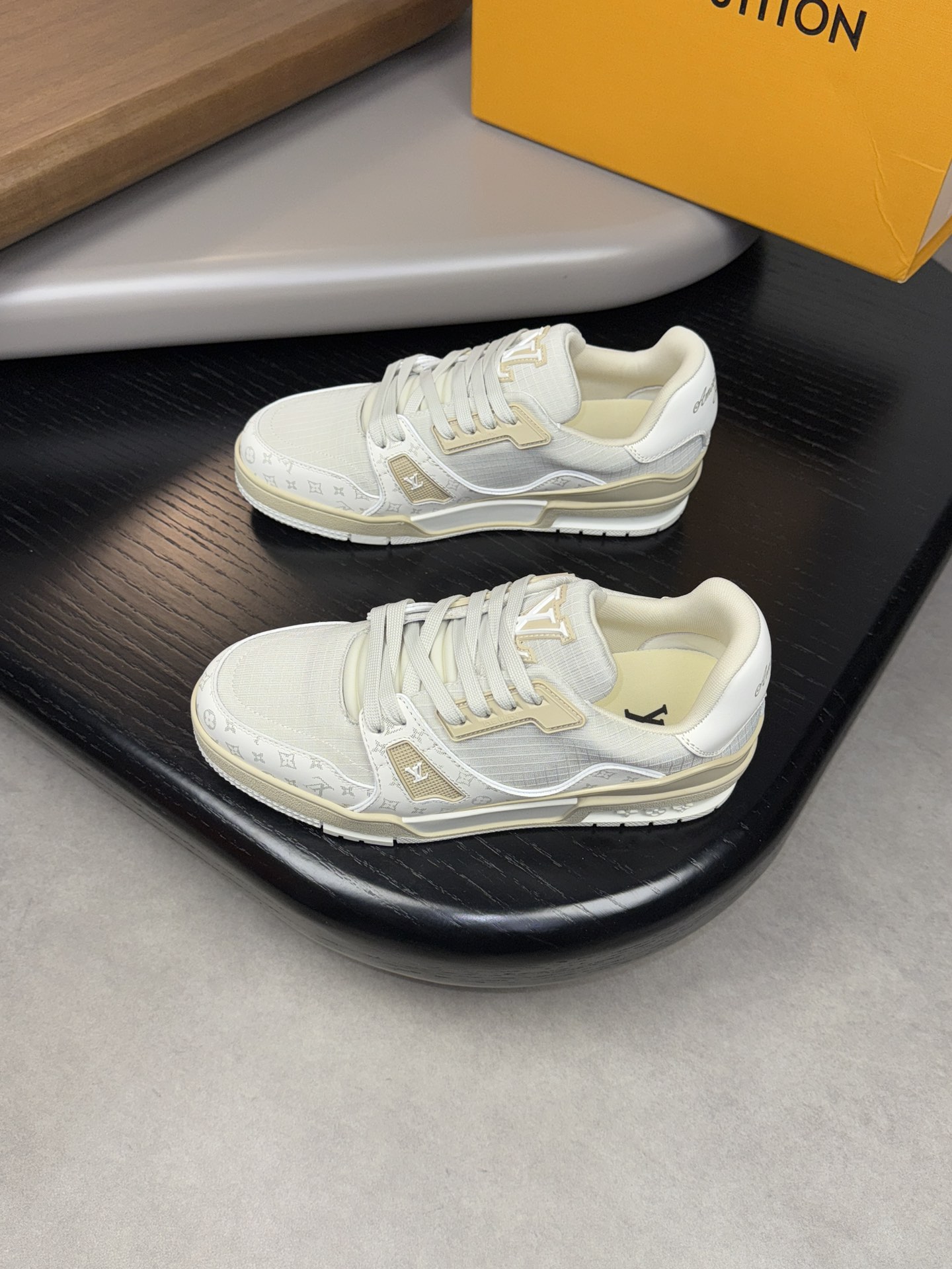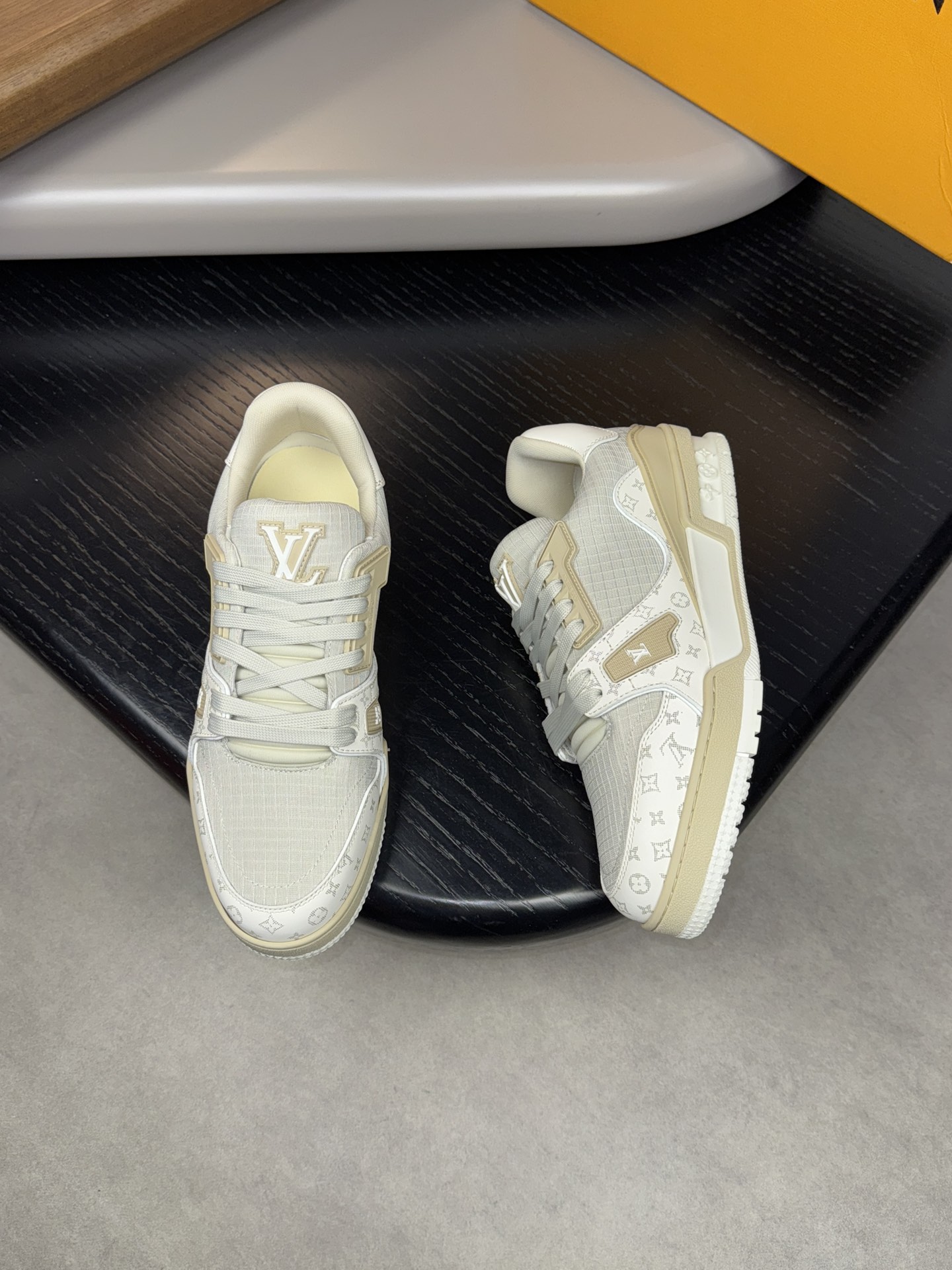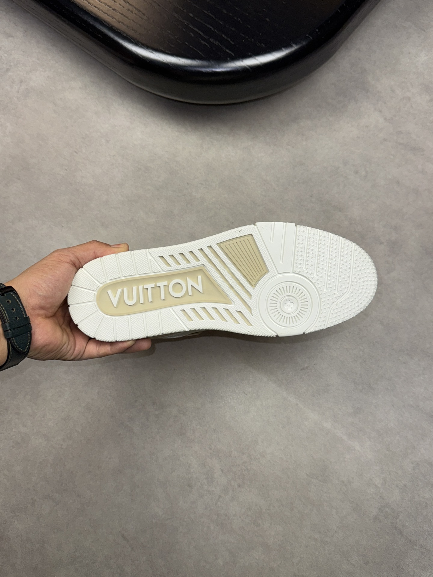 这款鞋子是AAAAA 1:1 质量 (非常棒). 使用了和原版一模一样的材料. 商标部分也保持了和路易威登/Louis Vuitton一样. 图片拍摄是实物鞋子拍摄, 您所收到的实物保证和我们图片一模一样.