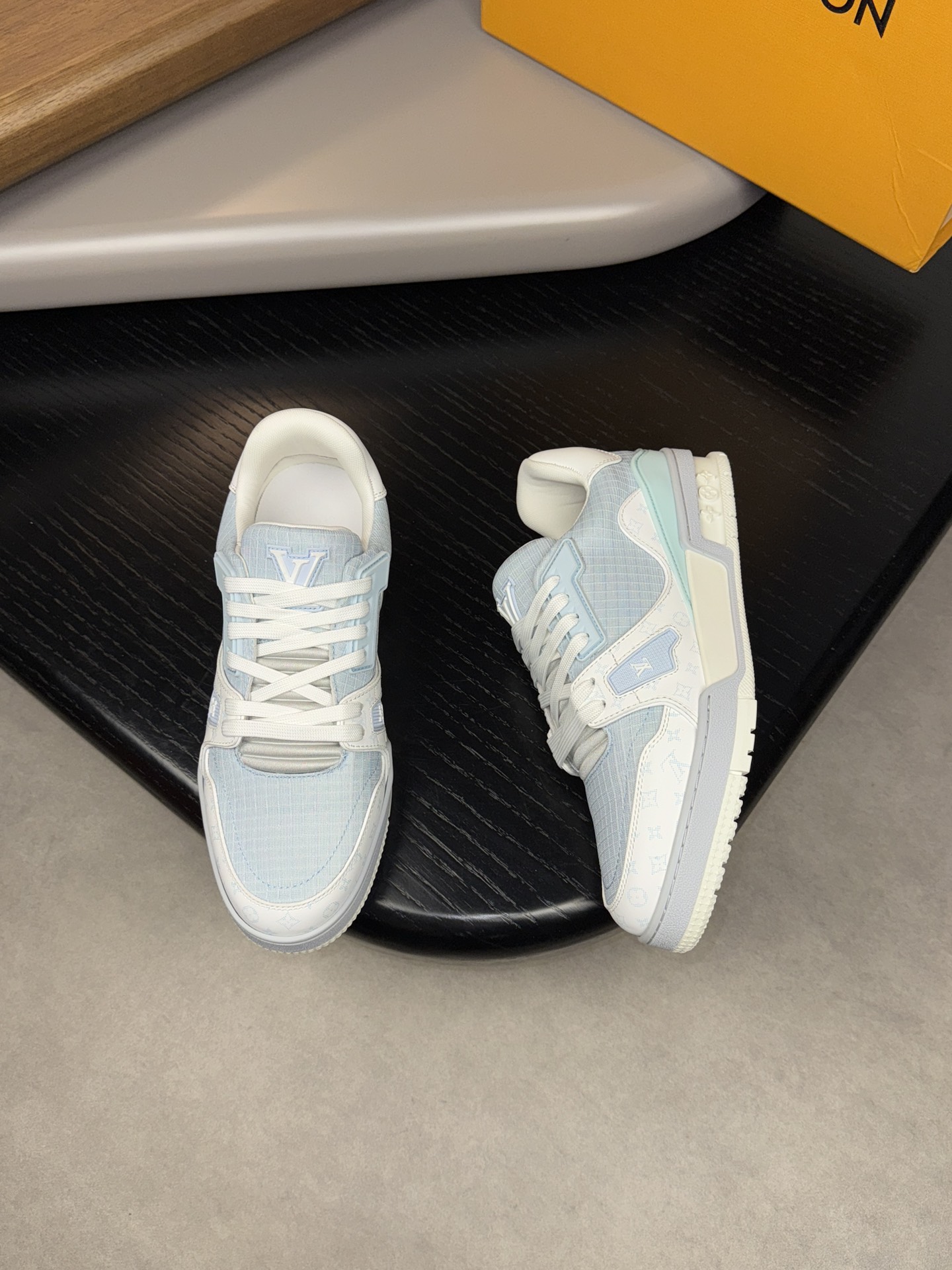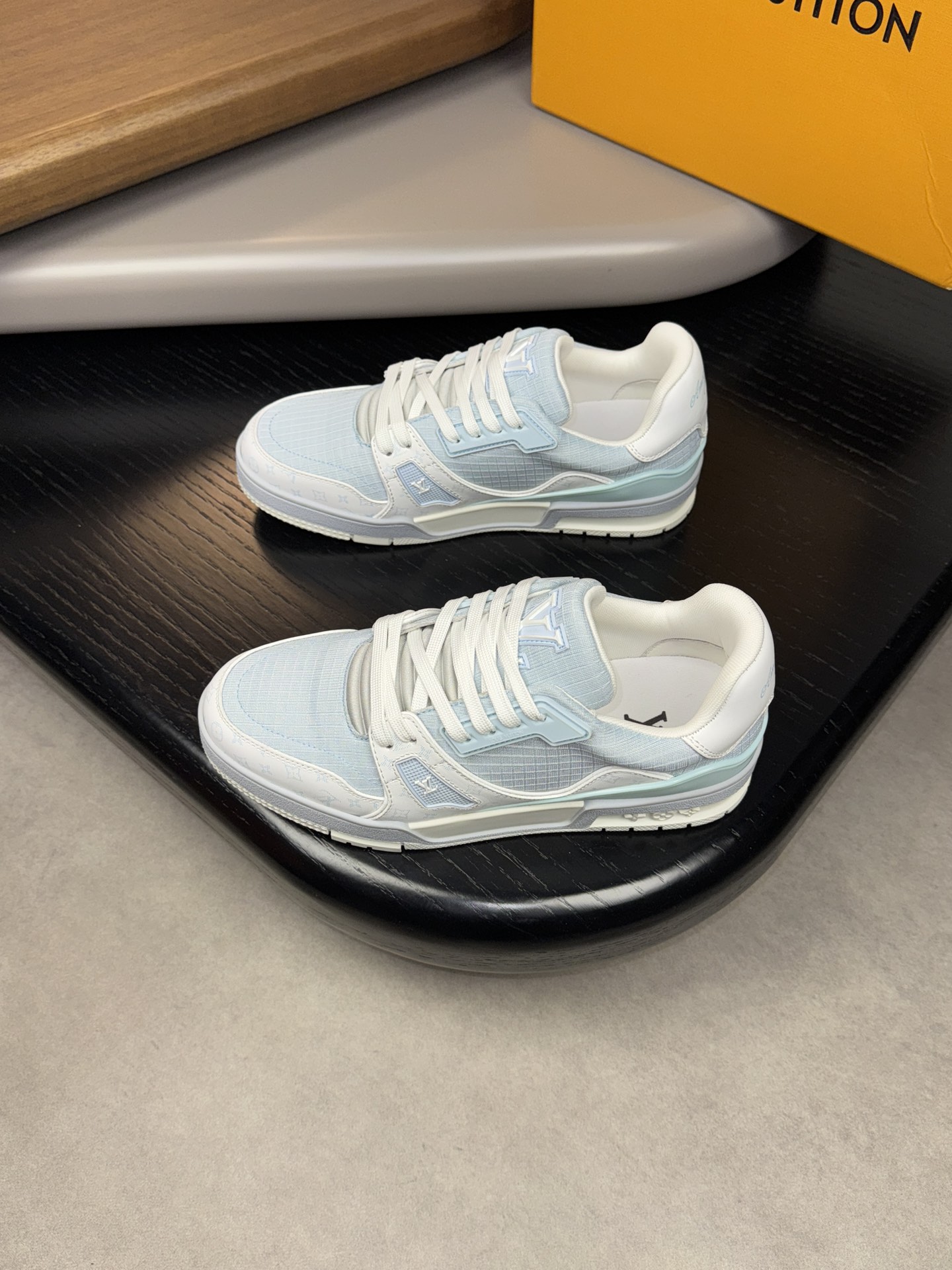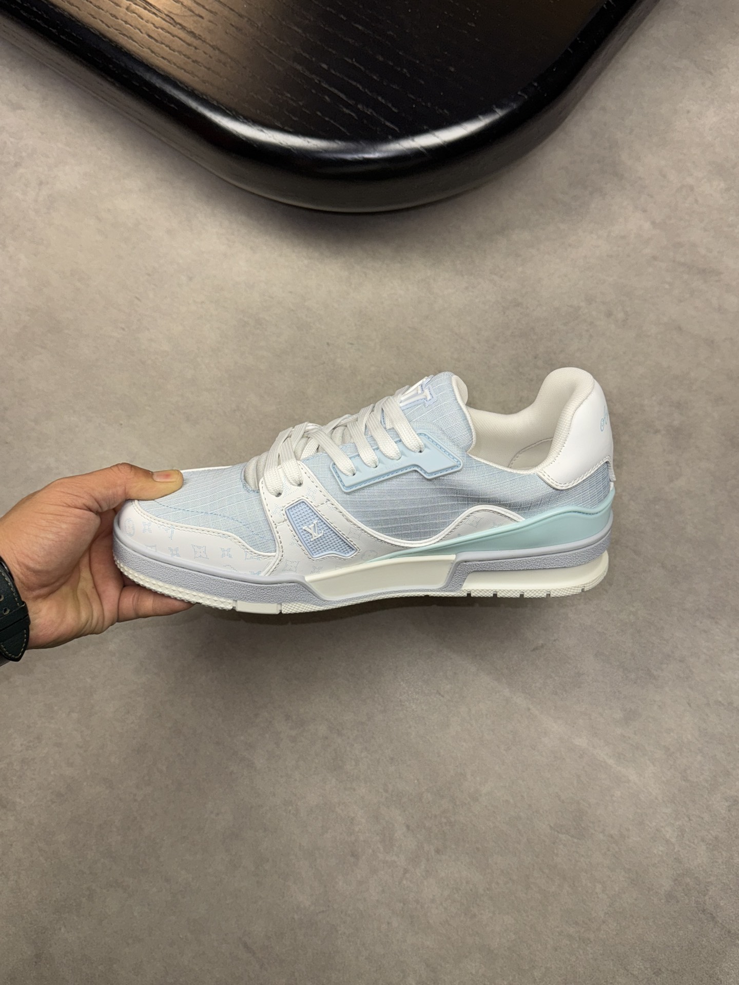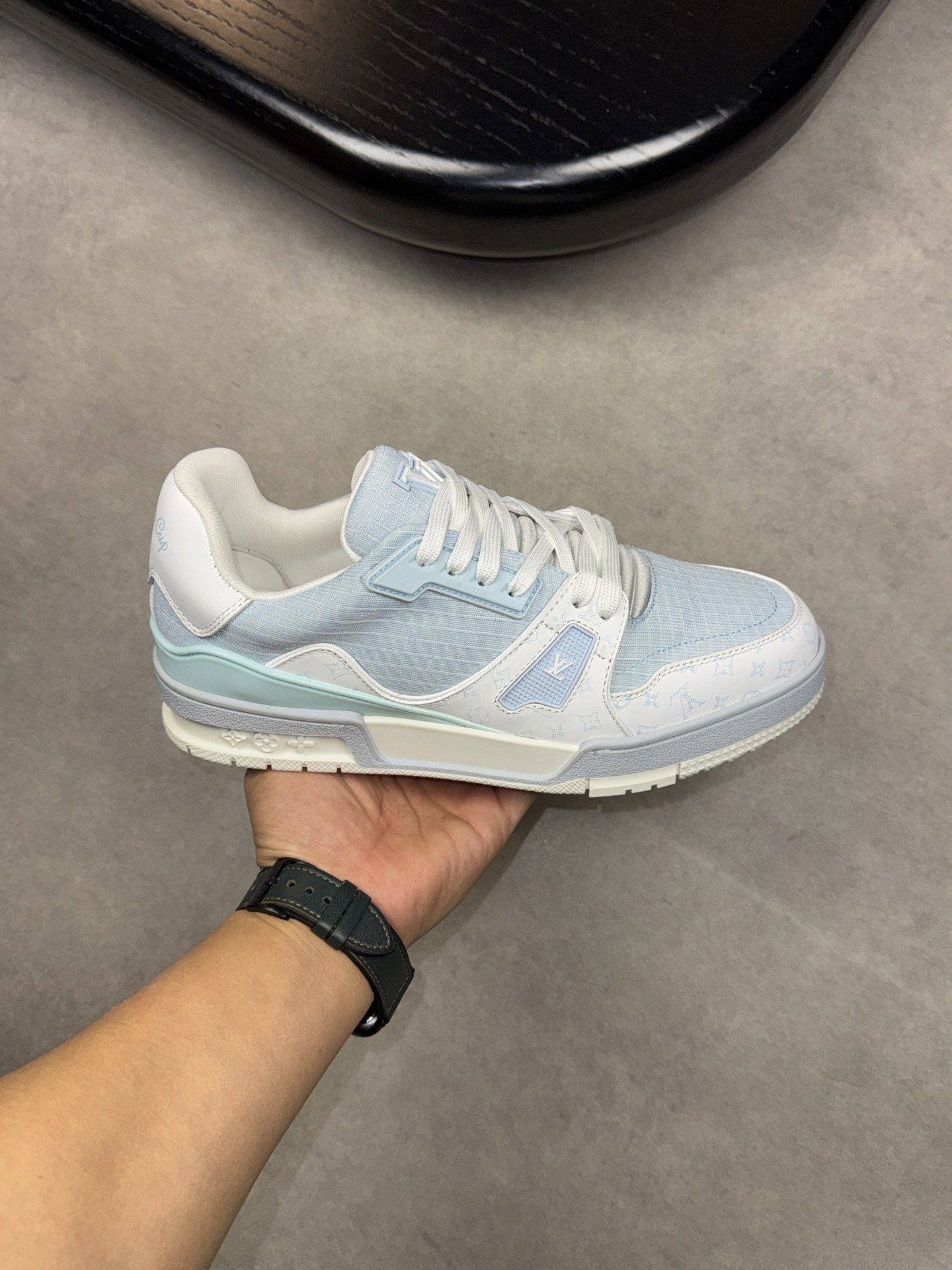 这款鞋子是AAAAA 1:1 质量 (非常棒). 使用了和原版一模一样的材料. 商标部分也保持了和路易威登/Louis Vuitton一样. 图片拍摄是实物鞋子拍摄, 您所收到的实物保证和我们图片一模一样.