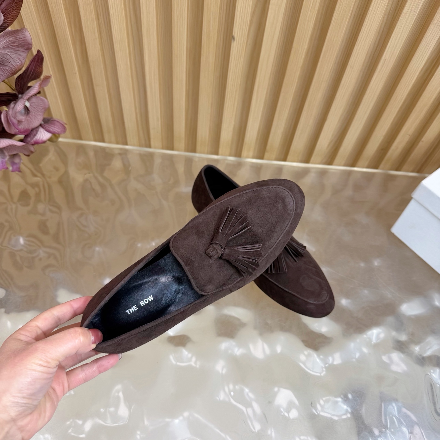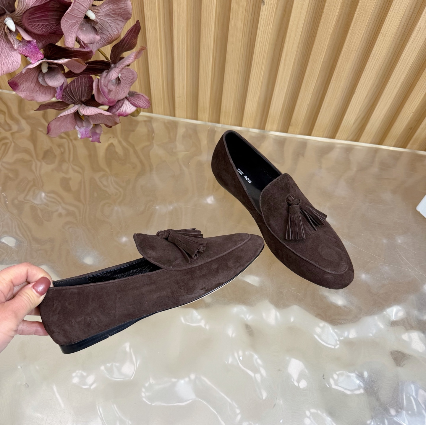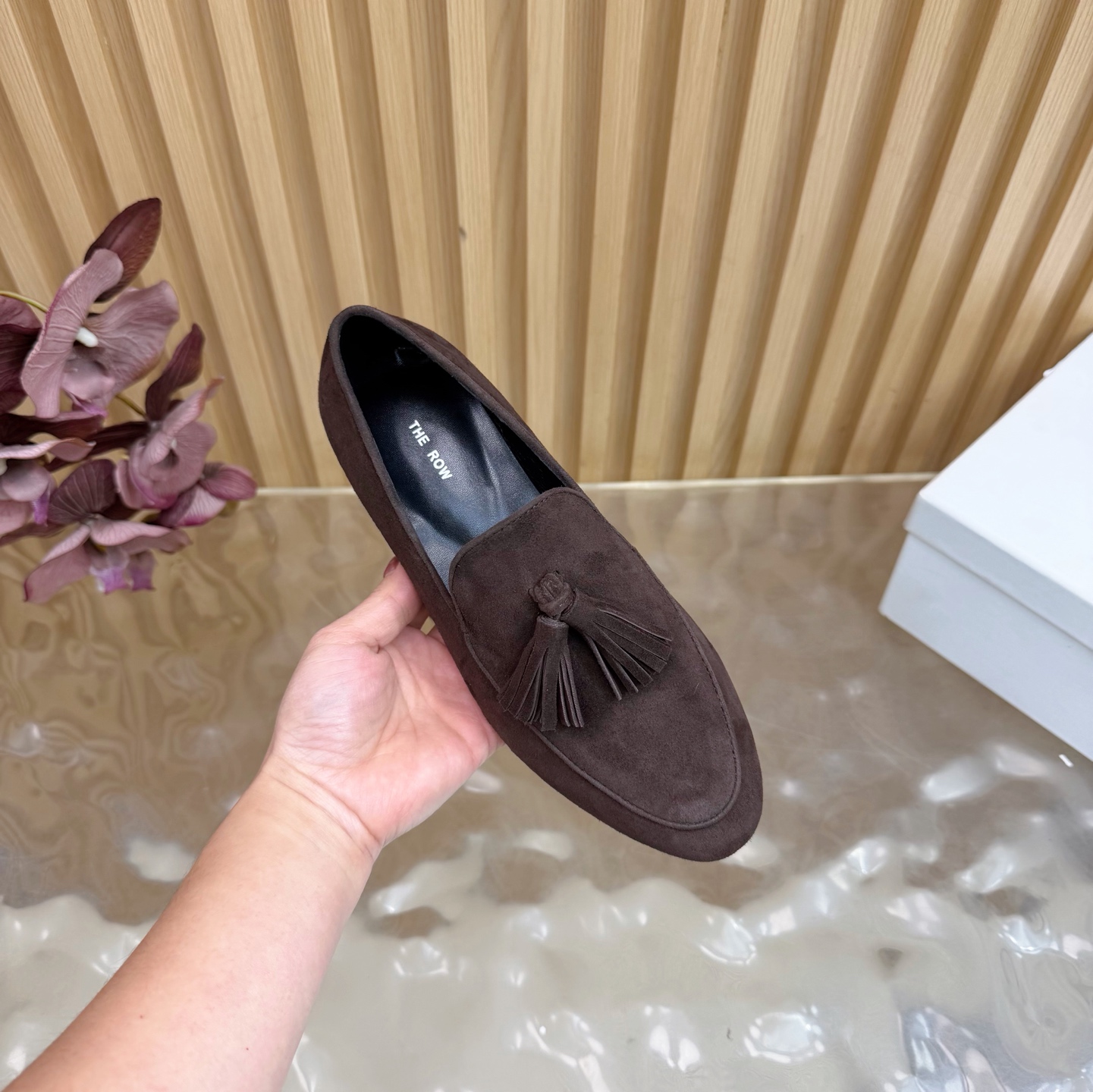 这款鞋子是AAAAA 1:1 质量 (非常棒). 使用了和原版一模一样的材料. 商标部分也保持了和The Row一样. 图片拍摄是实物鞋子拍摄, 您所收到的实物保证和我们图片一模一样.