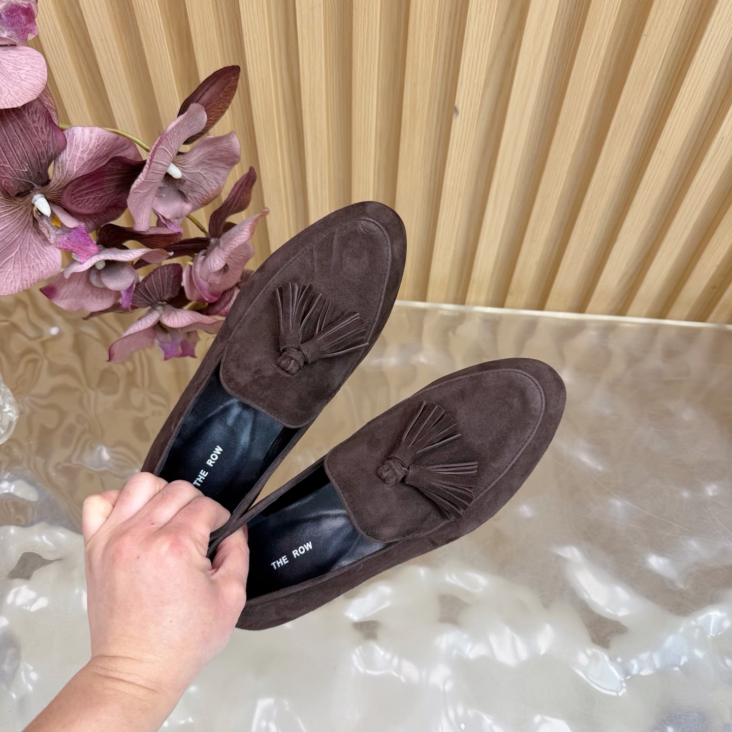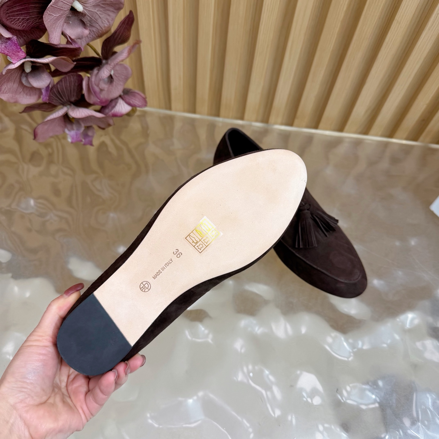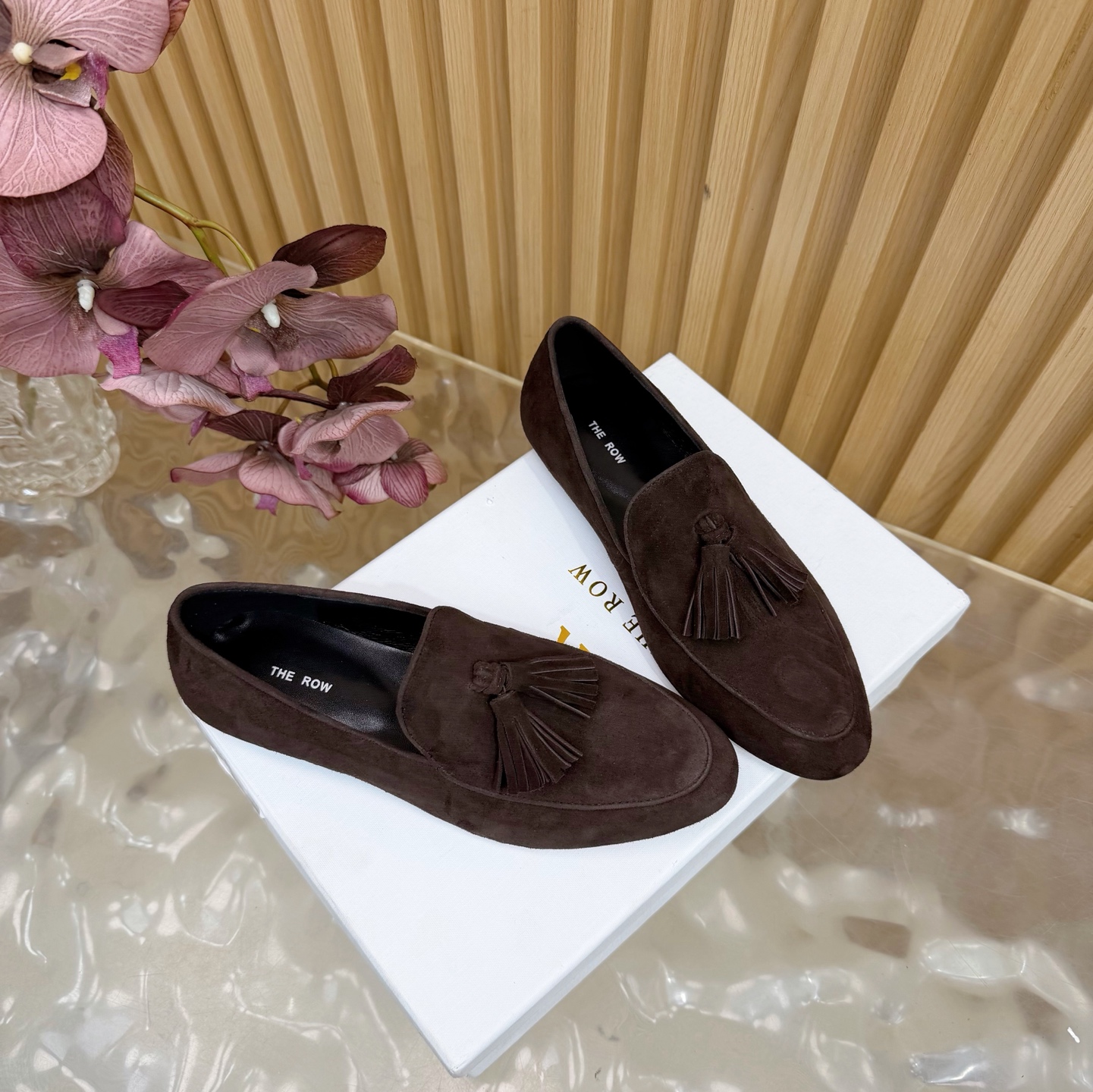 这款鞋子是AAAAA 1:1 质量 (非常棒). 使用了和原版一模一样的材料. 商标部分也保持了和The Row一样. 图片拍摄是实物鞋子拍摄, 您所收到的实物保证和我们图片一模一样.