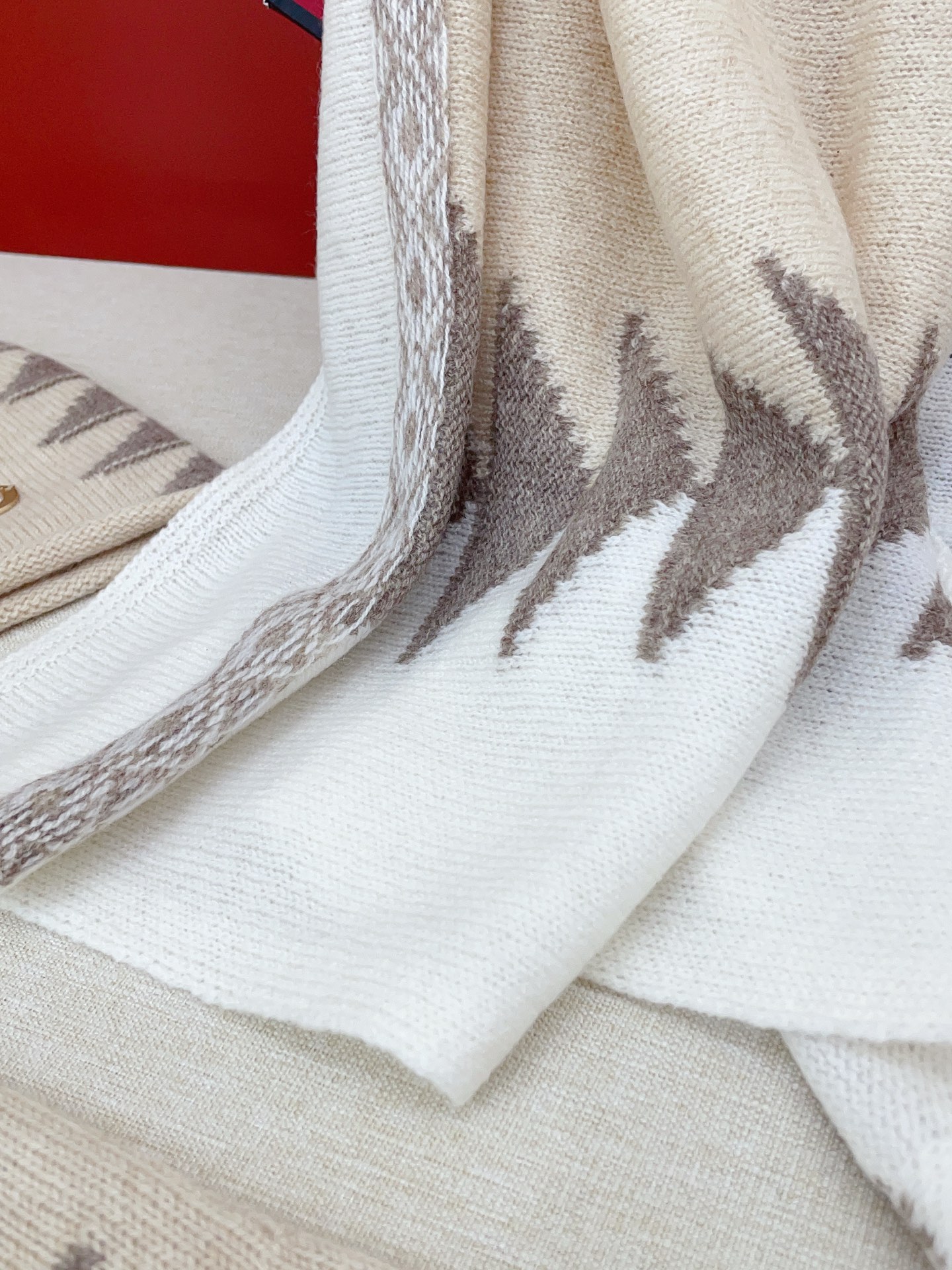 这款围巾是AAAAA 1:1 质量 (非常棒). 使用了和原版一模一样的材料. 商标部分也保持了和普拉达/Prada一样. 图片拍摄是实物围巾拍摄, 您所收到的实物保证和我们图片一模一样.