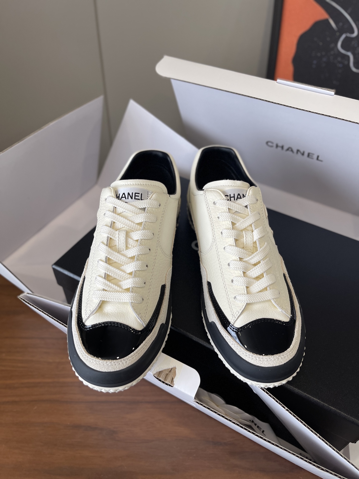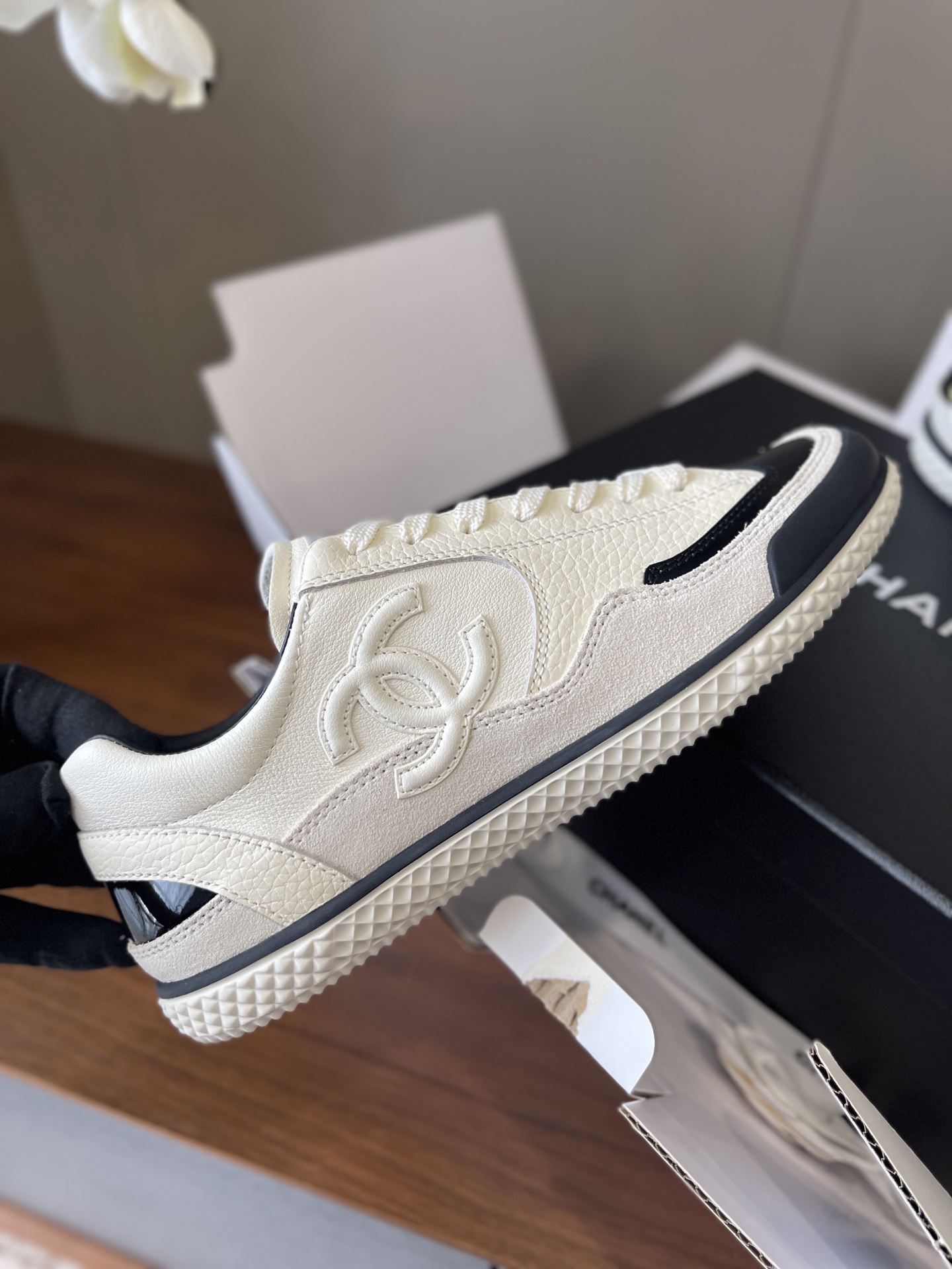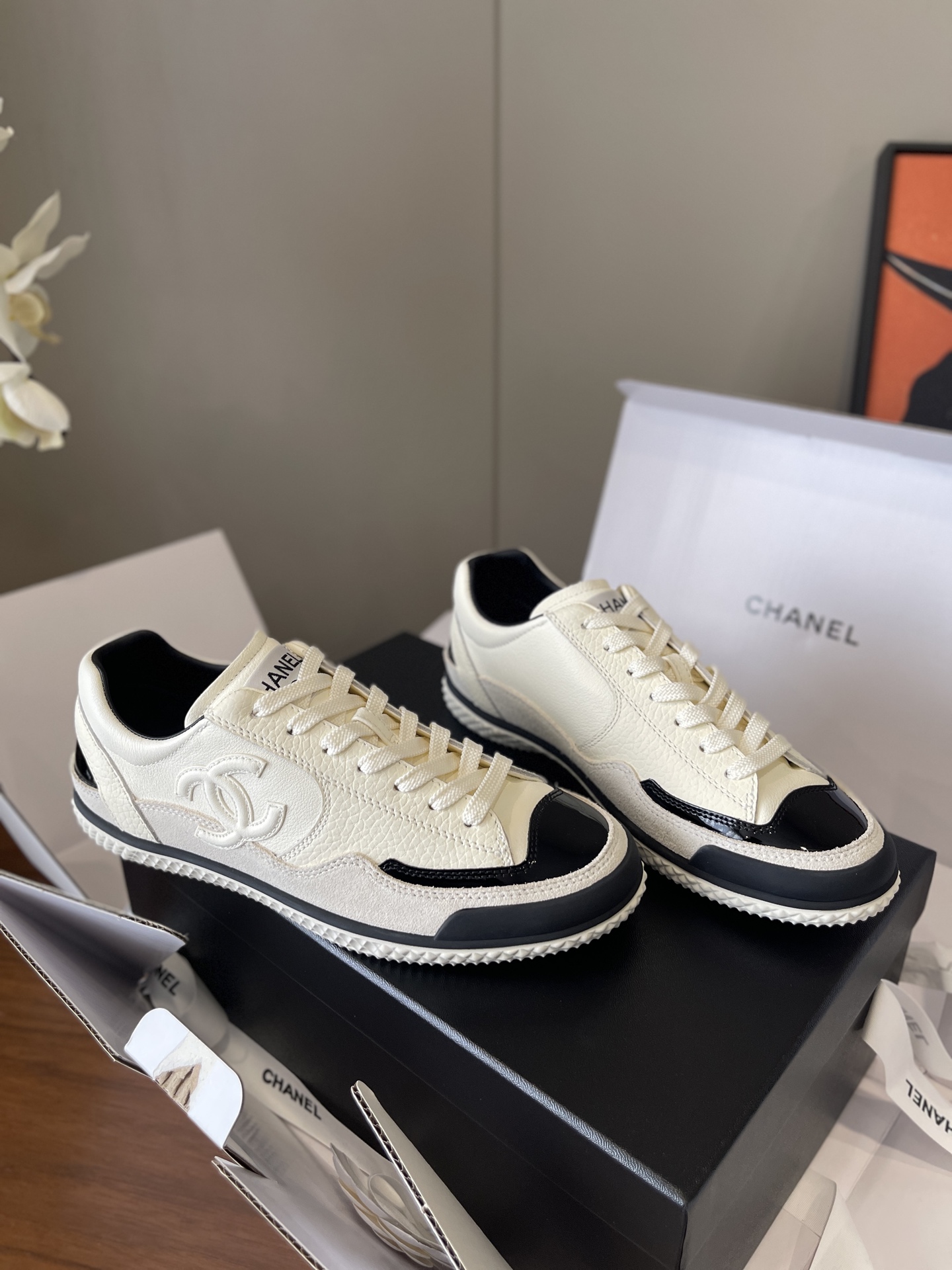这款鞋子是AAAAA 1:1 质量 (非常棒). 使用了和原版一模一样的材料. 商标部分也保持了和香奈儿/Chanel一样. 图片拍摄是实物鞋子拍摄, 您所收到的实物保证和我们图片一模一样.