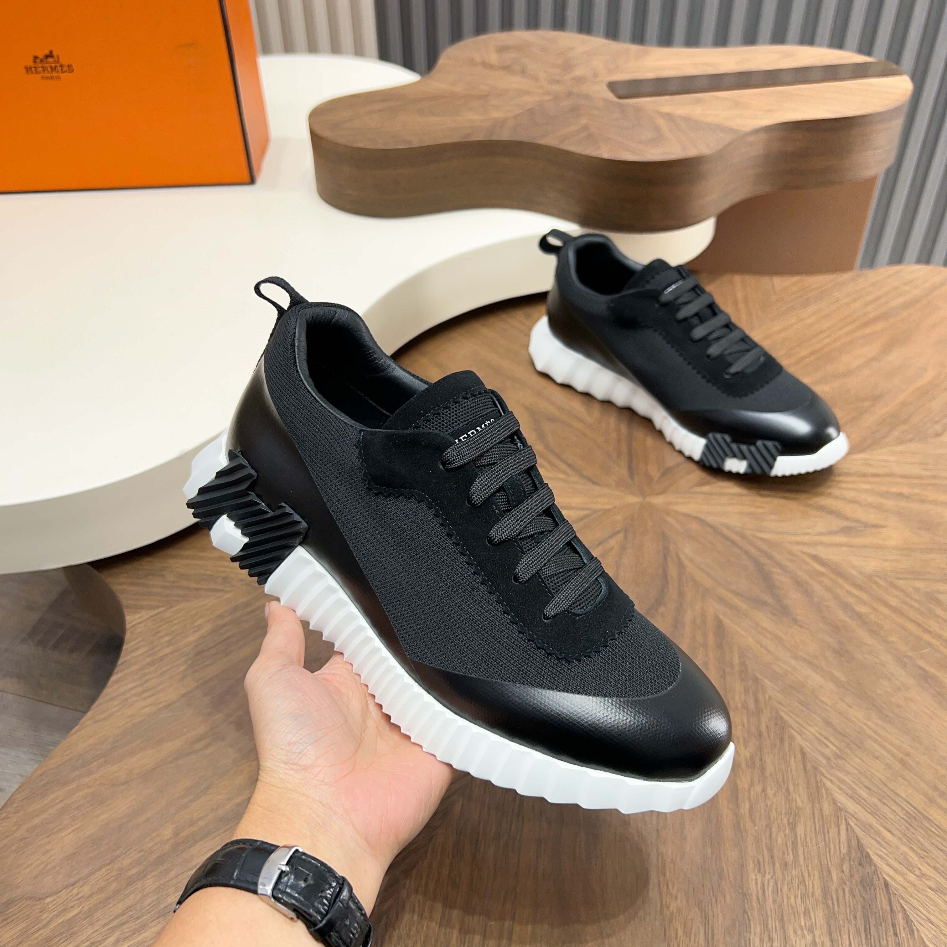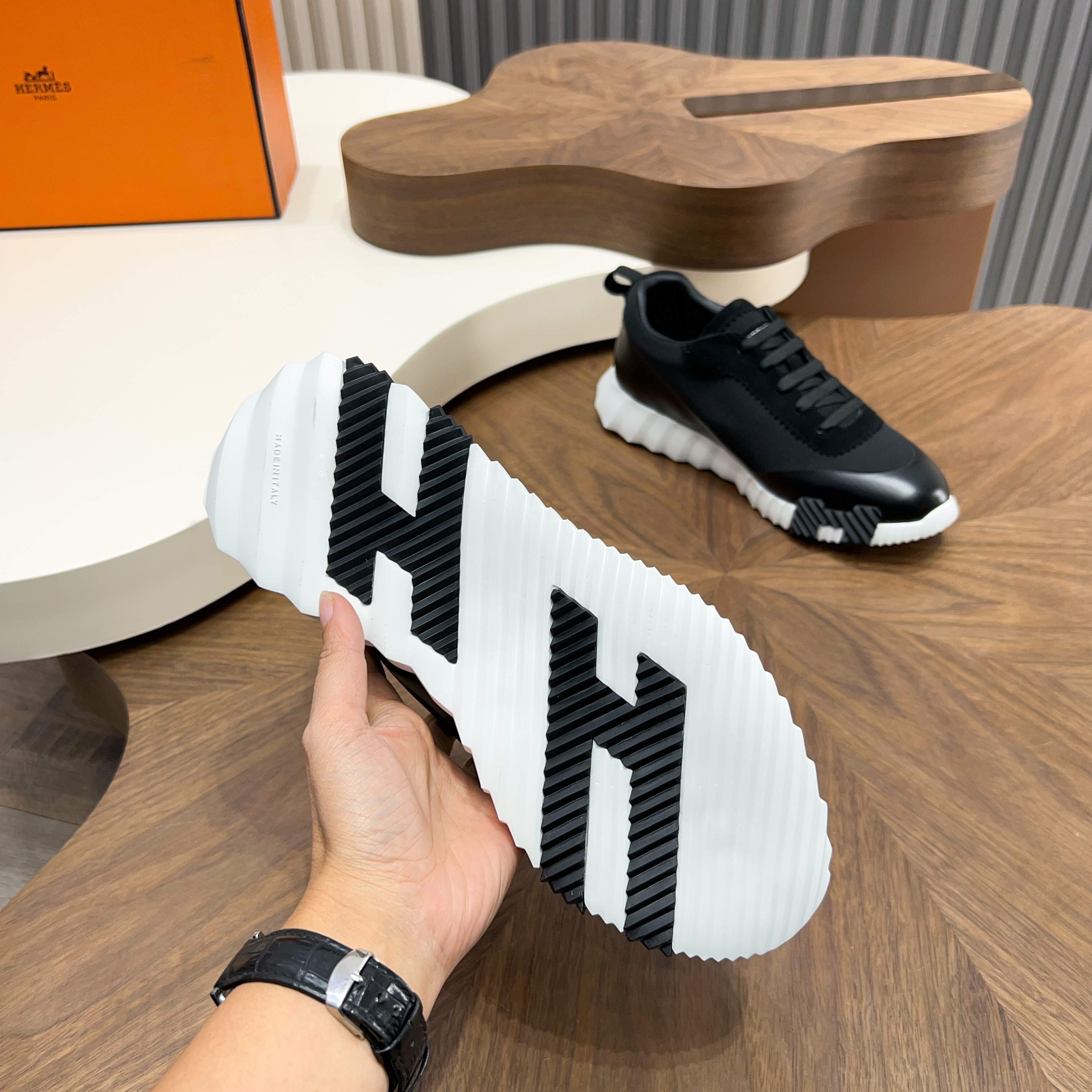 这款鞋子是AAAAA 1:1 质量 (非常棒). 使用了和原版一模一样的材料. 商标部分也保持了和爱马仕/Hermes一样. 图片拍摄是实物鞋子拍摄, 您所收到的实物保证和我们图片一模一样.