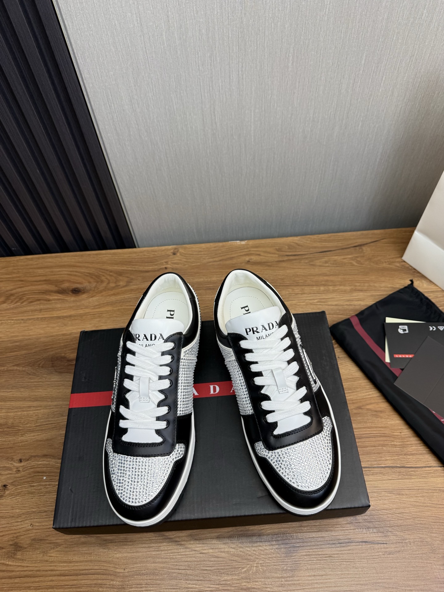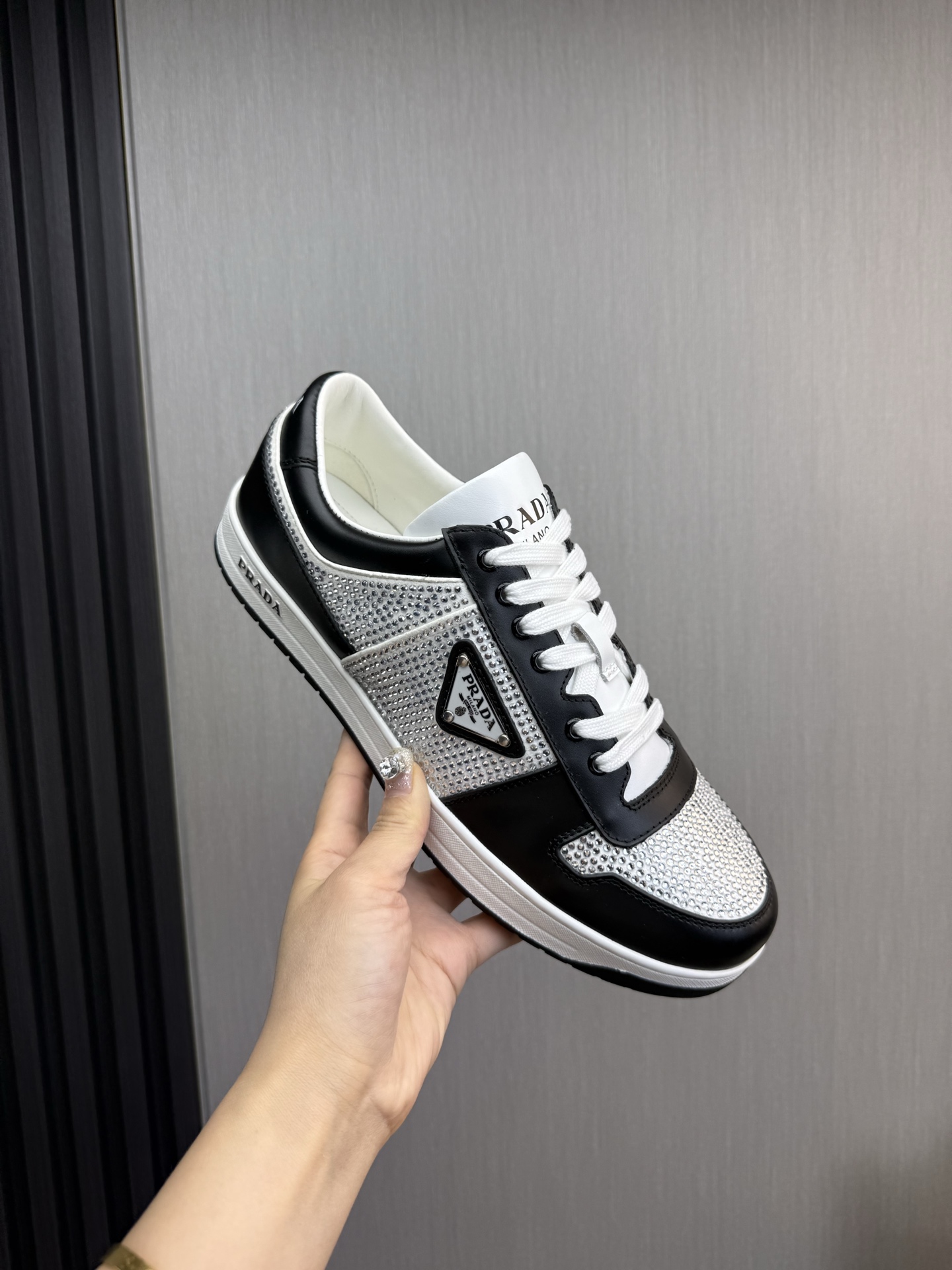 这款鞋子是AAAAA 1:1 质量 (非常棒). 使用了和原版一模一样的材料. 商标部分也保持了和普拉达/Prada一样. 图片拍摄是实物鞋子拍摄, 您所收到的实物保证和我们图片一模一样.