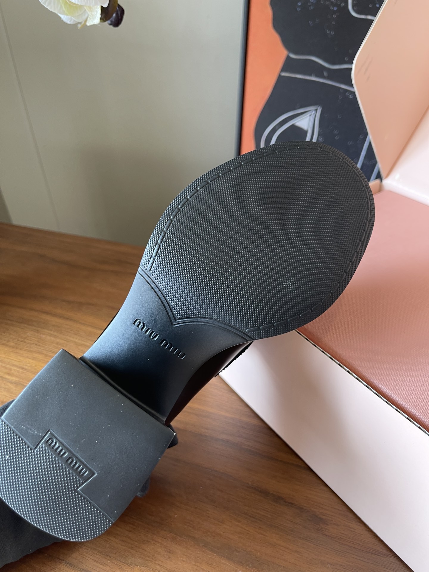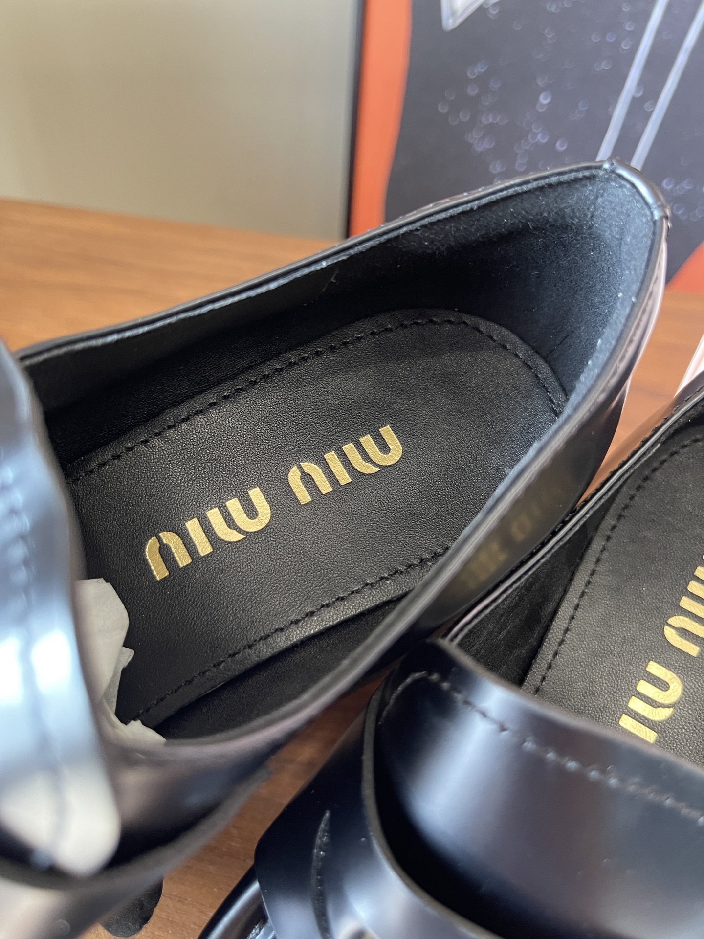这款鞋子是AAAAA 1:1 质量 (非常棒). 使用了和原版一模一样的材料. 商标部分也保持了和缪缪/Miu Miu一样. 图片拍摄是实物鞋子拍摄, 您所收到的实物保证和我们图片一模一样.
