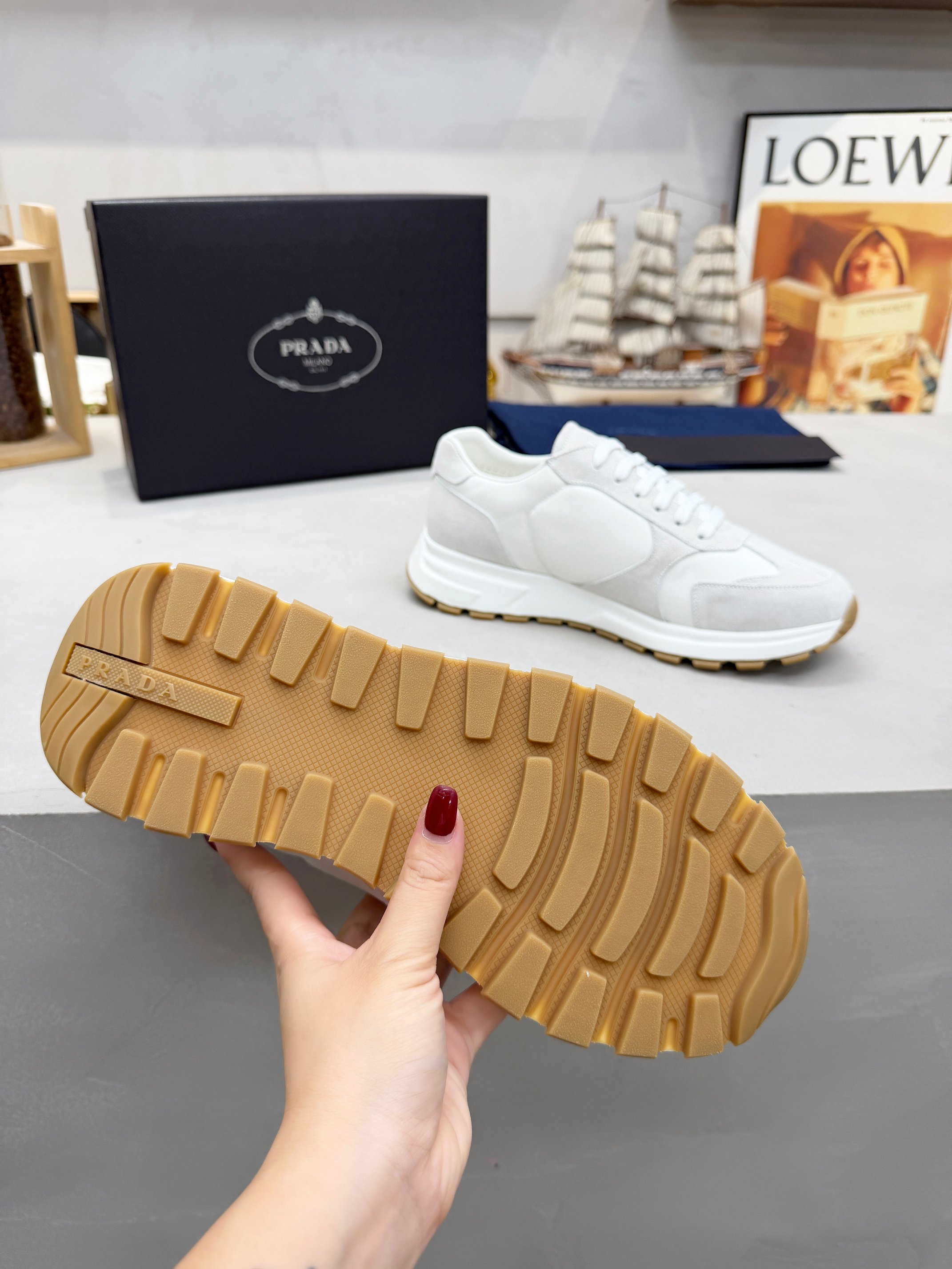这款鞋子是AAAAA 1:1 质量 (非常棒). 使用了和原版一模一样的材料. 商标部分也保持了和普拉达/Prada一样. 图片拍摄是实物鞋子拍摄, 您所收到的实物保证和我们图片一模一样.