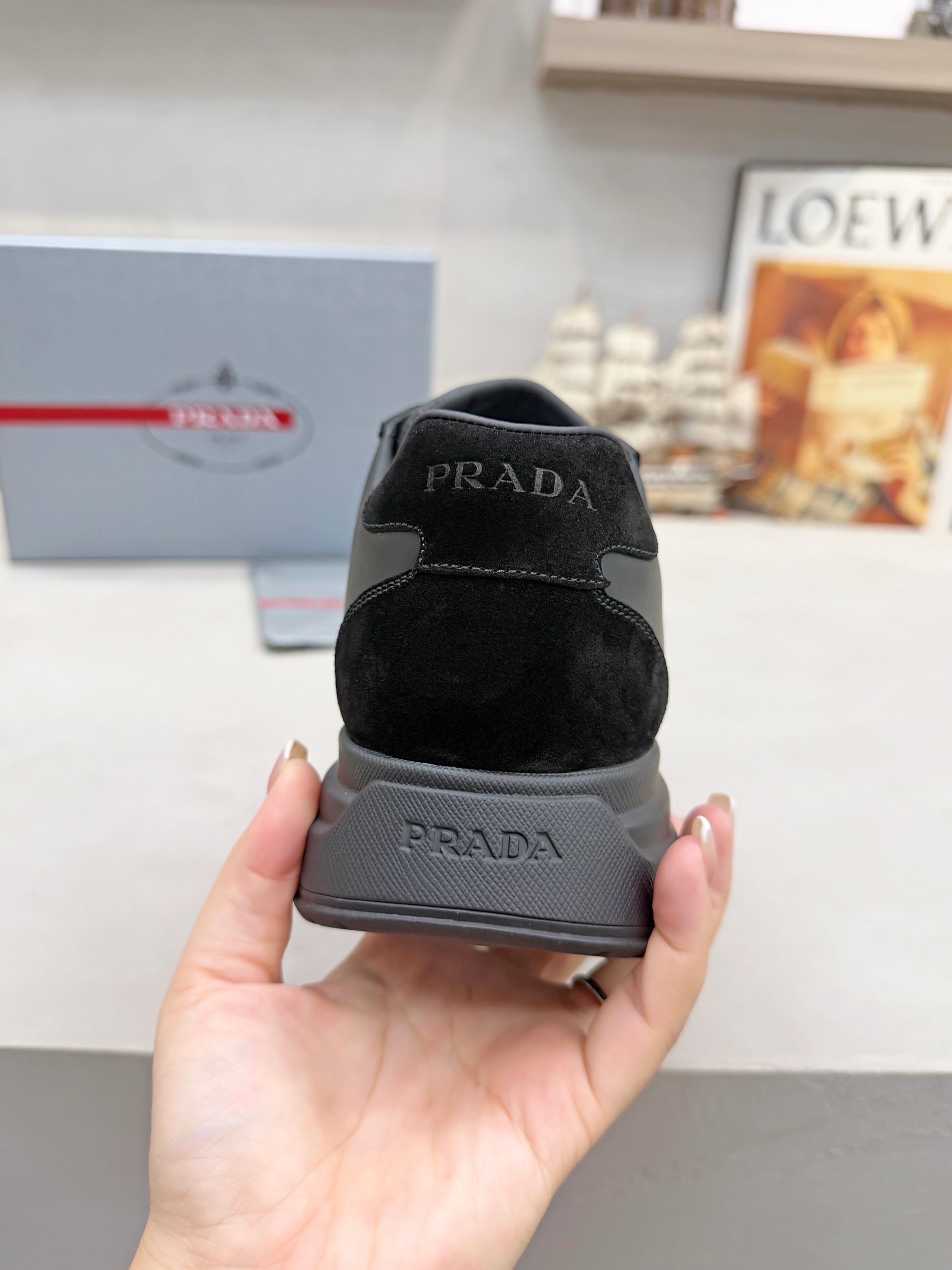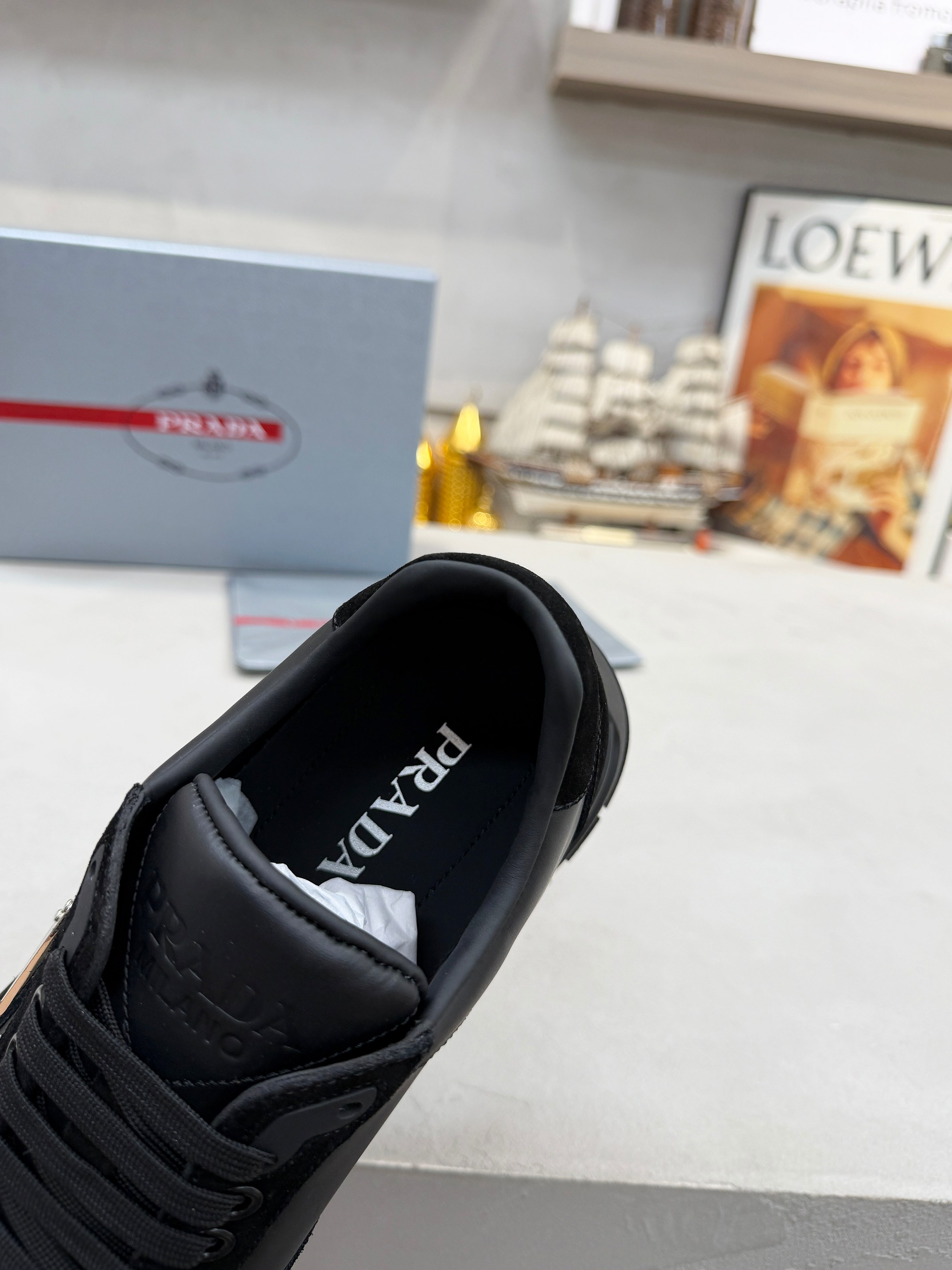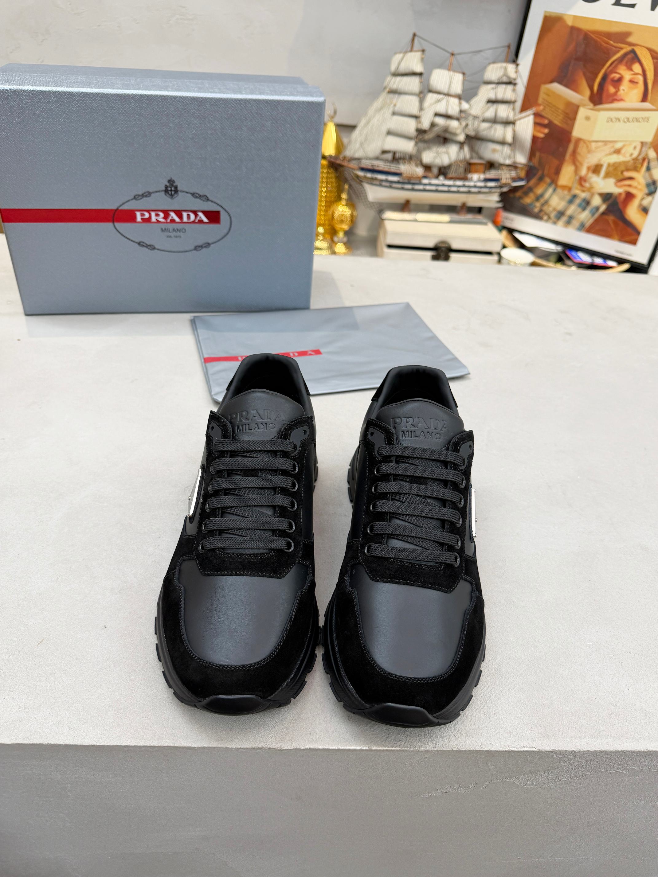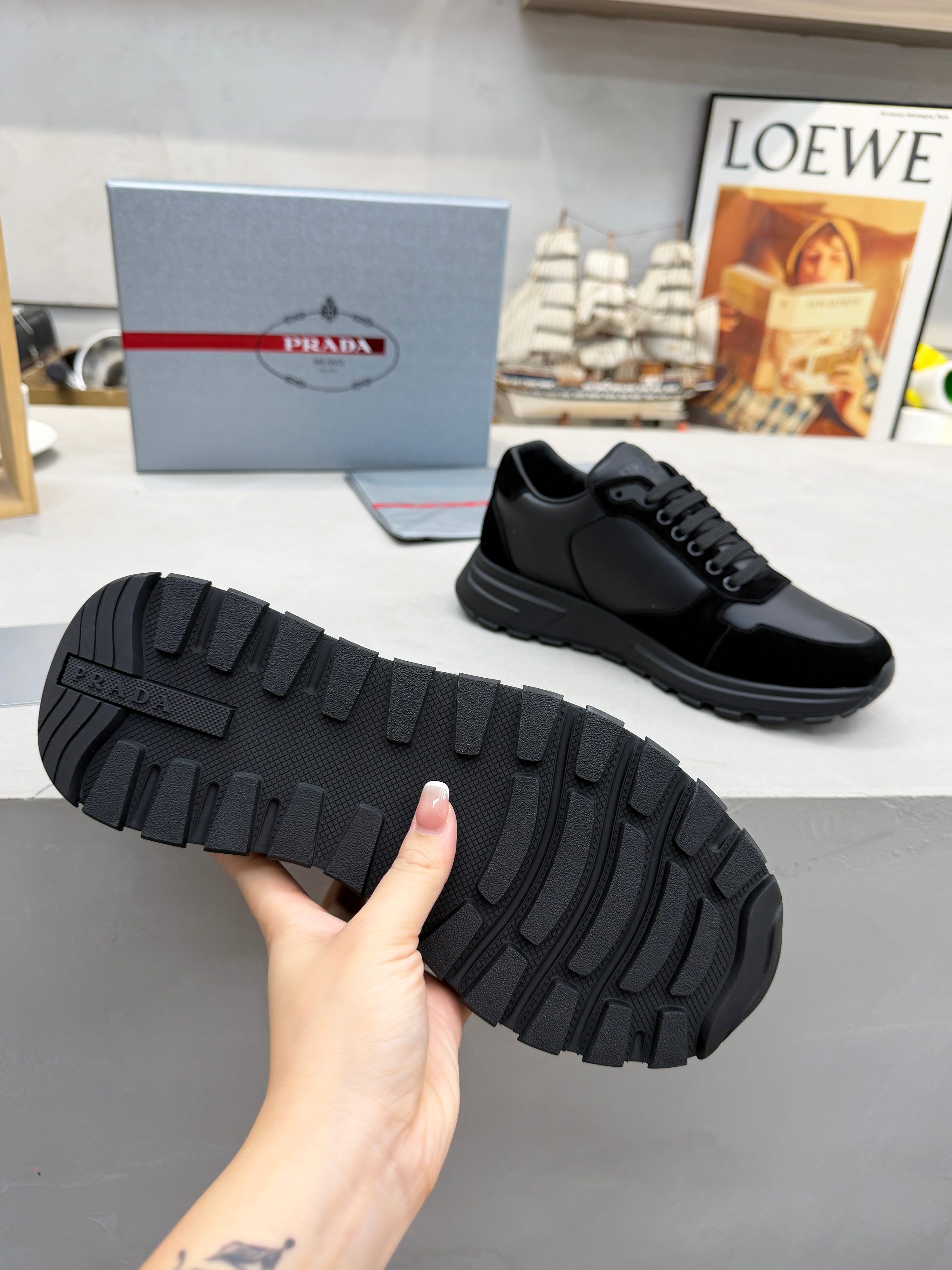 这款鞋子是AAAAA 1:1 质量 (非常棒). 使用了和原版一模一样的材料. 商标部分也保持了和普拉达/Prada一样. 图片拍摄是实物鞋子拍摄, 您所收到的实物保证和我们图片一模一样.