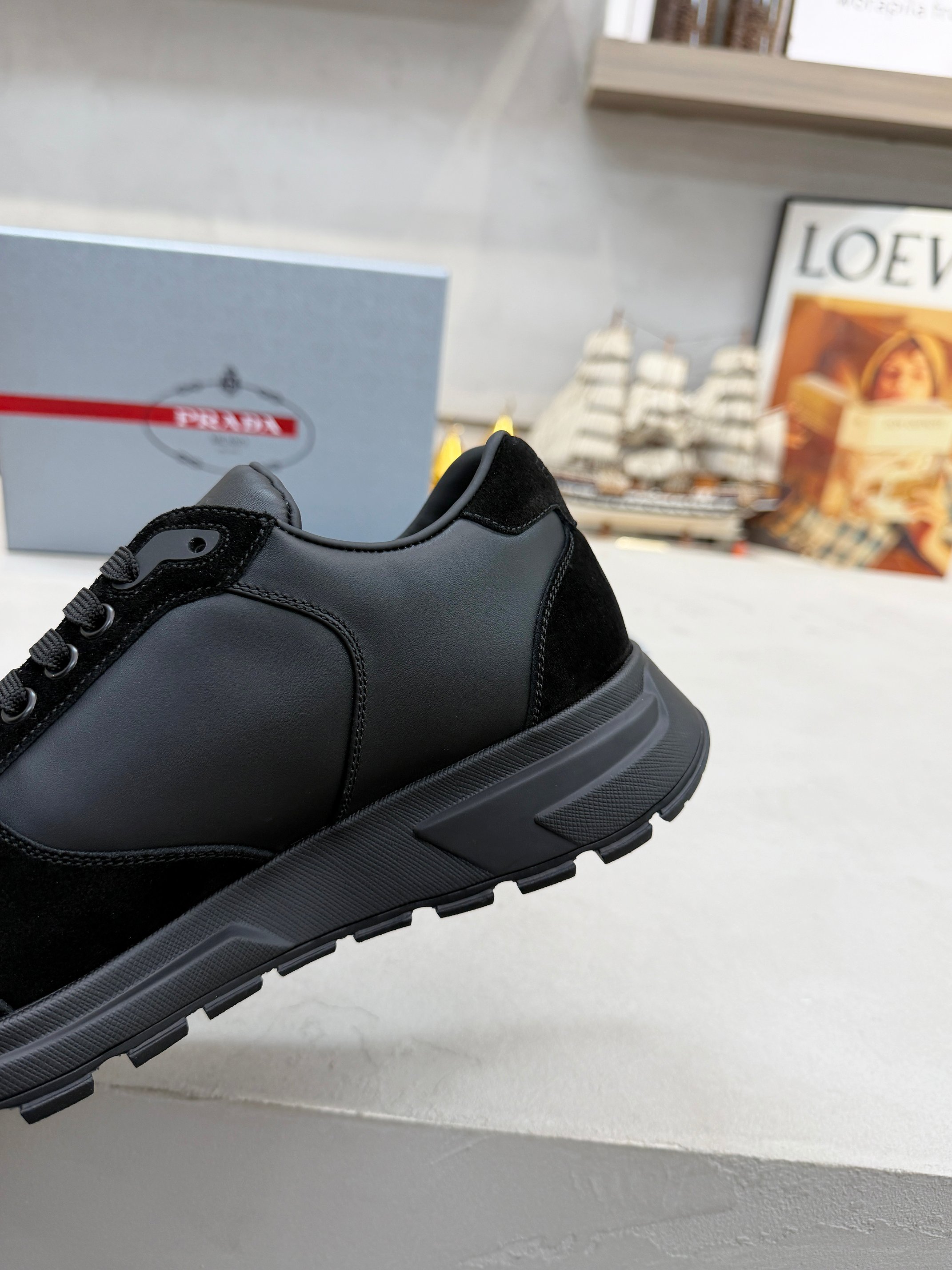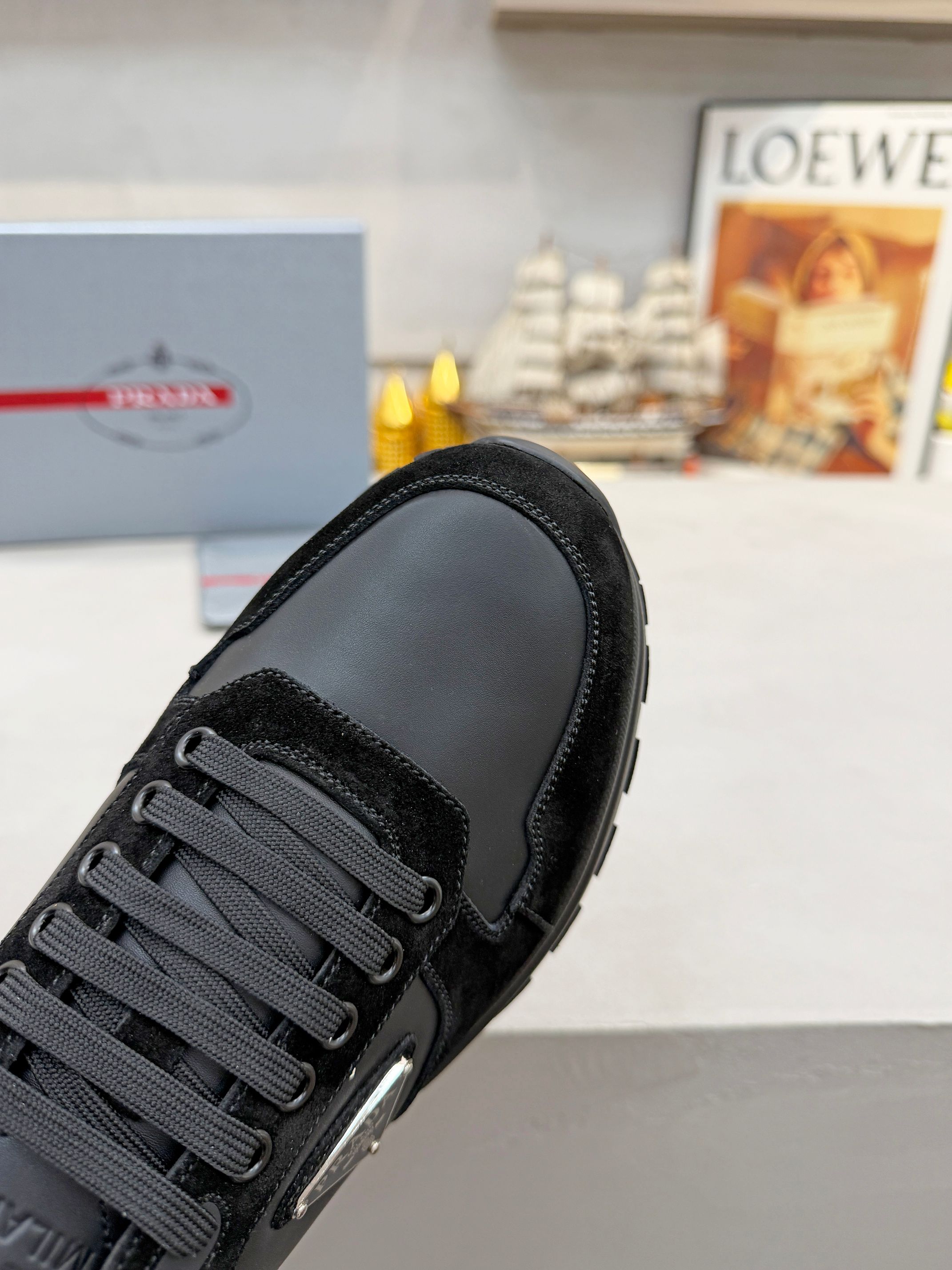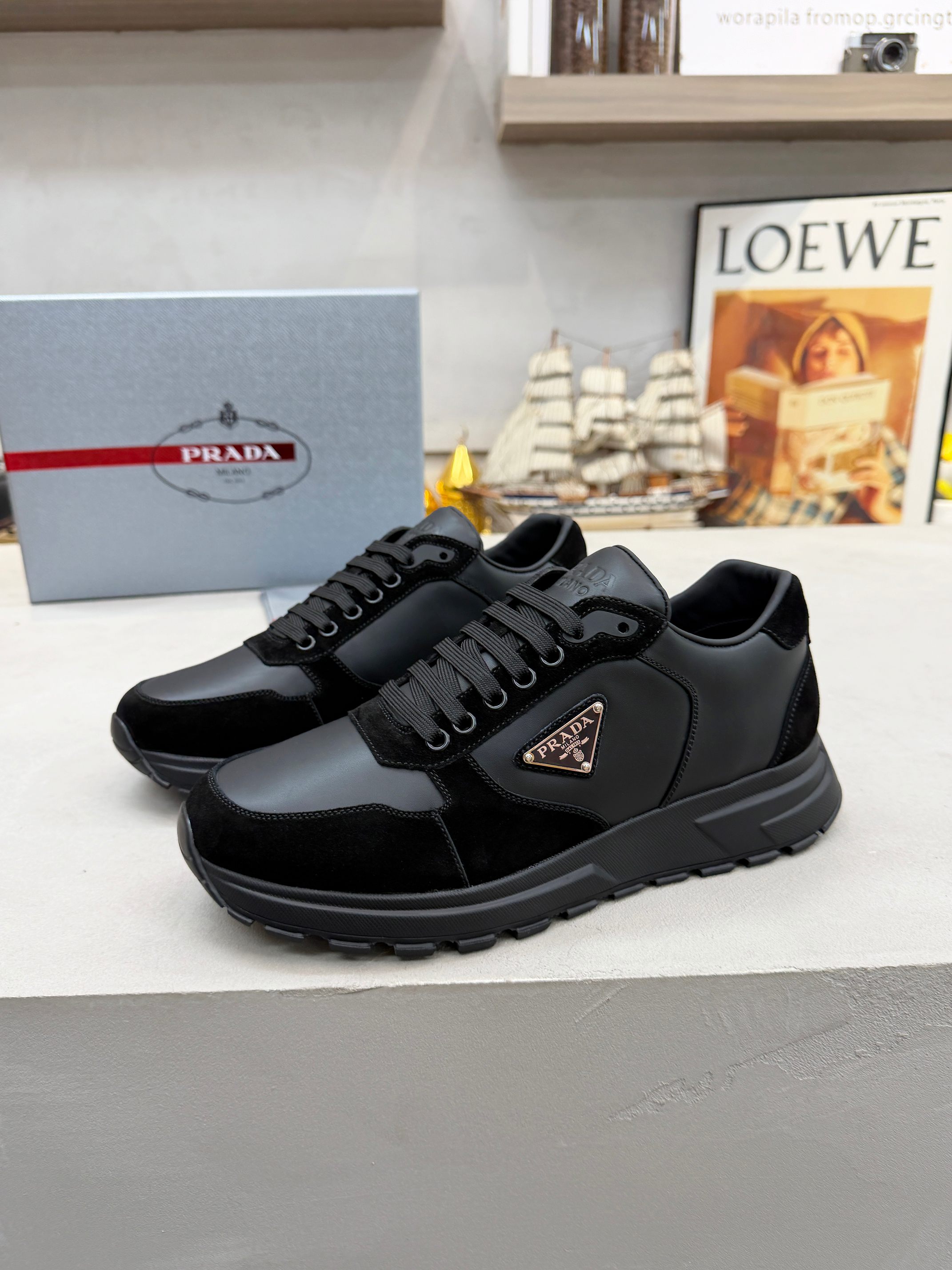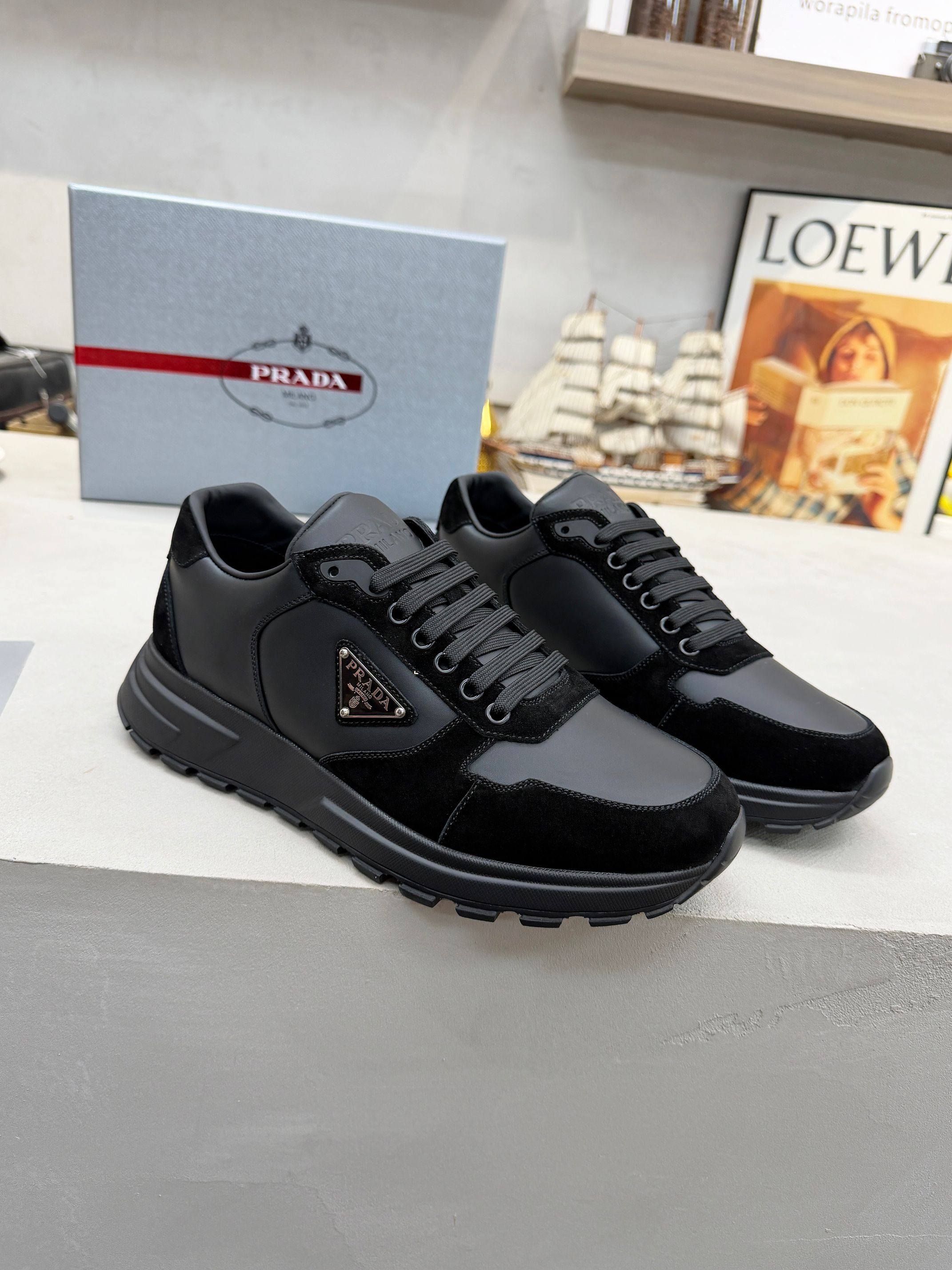 这款鞋子是AAAAA 1:1 质量 (非常棒). 使用了和原版一模一样的材料. 商标部分也保持了和普拉达/Prada一样. 图片拍摄是实物鞋子拍摄, 您所收到的实物保证和我们图片一模一样.