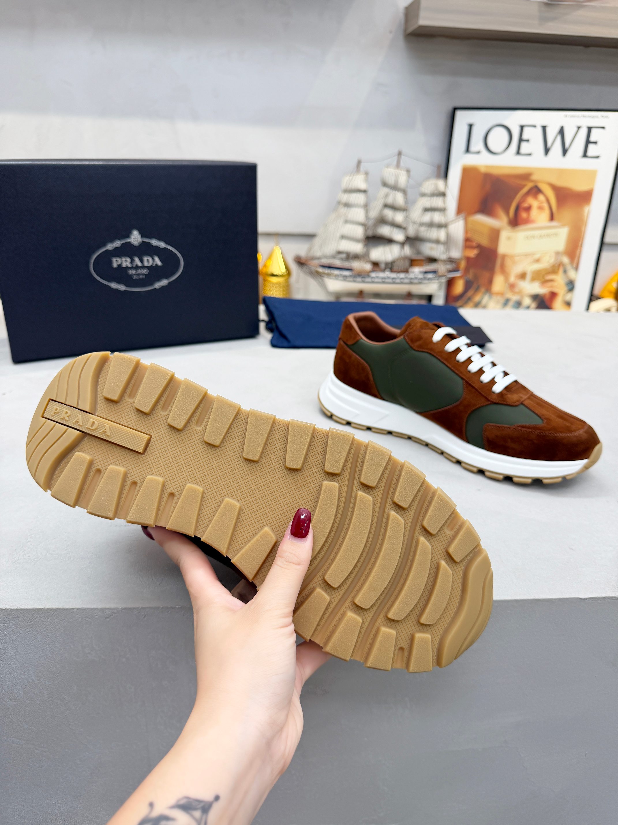 这款鞋子是AAAAA 1:1 质量 (非常棒). 使用了和原版一模一样的材料. 商标部分也保持了和普拉达/Prada一样. 图片拍摄是实物鞋子拍摄, 您所收到的实物保证和我们图片一模一样.