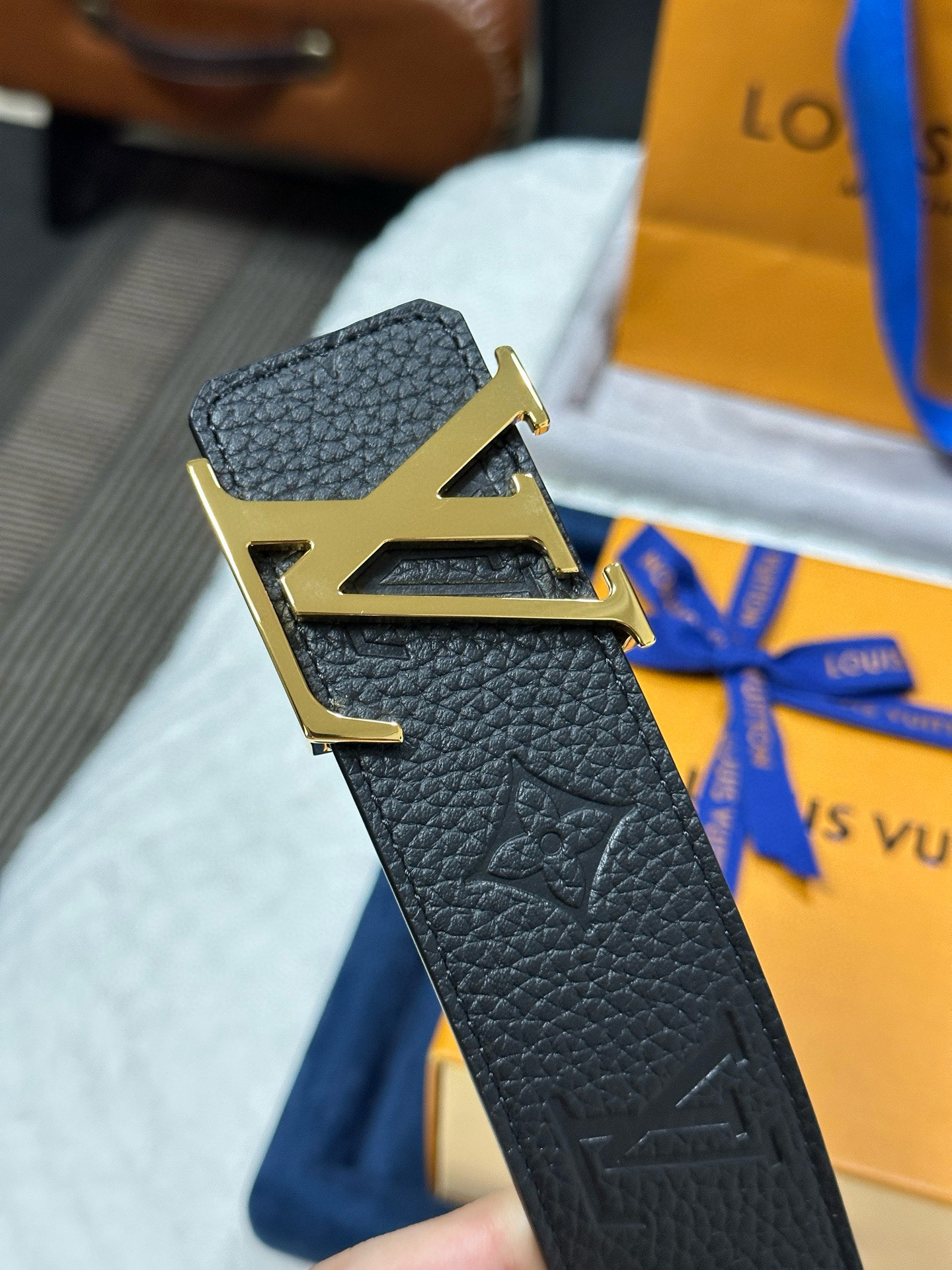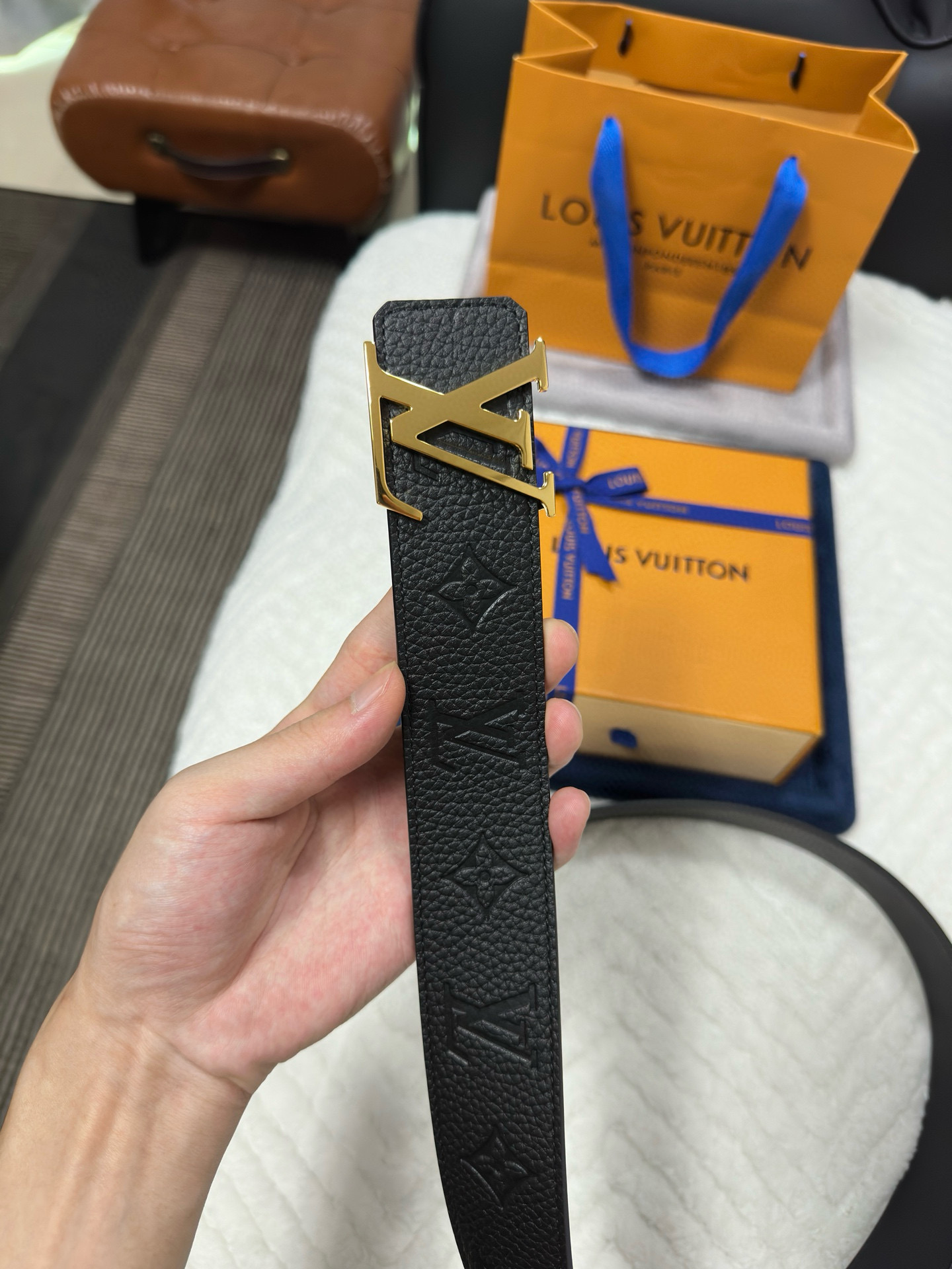 这款皮带是AAAAA 1:1 质量 (非常棒). 使用了和原版一模一样的材料. 商标部分也保持了和路易威登/Louis Vuitton一样. 图片拍摄是实物皮带拍摄, 您所收到的实物保证和我们图片一模一样.