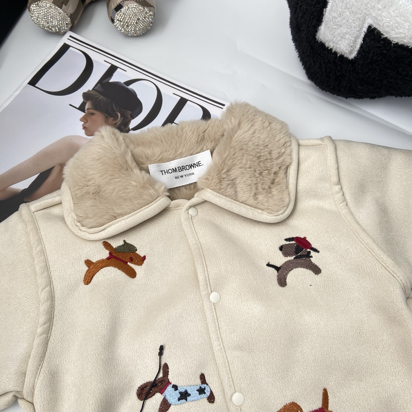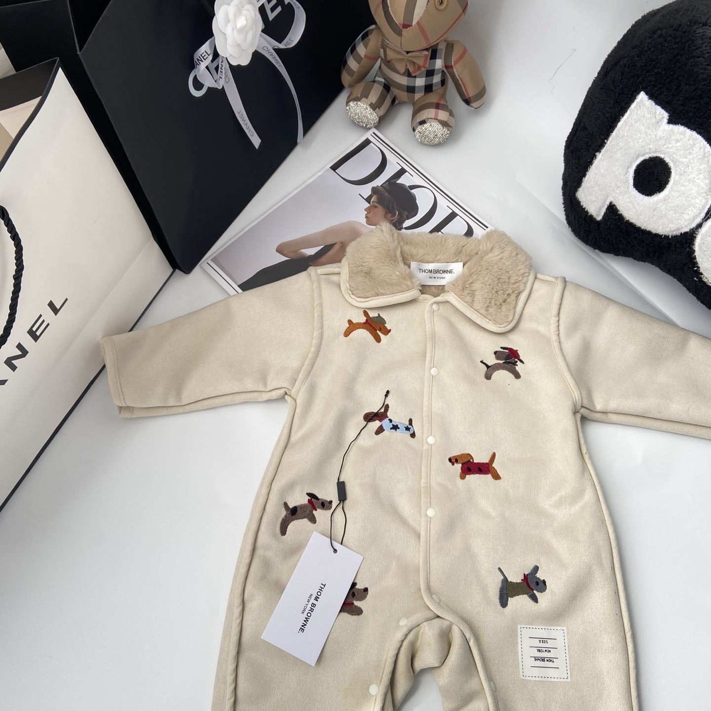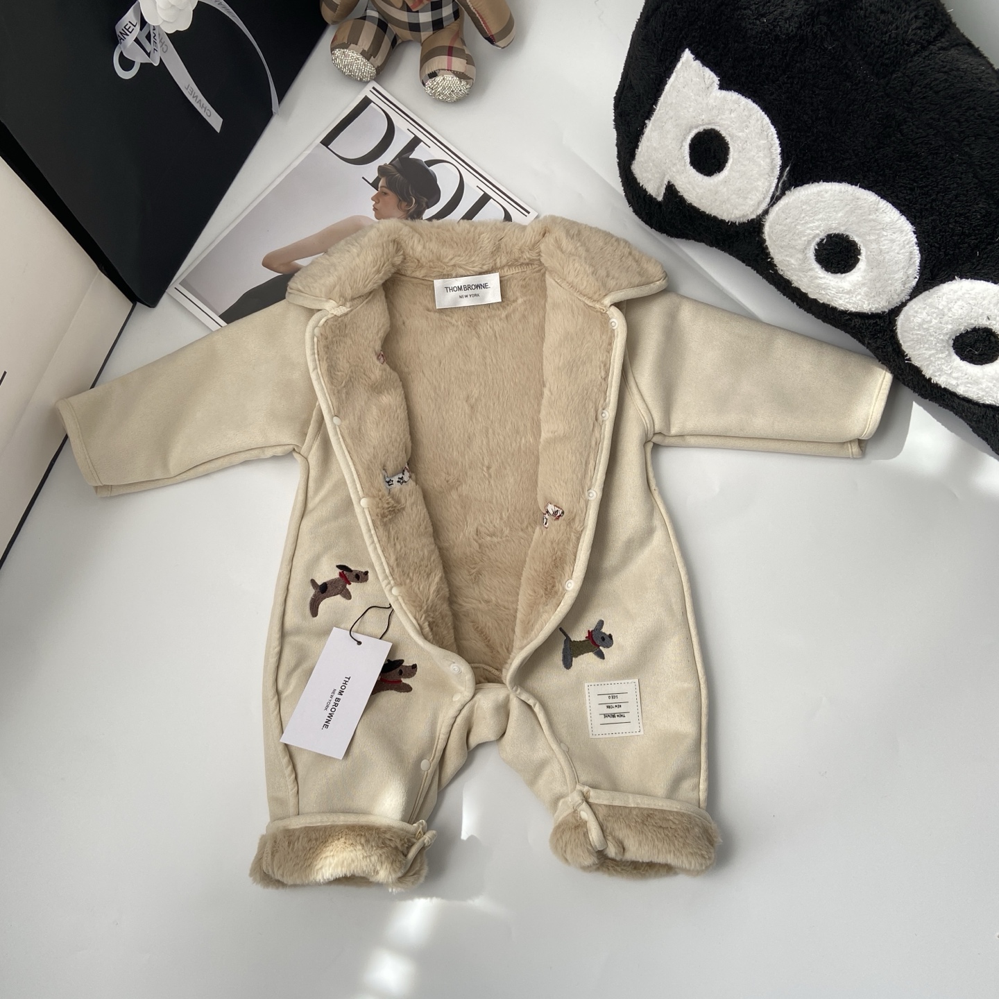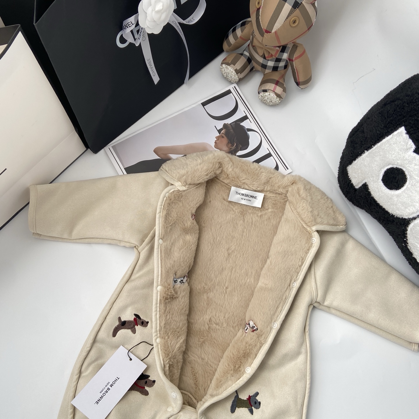 这款children's clothes是AAAAA 1:1 质量 (非常棒). 使用了和原版一模一样的材料. 商标部分也保持了和汤姆布朗/Thom Browne一样. 图片拍摄是实物children's clothes拍摄, 您所收到的实物保证和我们图片一模一样.