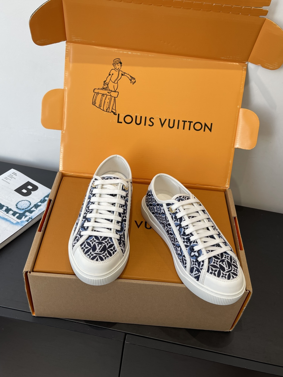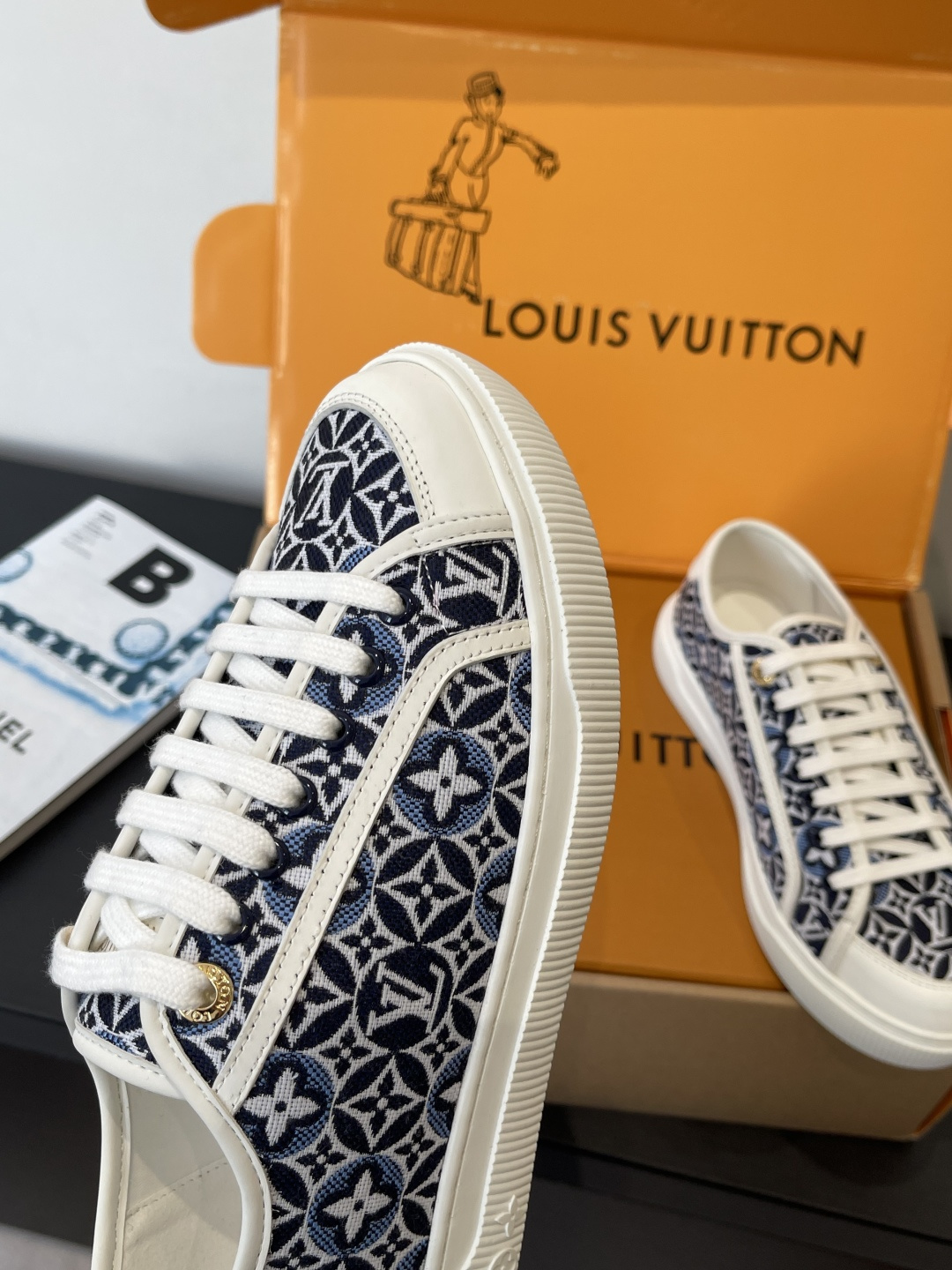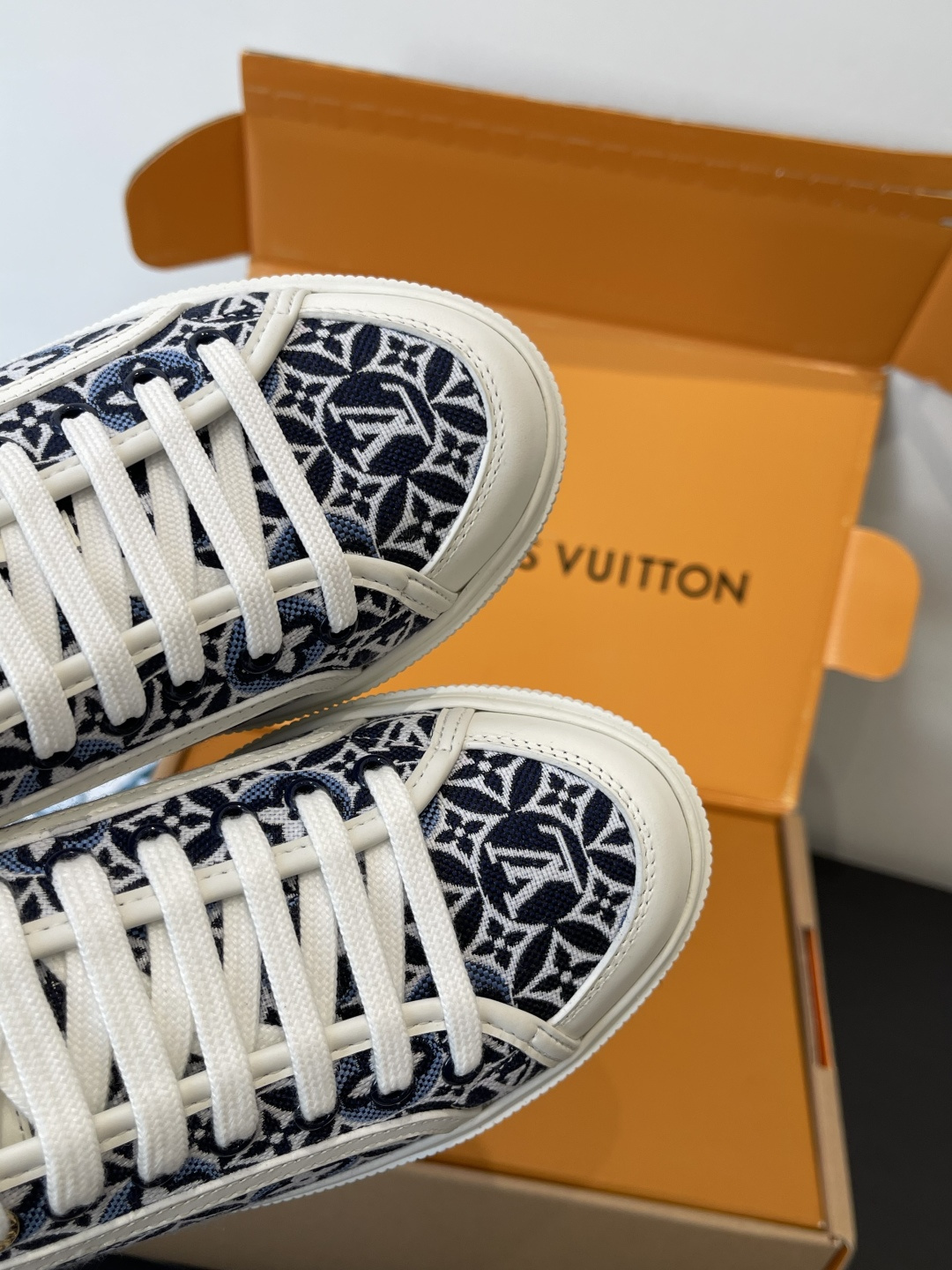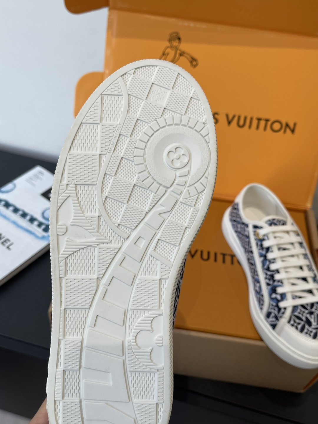 这款鞋子是AAAAA 1:1 质量 (非常棒). 使用了和原版一模一样的材料. 商标部分也保持了和路易威登/Louis Vuitton一样. 图片拍摄是实物鞋子拍摄, 您所收到的实物保证和我们图片一模一样.
