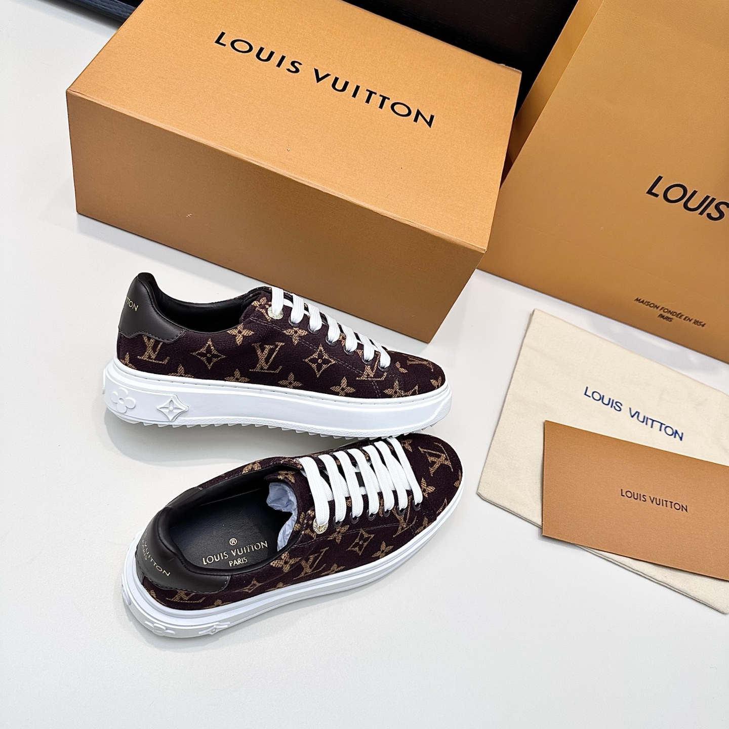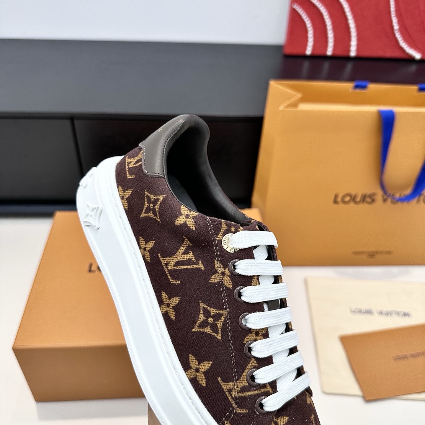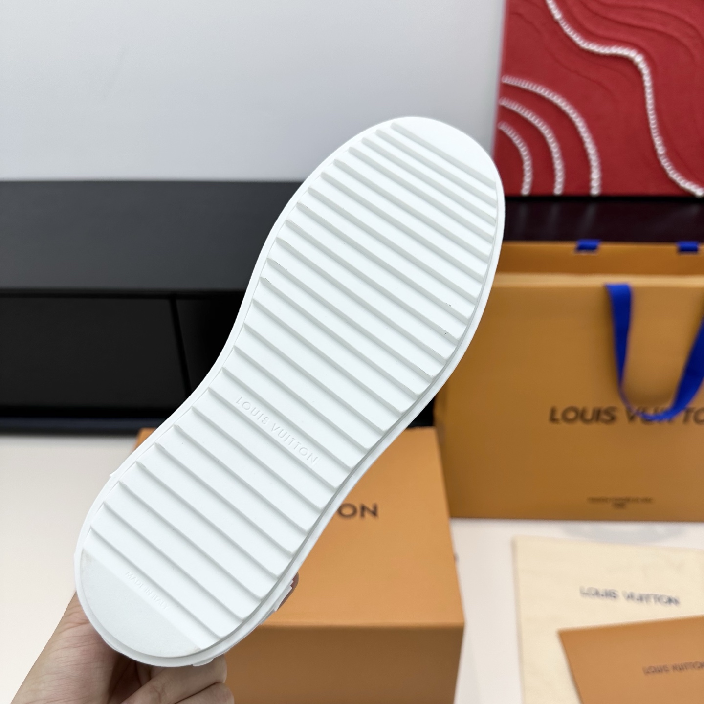 这款鞋子是AAAAA 1:1 质量 (非常棒). 使用了和原版一模一样的材料. 商标部分也保持了和路易威登/Louis Vuitton一样. 图片拍摄是实物鞋子拍摄, 您所收到的实物保证和我们图片一模一样.