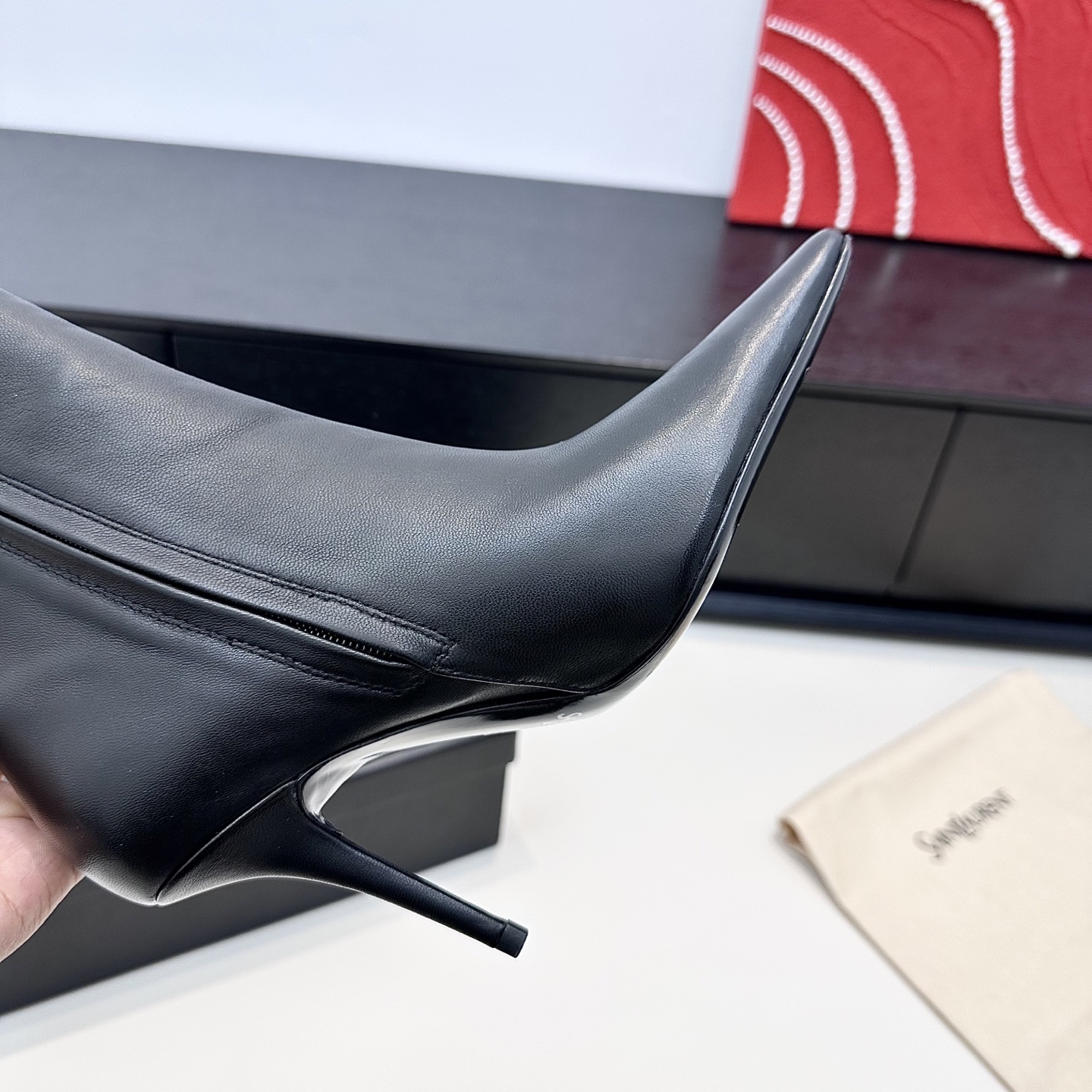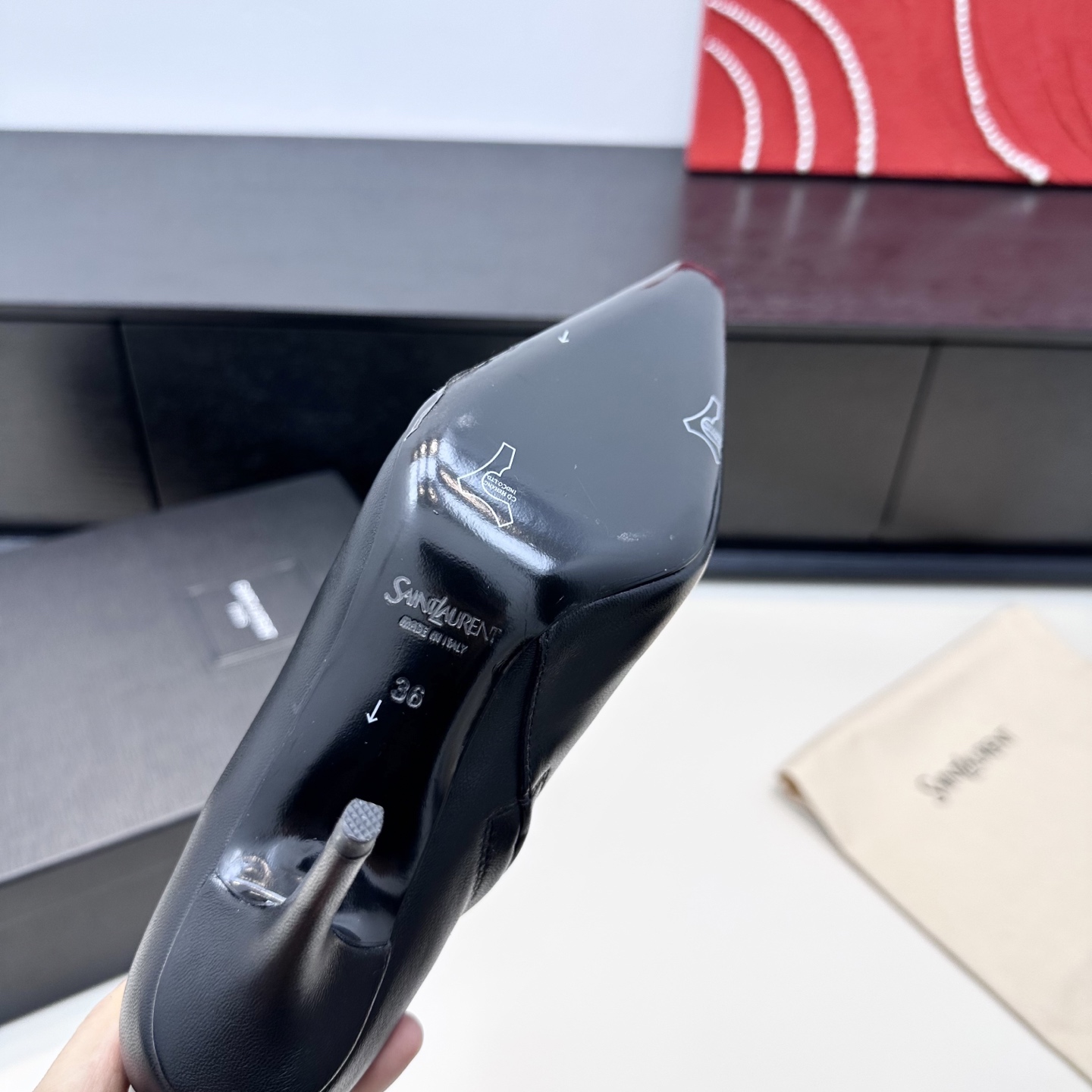 这款鞋子是AAAAA 1:1 质量 (非常棒). 使用了和原版一模一样的材料. 商标部分也保持了和圣罗兰/Saint Laurent一样. 图片拍摄是实物鞋子拍摄, 您所收到的实物保证和我们图片一模一样.