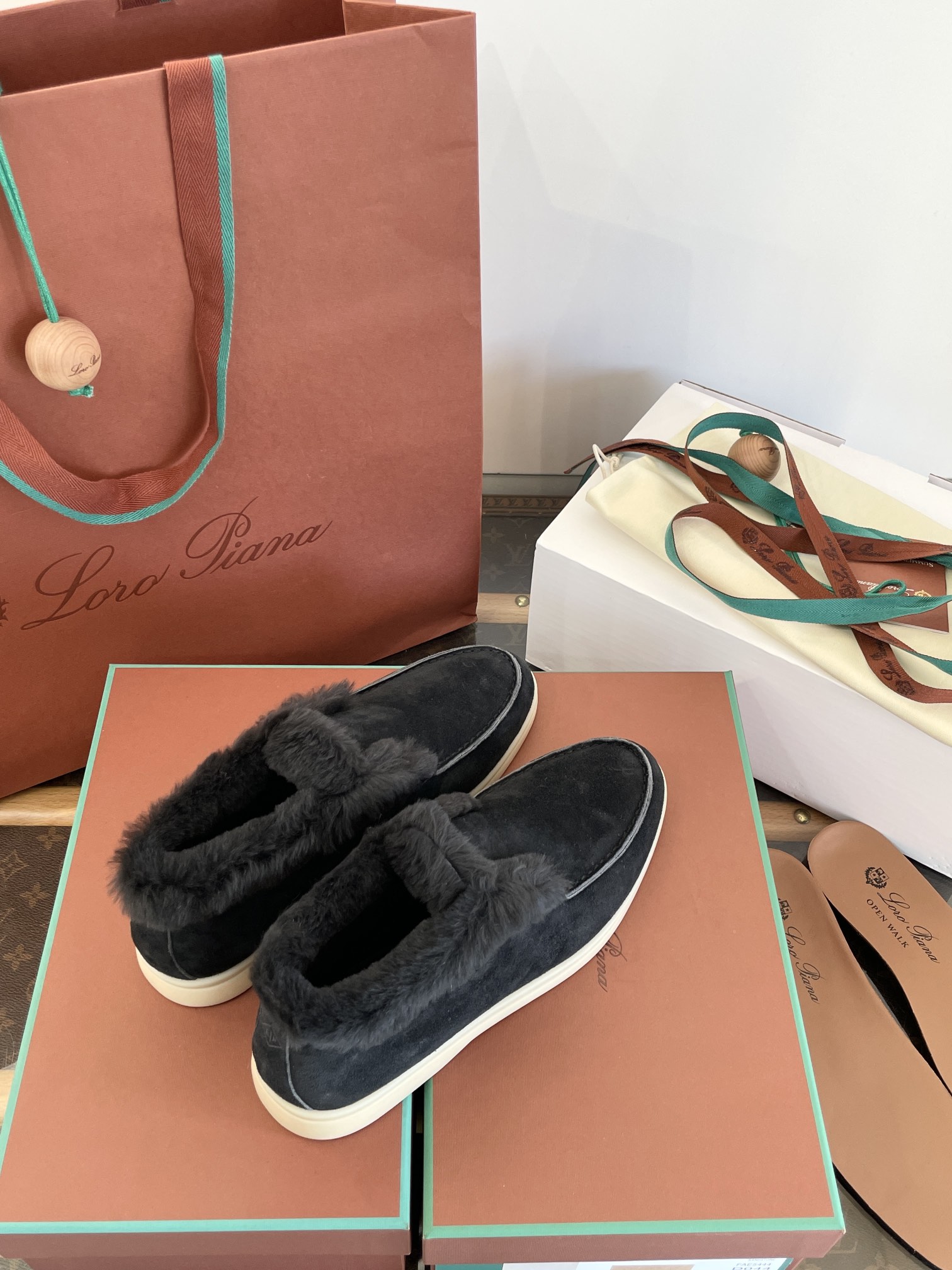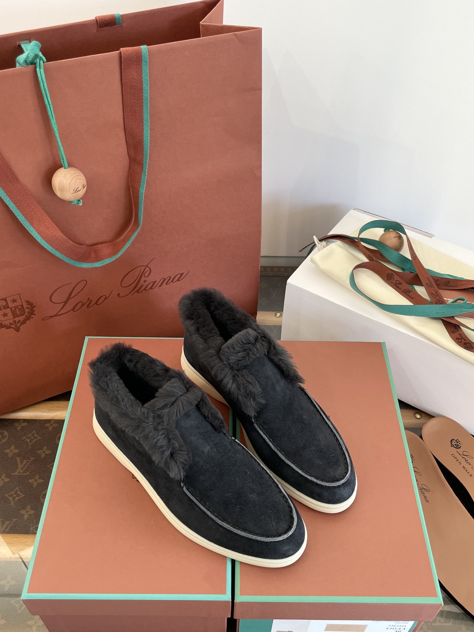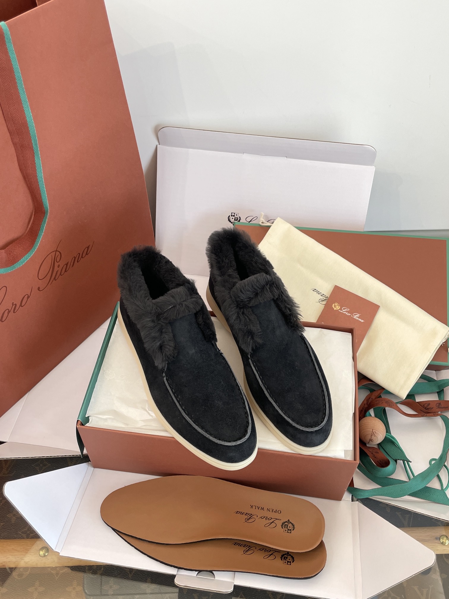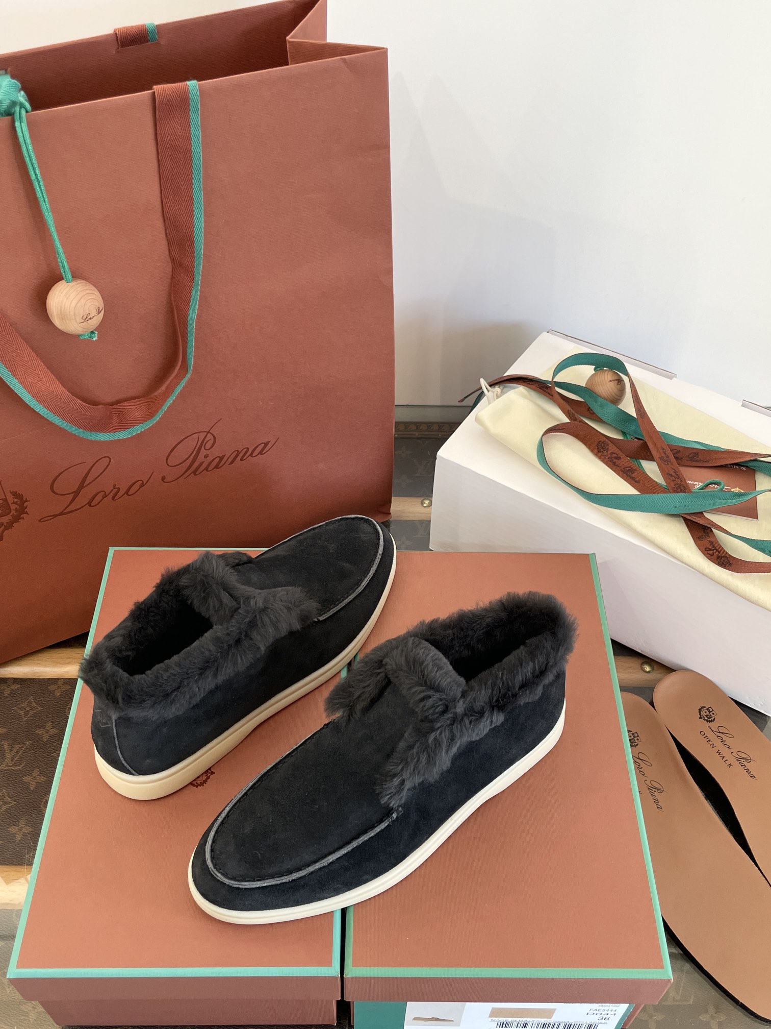 这款鞋子是AAAAA 1:1 质量 (非常棒). 使用了和原版一模一样的材料. 商标部分也保持了和洛罗皮亚纳/Loro Piana一样. 图片拍摄是实物鞋子拍摄, 您所收到的实物保证和我们图片一模一样.