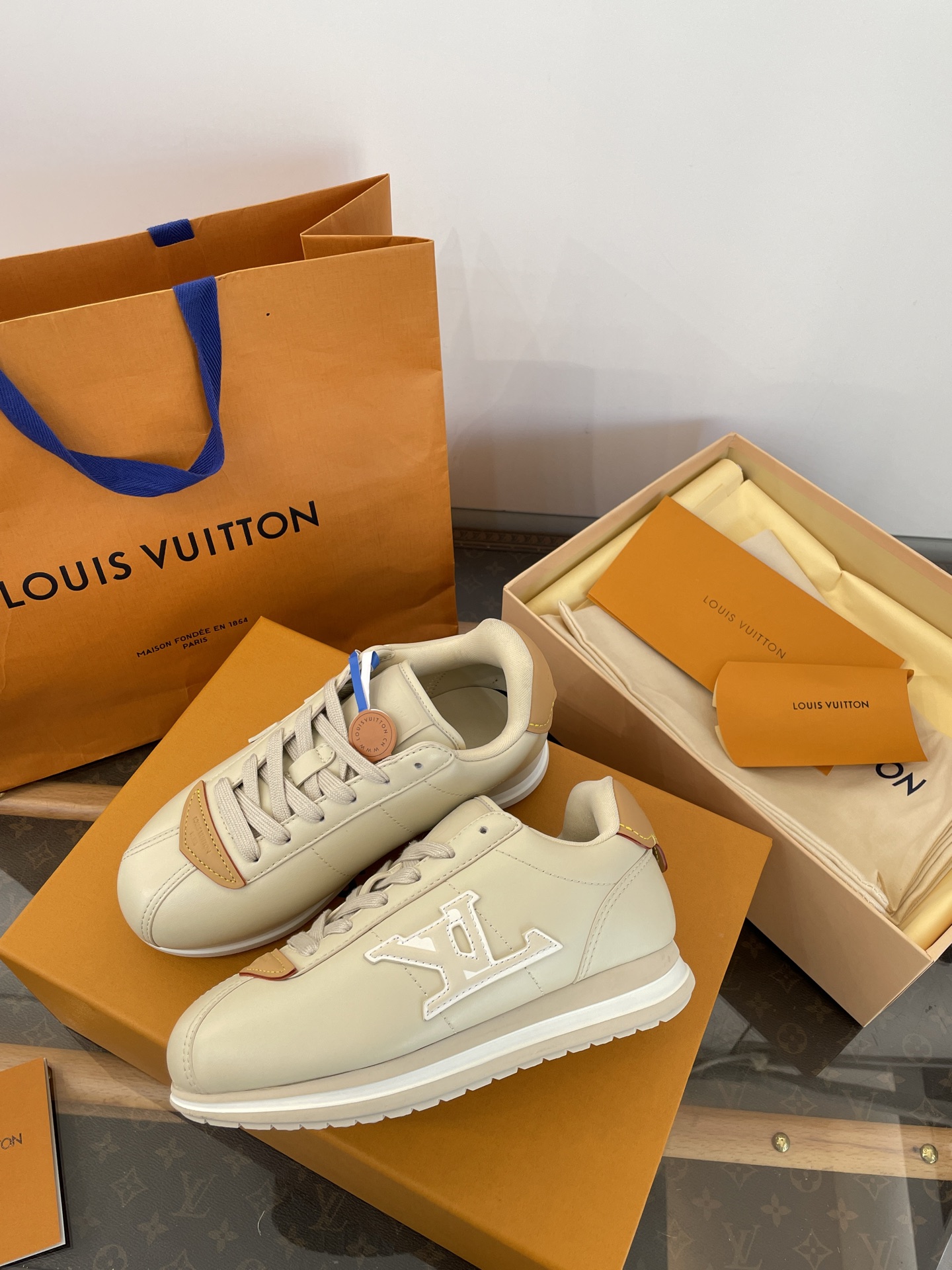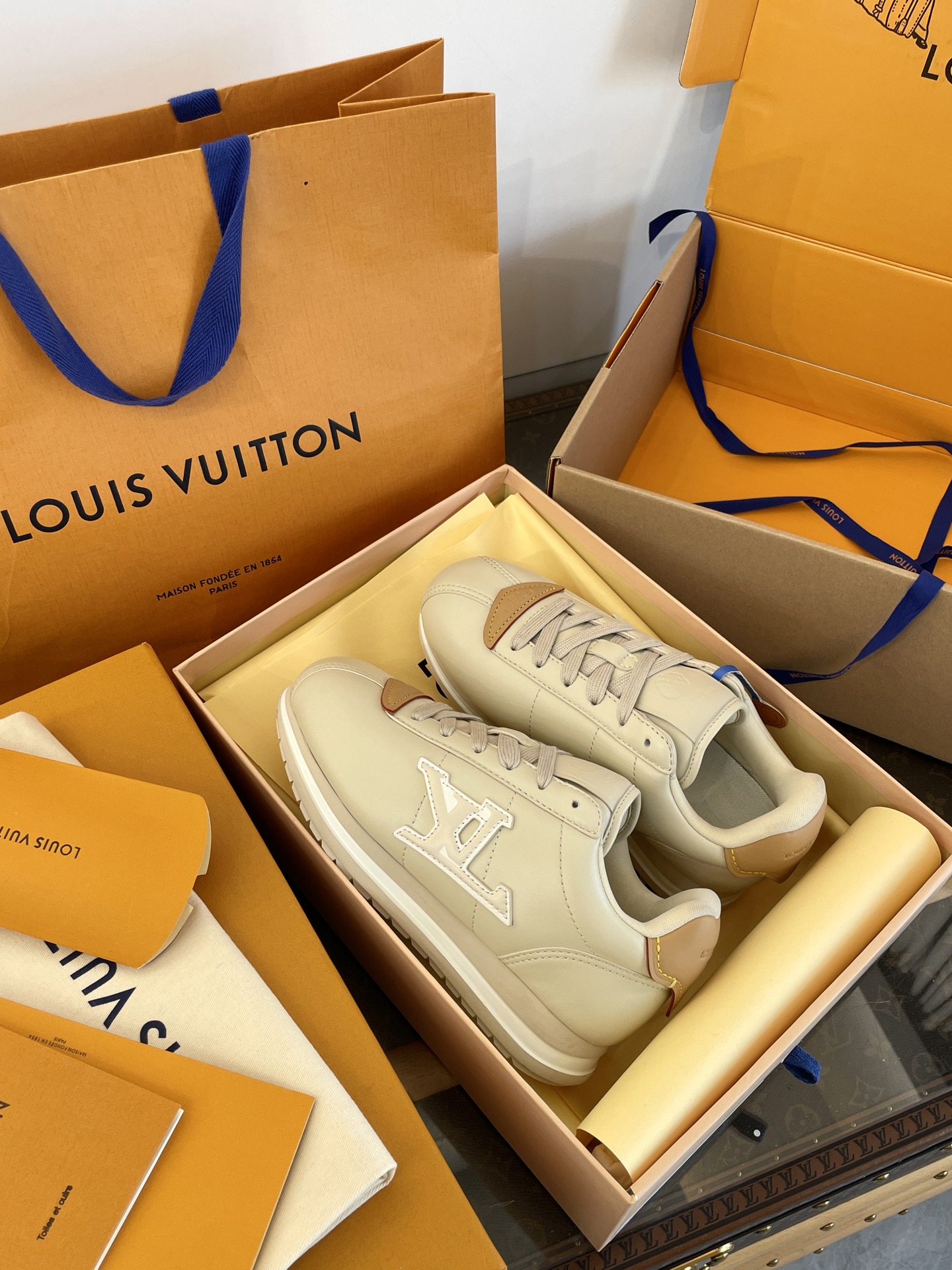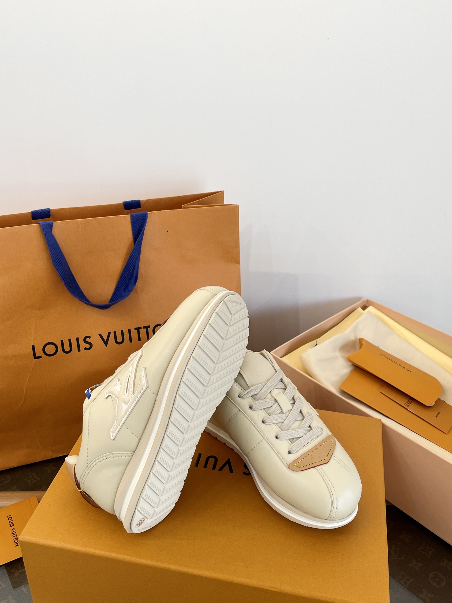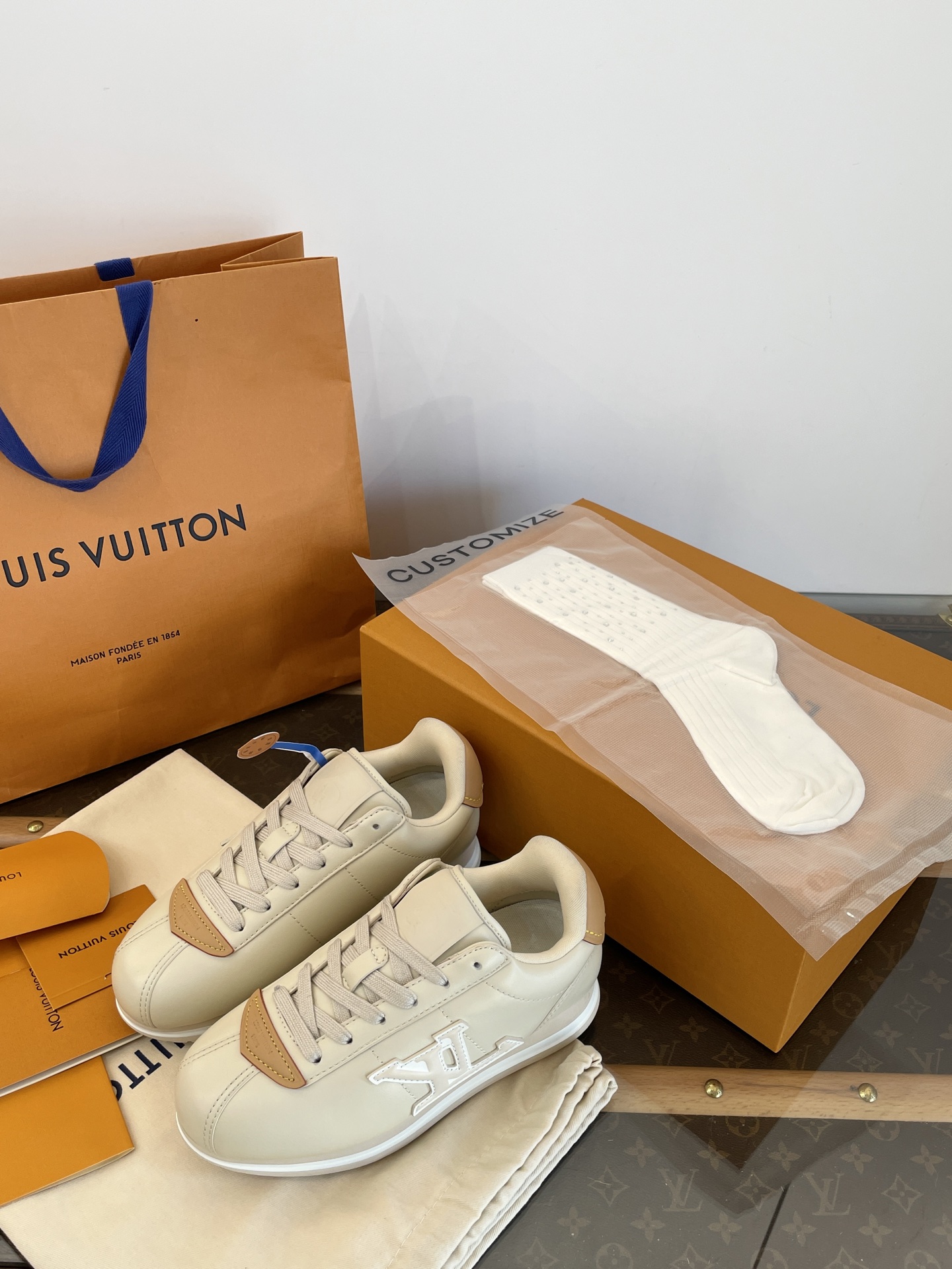 这款鞋子是AAAAA 1:1 质量 (非常棒). 使用了和原版一模一样的材料. 商标部分也保持了和路易威登/Louis Vuitton一样. 图片拍摄是实物鞋子拍摄, 您所收到的实物保证和我们图片一模一样.