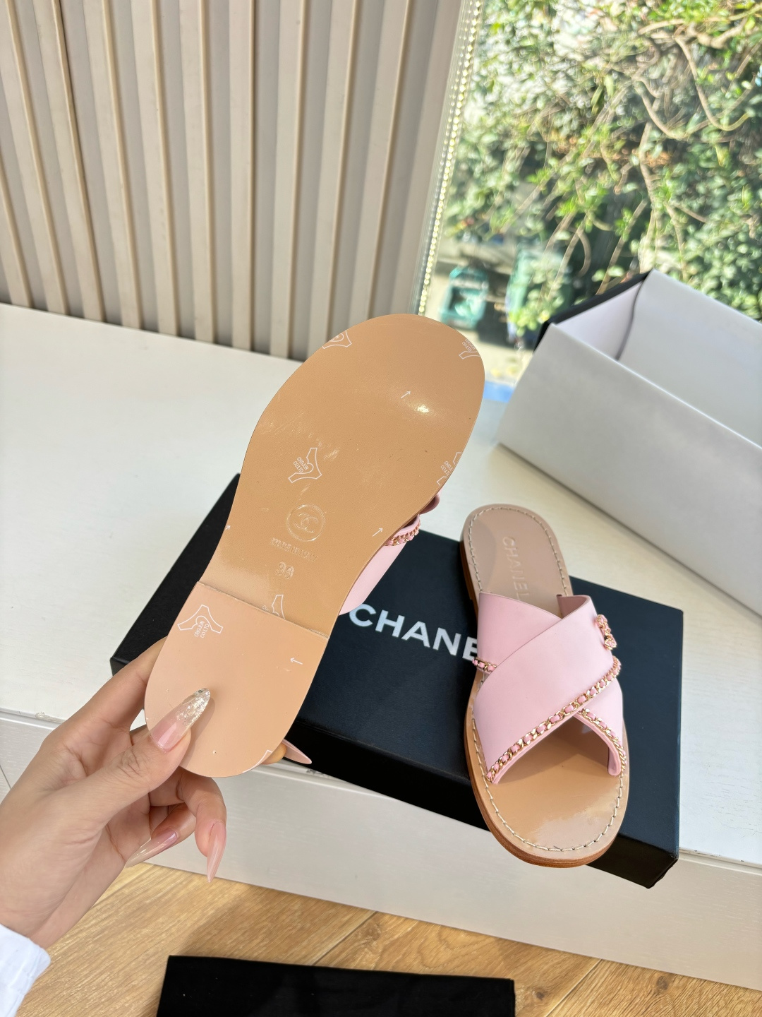 这款鞋子是AAAAA 1:1 质量 (非常棒). 使用了和原版一模一样的材料. 商标部分也保持了和香奈儿/Chanel一样. 图片拍摄是实物鞋子拍摄, 您所收到的实物保证和我们图片一模一样.