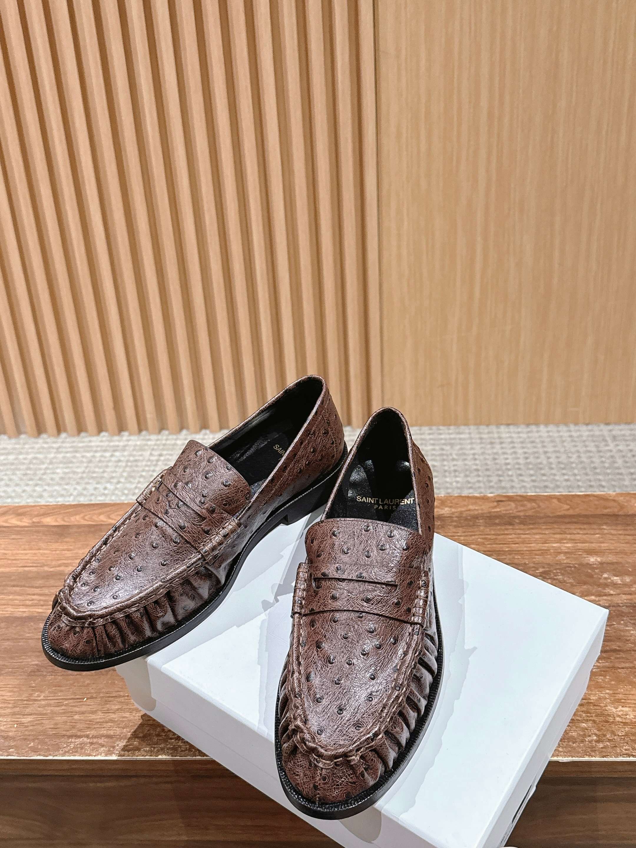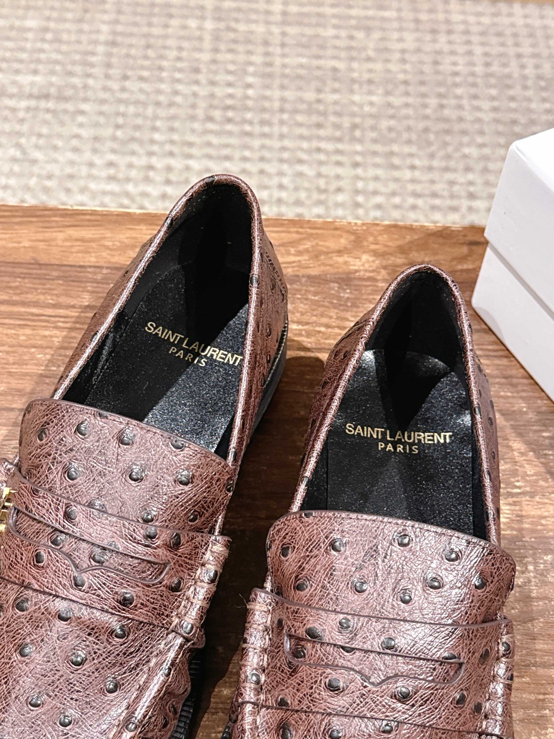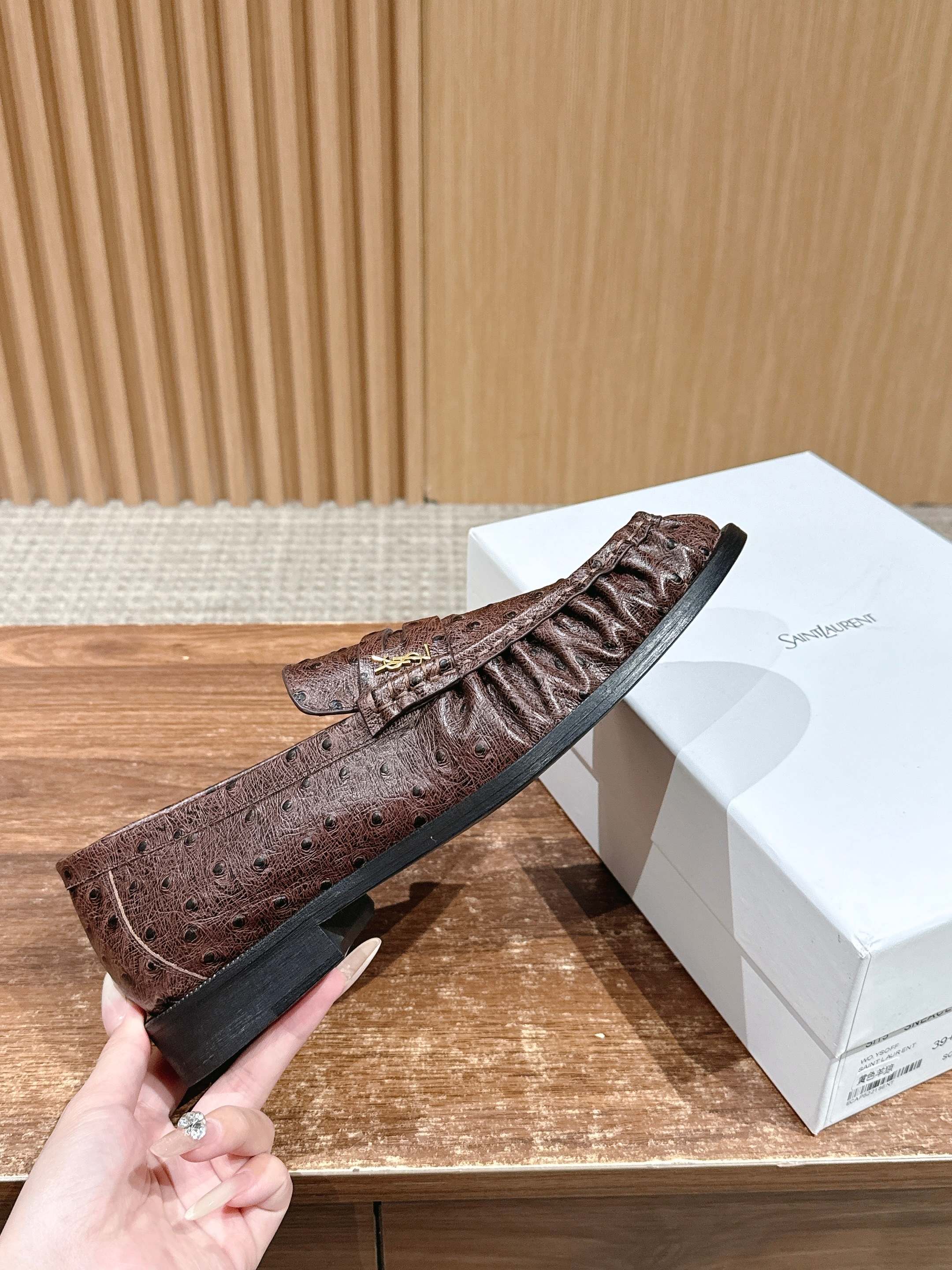 这款鞋子是AAAAA 1:1 质量 (非常棒). 使用了和原版一模一样的材料. 商标部分也保持了和圣罗兰/Saint Laurent一样. 图片拍摄是实物鞋子拍摄, 您所收到的实物保证和我们图片一模一样.