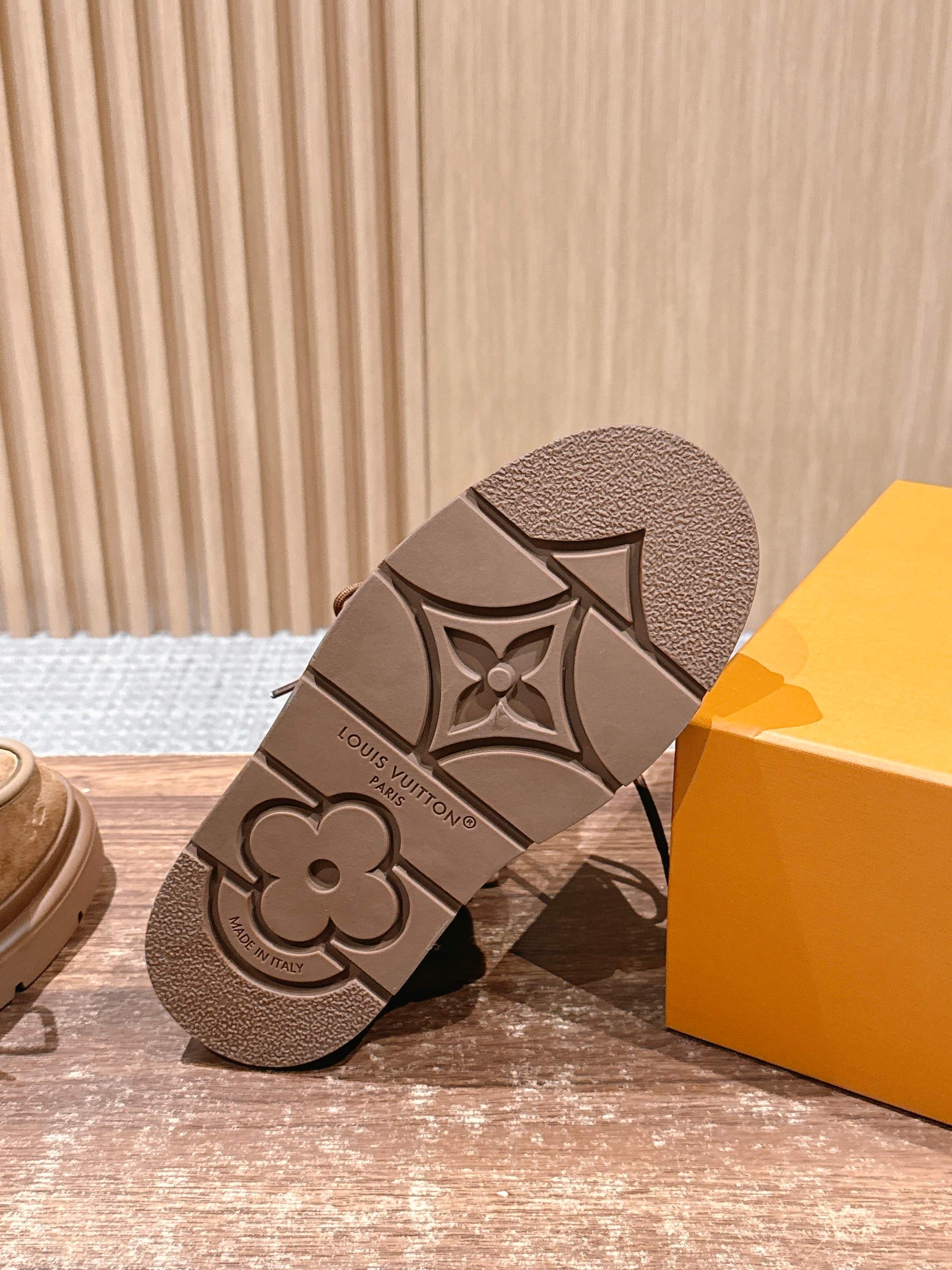 这款鞋子是AAAAA 1:1 质量 (非常棒). 使用了和原版一模一样的材料. 商标部分也保持了和路易威登/Louis Vuitton一样. 图片拍摄是实物鞋子拍摄, 您所收到的实物保证和我们图片一模一样.