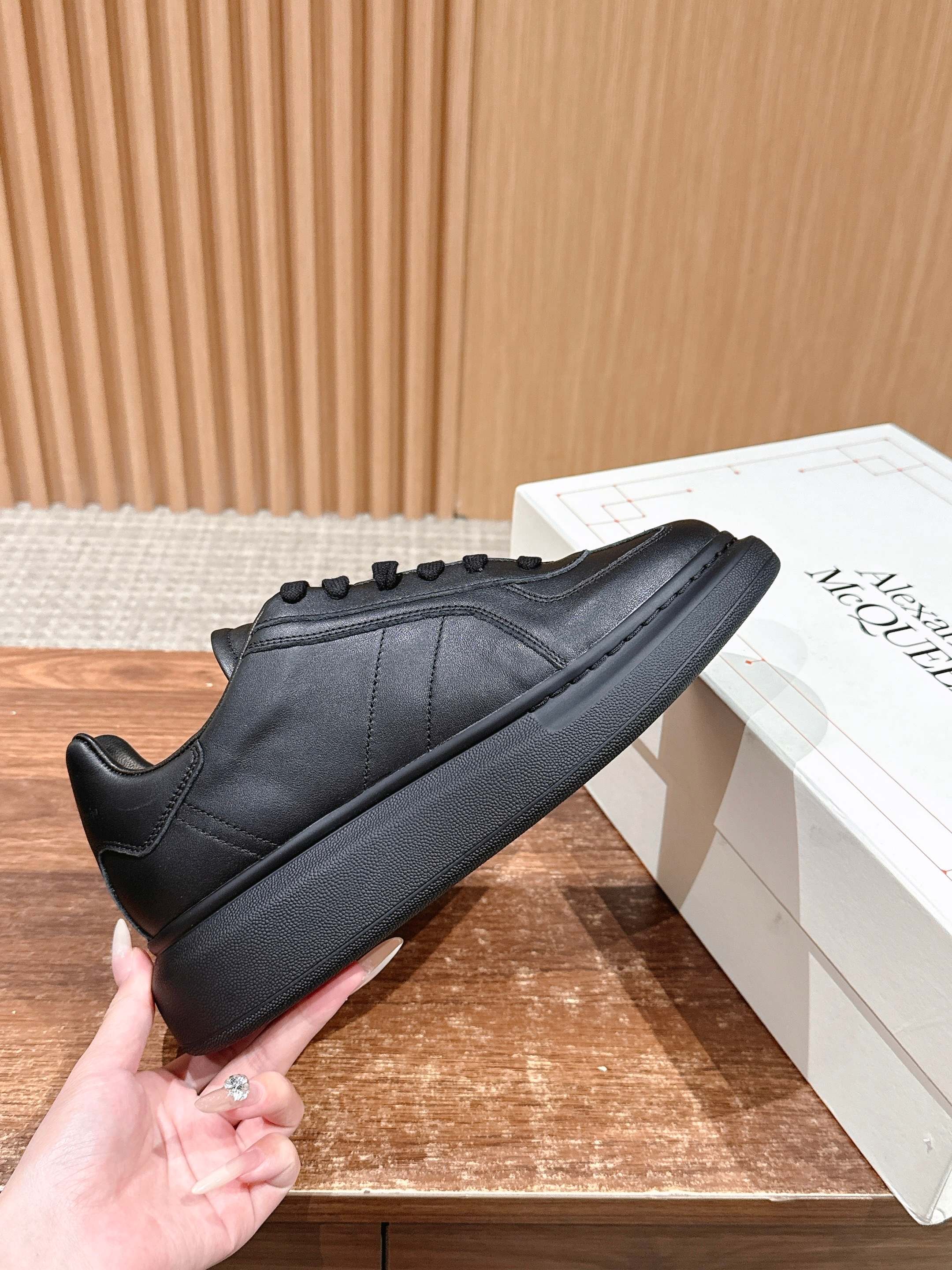这款鞋子是AAAAA 1:1 质量 (非常棒). 使用了和原版一模一样的材料. 商标部分也保持了和亚历山大·麦昆/McQueen一样. 图片拍摄是实物鞋子拍摄, 您所收到的实物保证和我们图片一模一样.