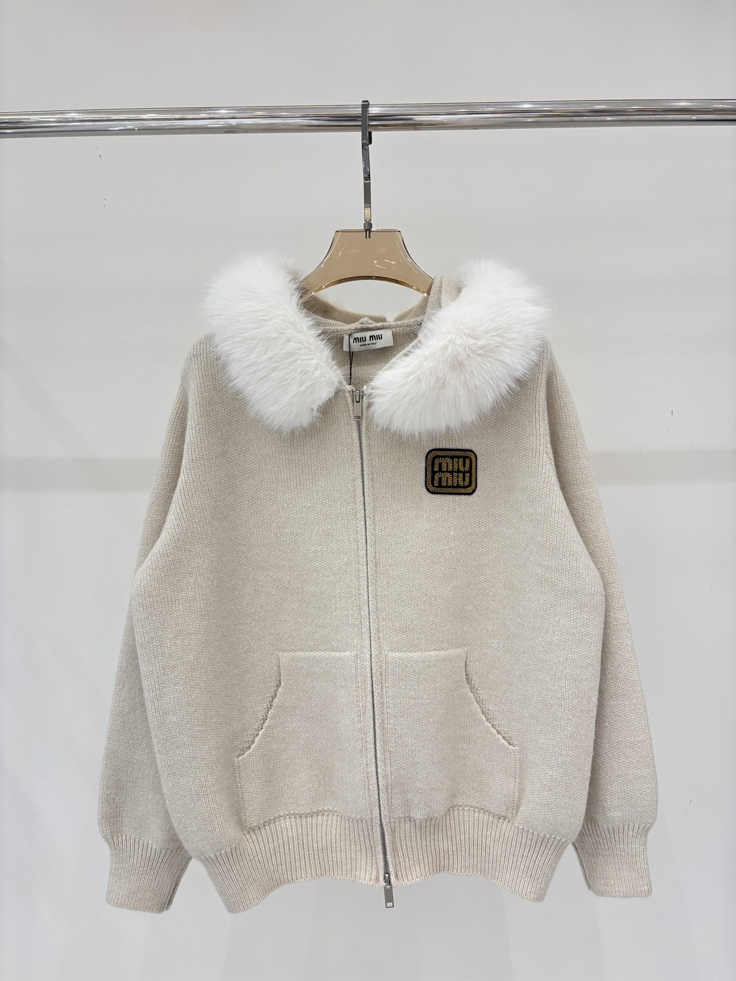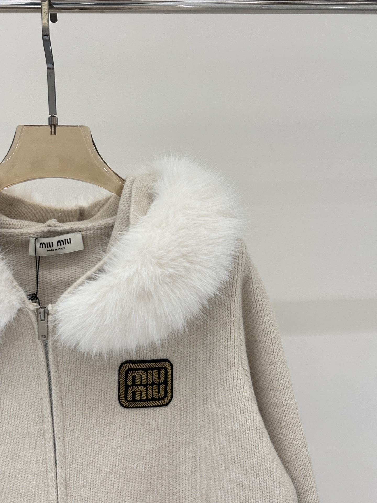 这款衣服是AAAAA 1:1 质量 (非常棒). 使用了和原版一模一样的材料. 商标部分也保持了和缪缪/Miu Miu一样. 图片拍摄是实物衣服拍摄, 您所收到的实物保证和我们图片一模一样.