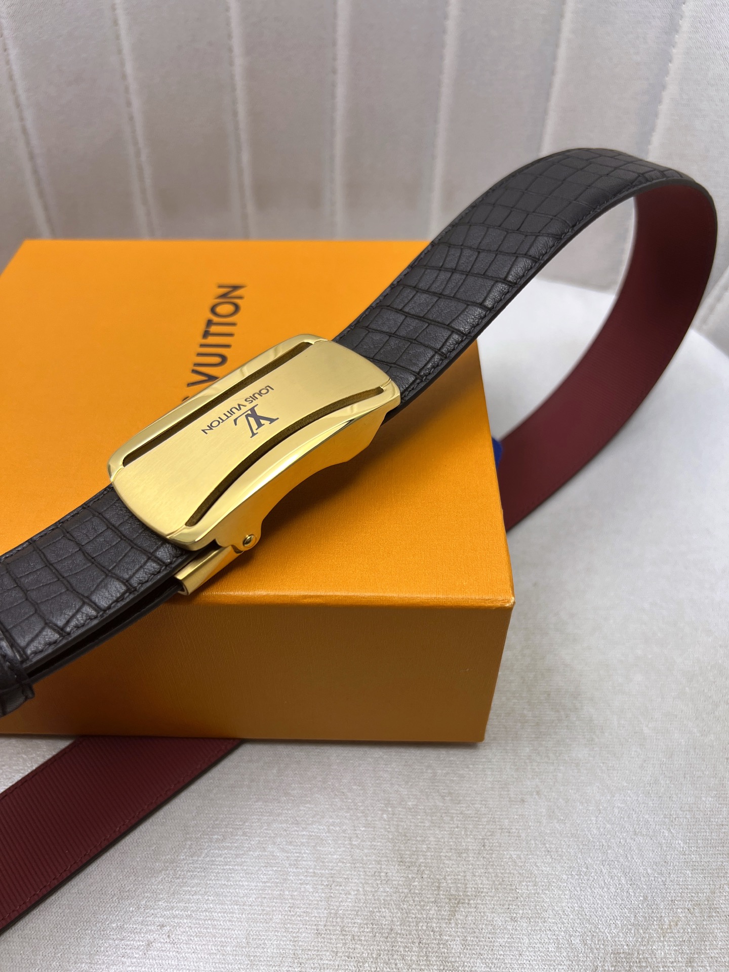 这款皮带是AAAAA 1:1 质量 (非常棒). 使用了和原版一模一样的材料. 商标部分也保持了和路易威登/Louis Vuitton一样. 图片拍摄是实物皮带拍摄, 您所收到的实物保证和我们图片一模一样.