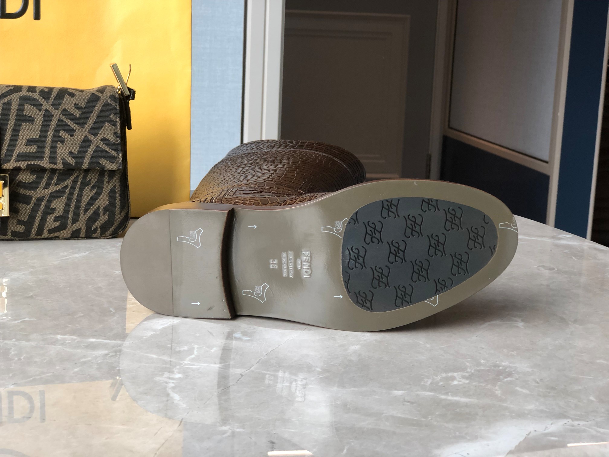 这款鞋子是AAAAA 1:1 质量 (非常棒). 使用了和原版一模一样的材料. 商标部分也保持了和芬迪/Fendi一样. 图片拍摄是实物鞋子拍摄, 您所收到的实物保证和我们图片一模一样.