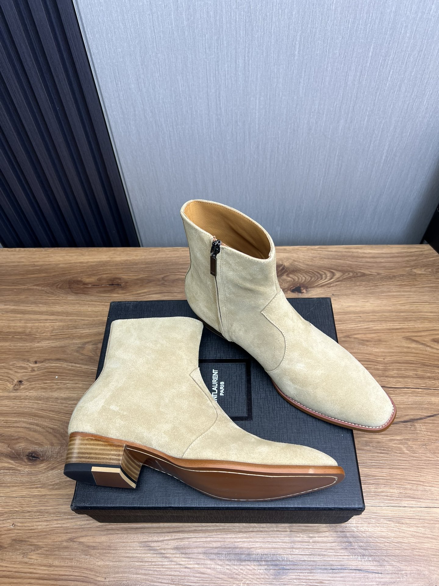 这款鞋子是AAAAA 1:1 质量 (非常棒). 使用了和原版一模一样的材料. 商标部分也保持了和圣罗兰/Saint Laurent一样. 图片拍摄是实物鞋子拍摄, 您所收到的实物保证和我们图片一模一样.