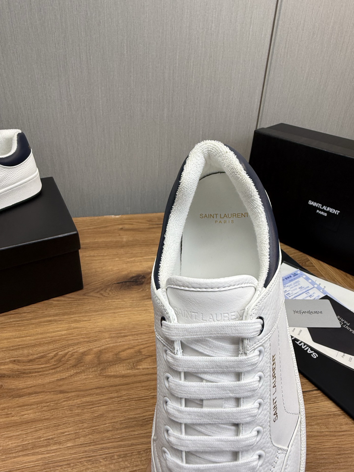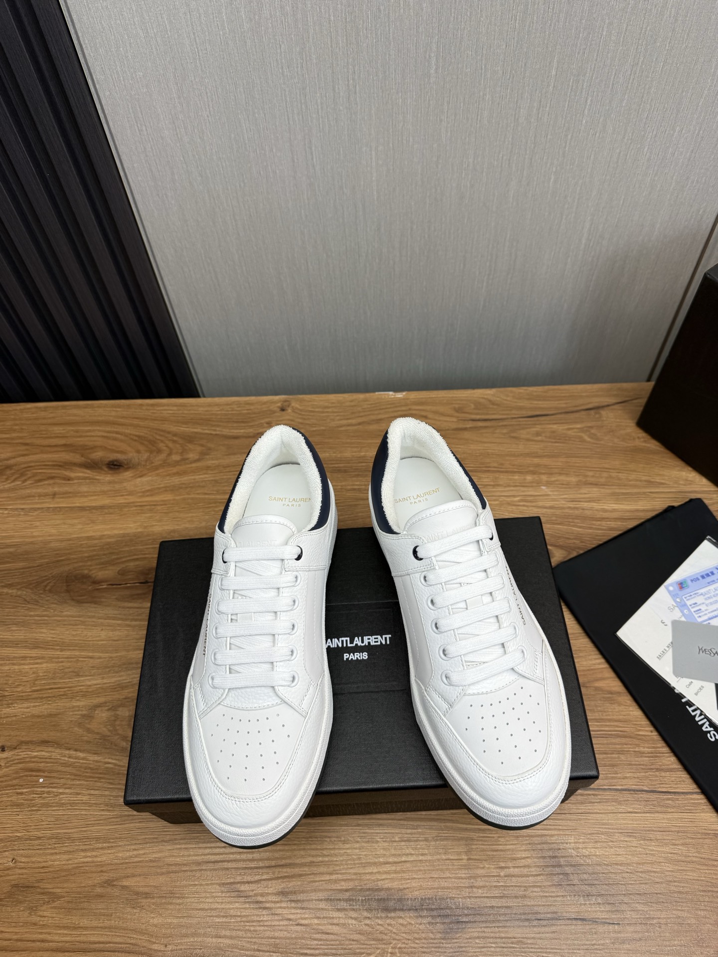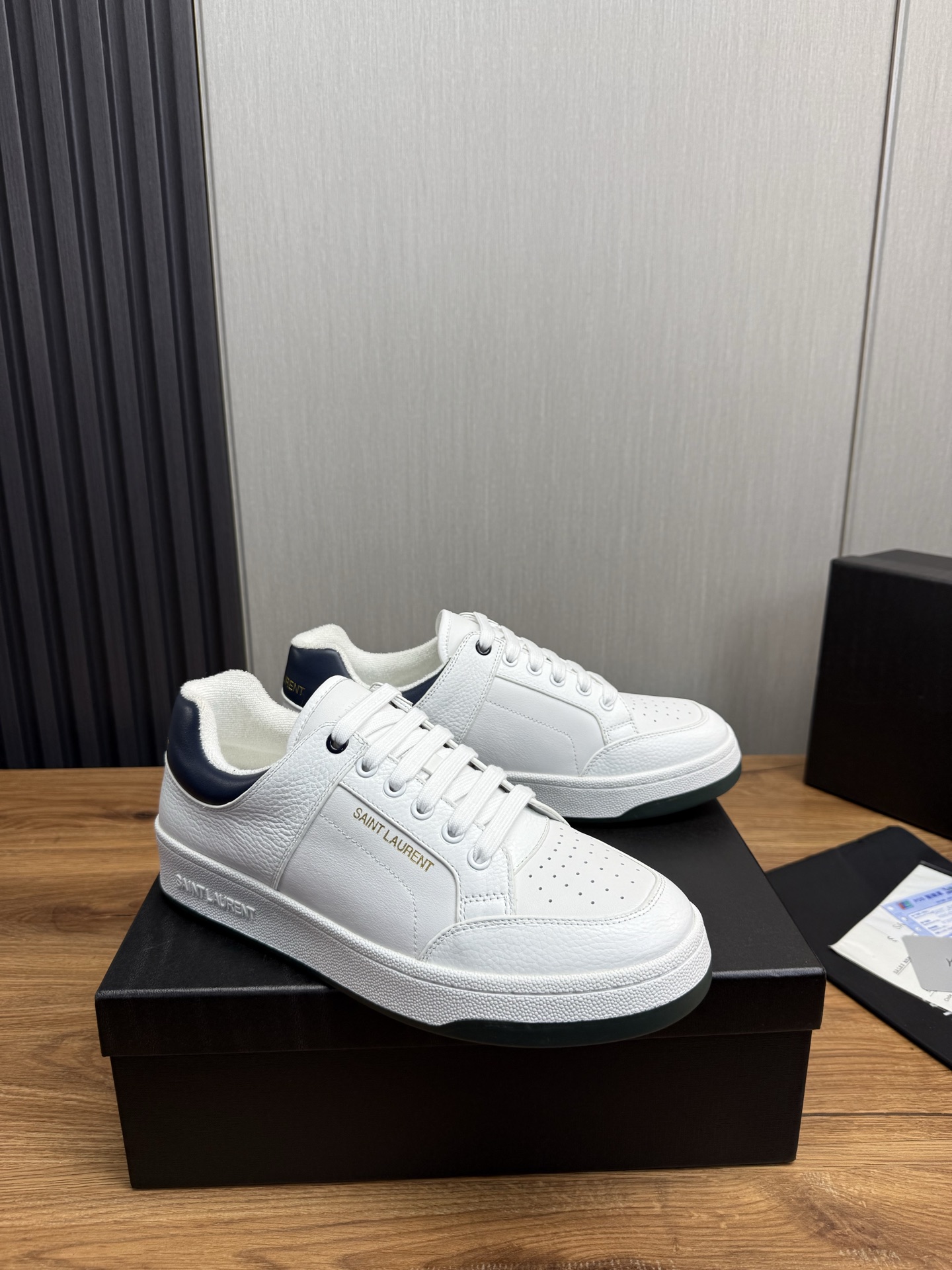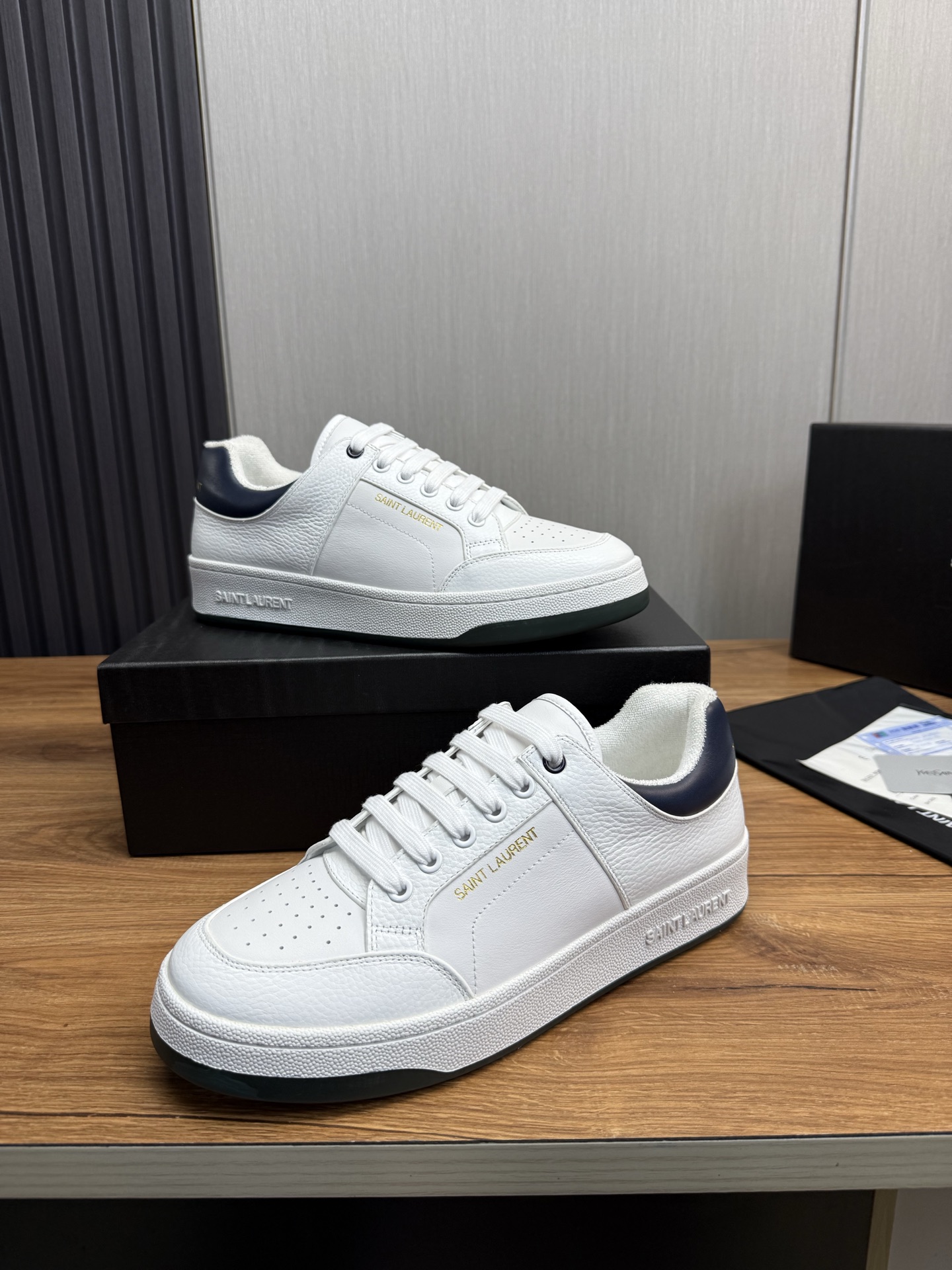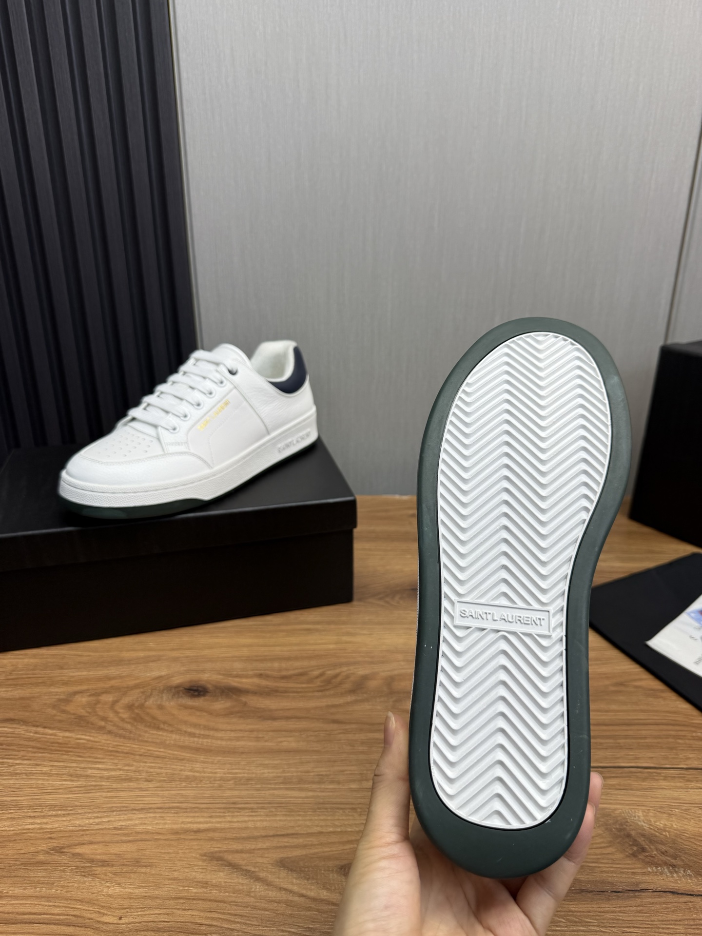 这款鞋子是AAAAA 1:1 质量 (非常棒). 使用了和原版一模一样的材料. 商标部分也保持了和圣罗兰/Saint Laurent一样. 图片拍摄是实物鞋子拍摄, 您所收到的实物保证和我们图片一模一样.